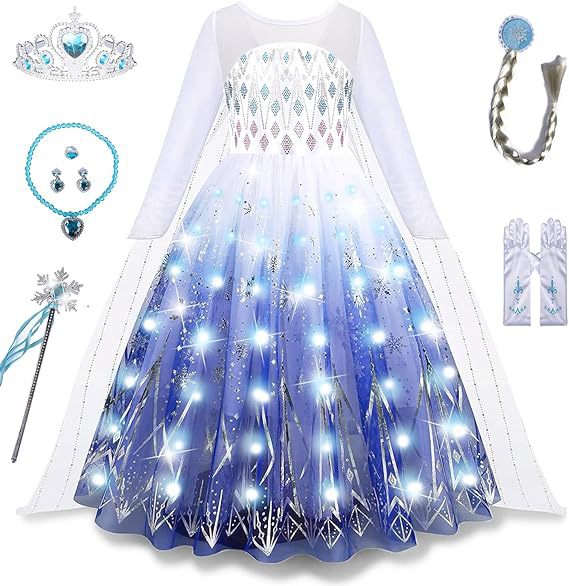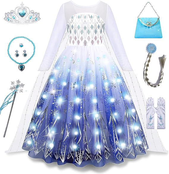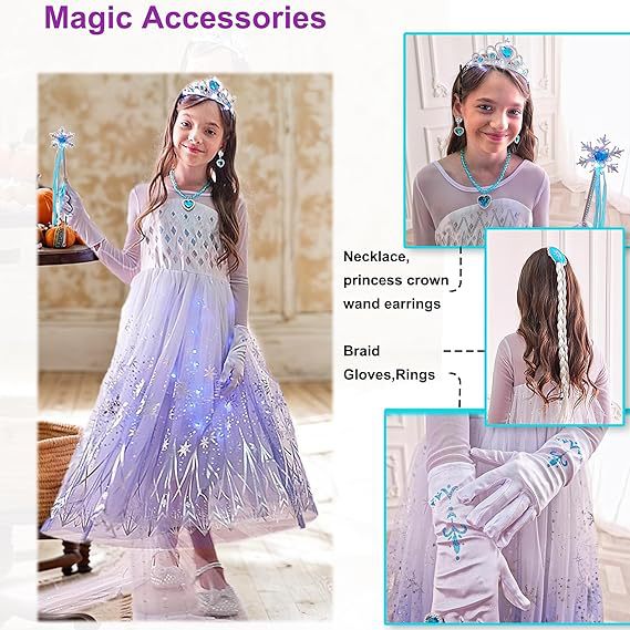 아이샤 공주 원피스 파티 소녀 원피스 어린이 냉동 2 화이트 아이샤 원피스 글로우 원피스 크라운