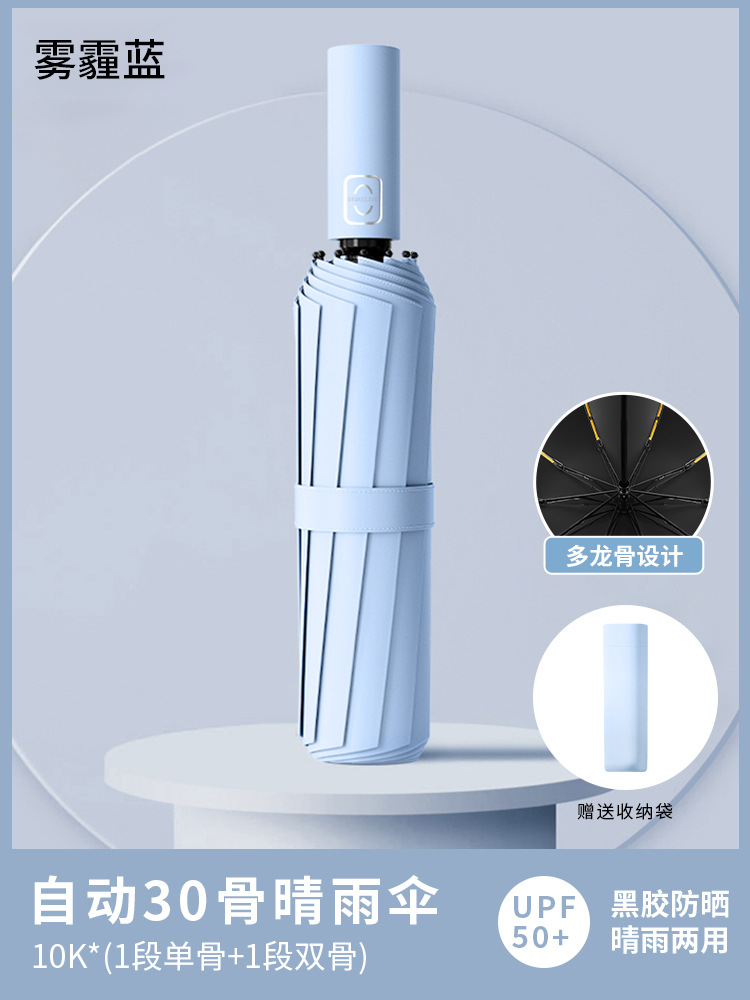 • 전자동 [24개의 유리섬유 방풍 우산 갈비뼈⭐비가 오나 눈이 오나 사용 가능】헤이즈 블루