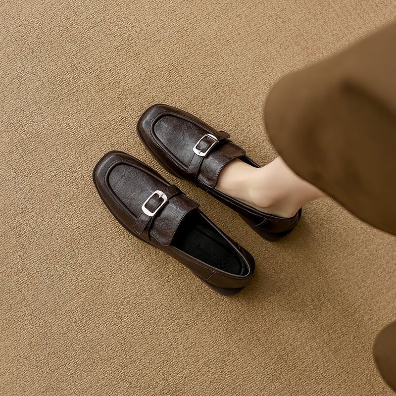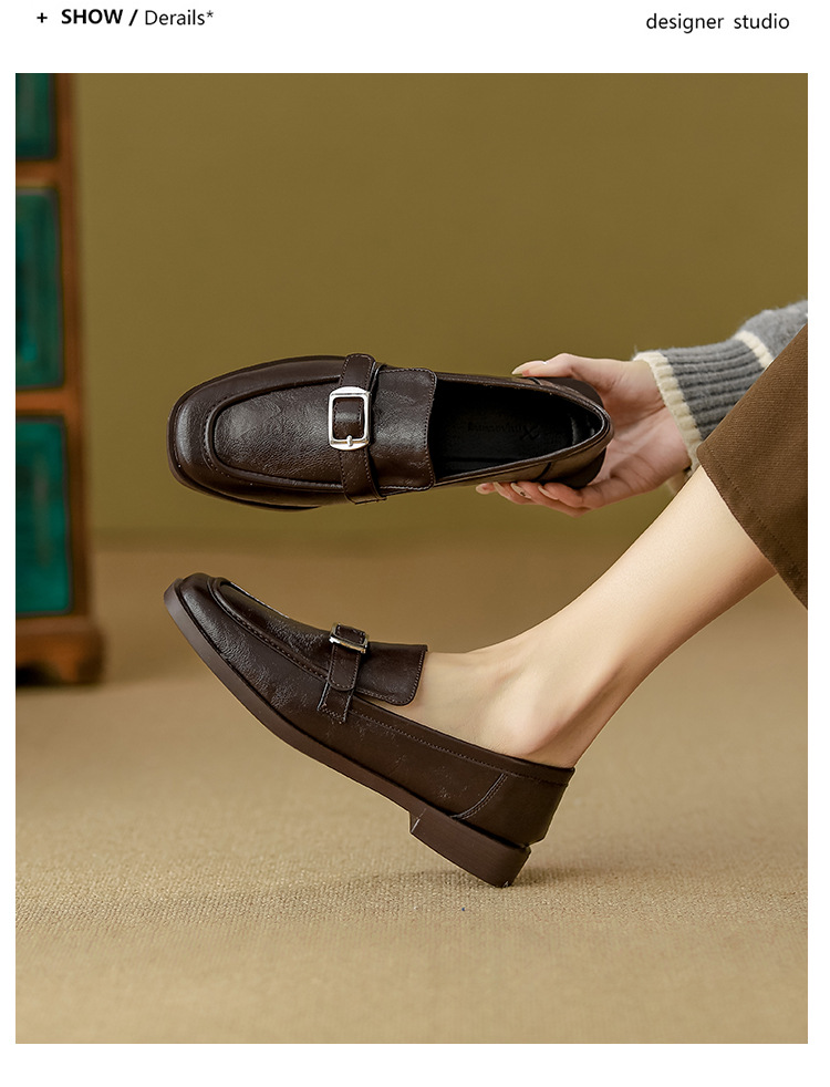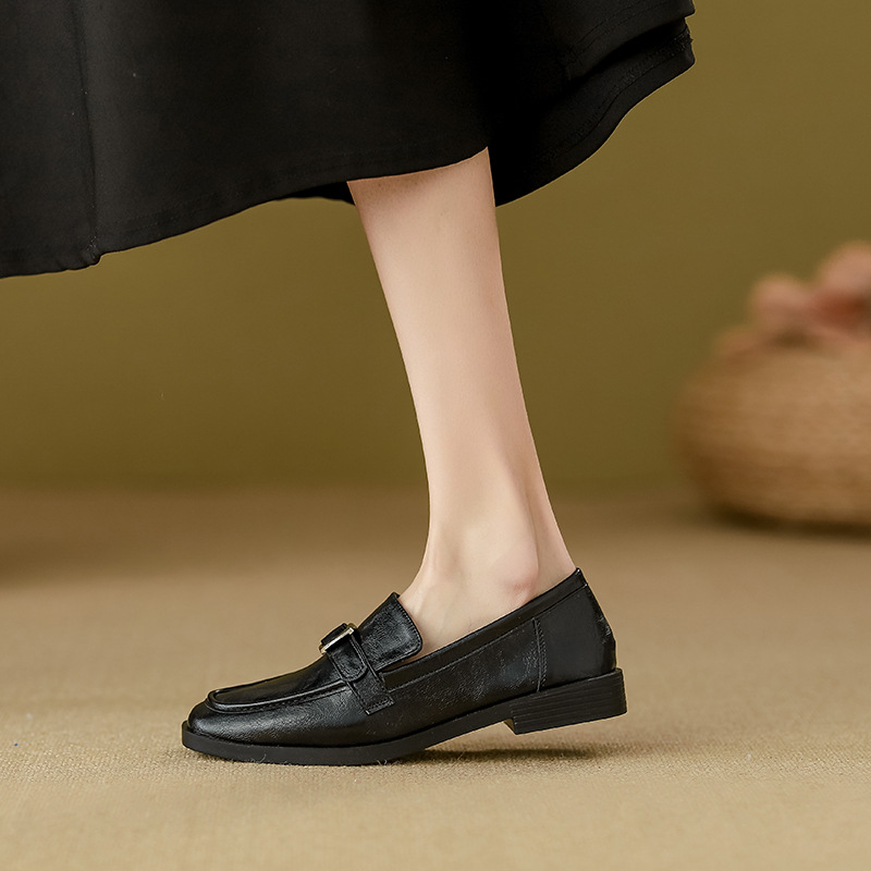 여성을위한 새로운 스타일 할머니 신발 영국 스타일 복고풍 로퍼 작은 가죽 신발 슬립 온 플랫 대형 여성 신발 40-42스토어 가기