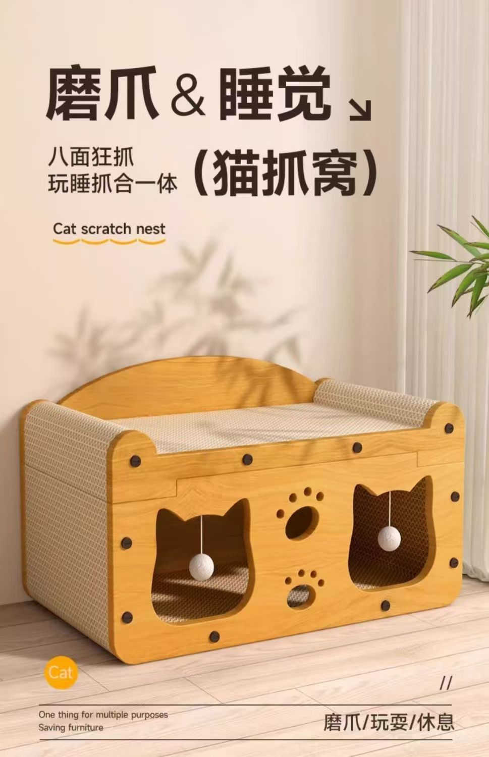 고양이 스크래치 보드 고양이 둥지 통합 내마모성 벙어리 고양이 발톱 보드 사계절 유니버설 더블 레이어 고양이 집 고양이 장난감 애완 동물 용품