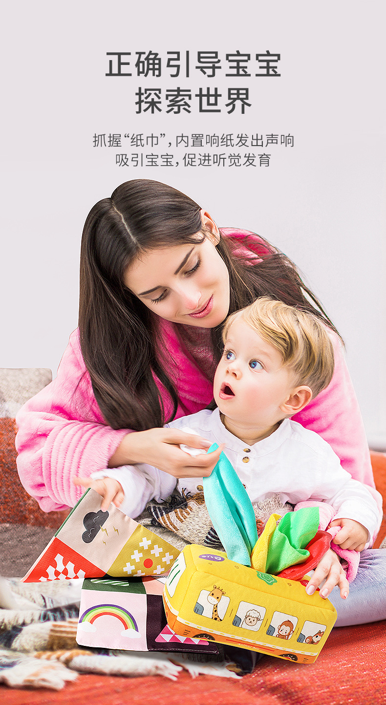 국경 간 아기 눈물 티슈 박스 아기 종이 장난감 어린이 퍼즐 6-12 개월스토어 가기