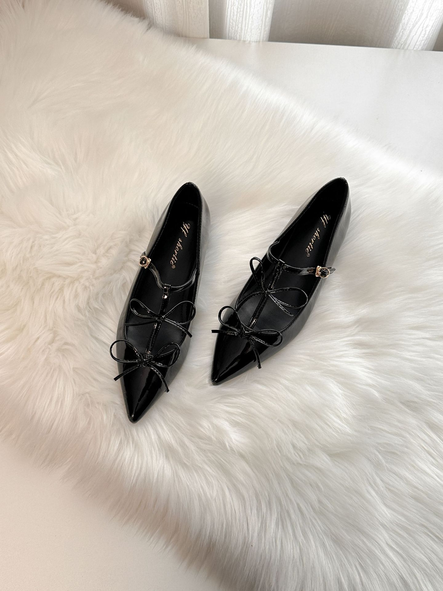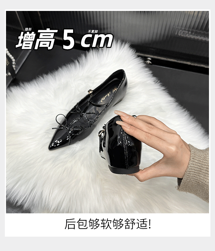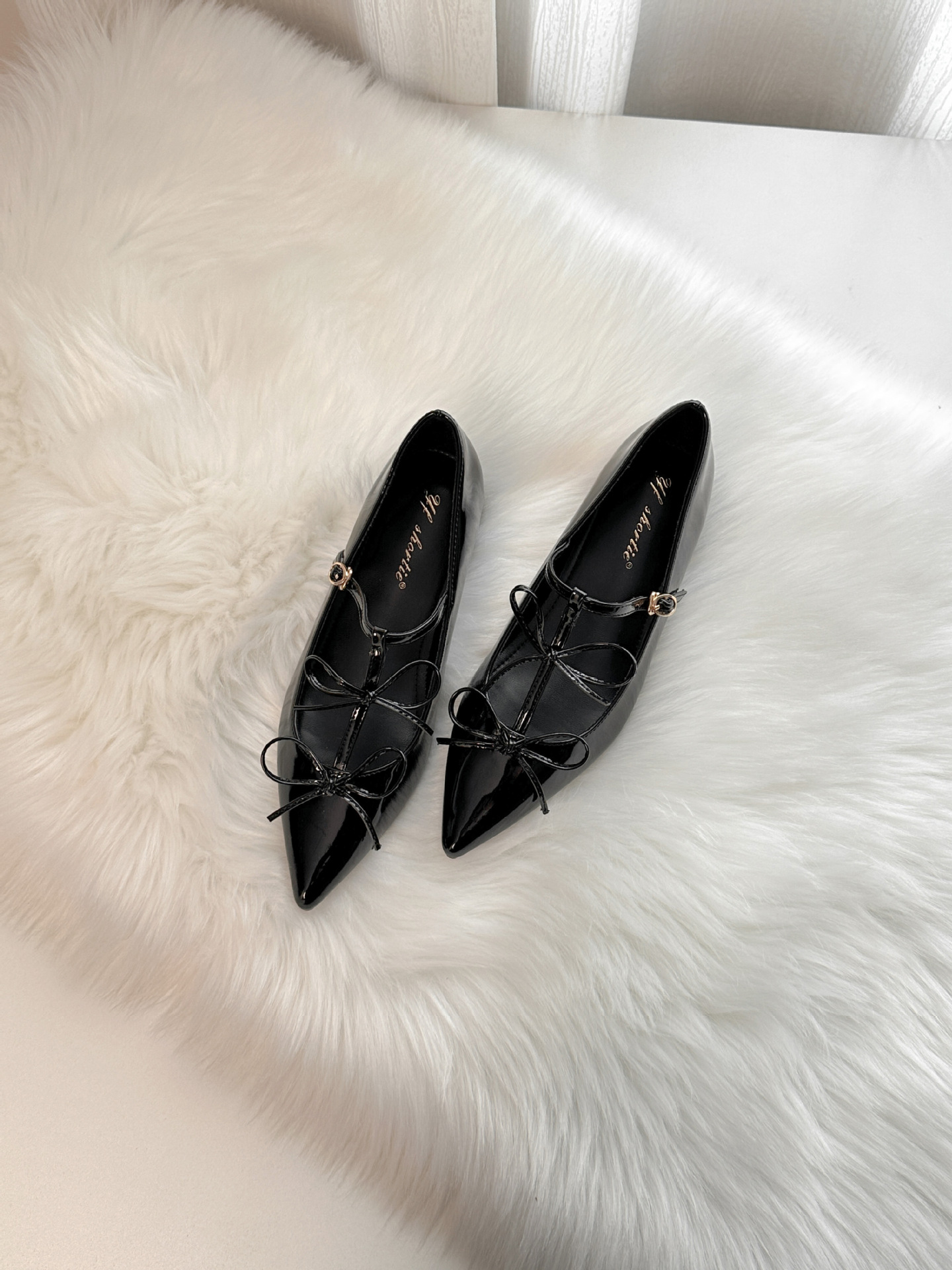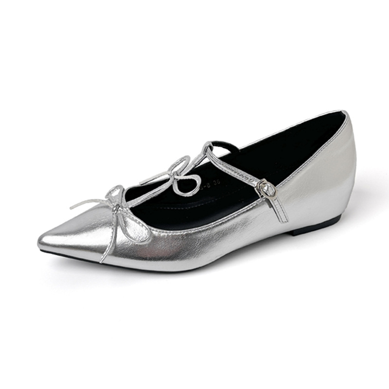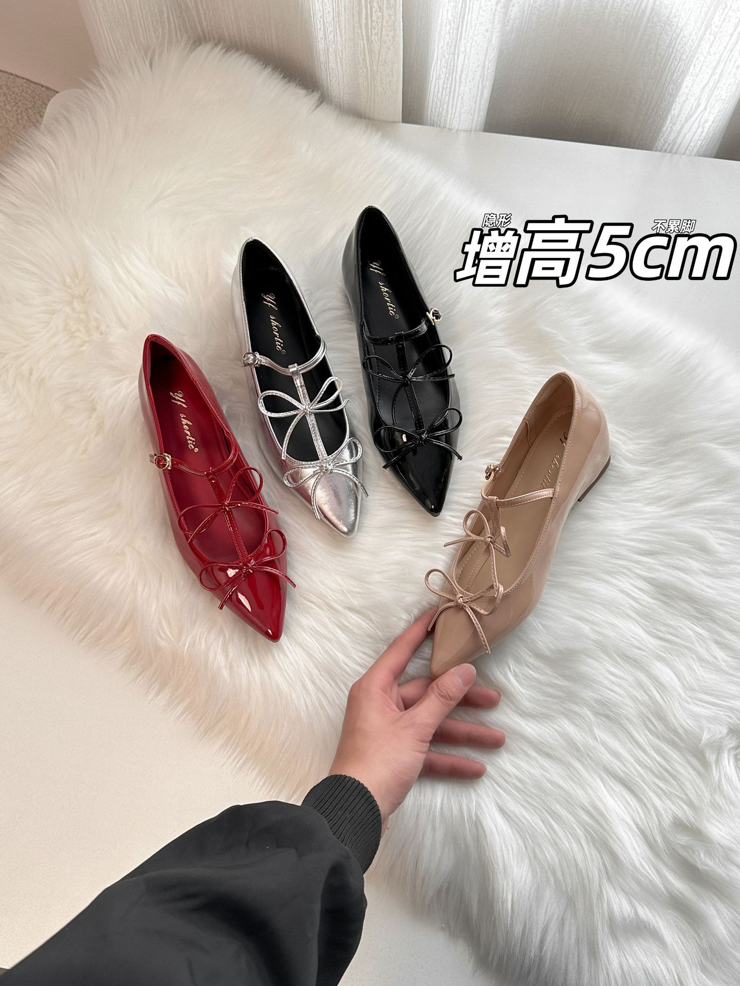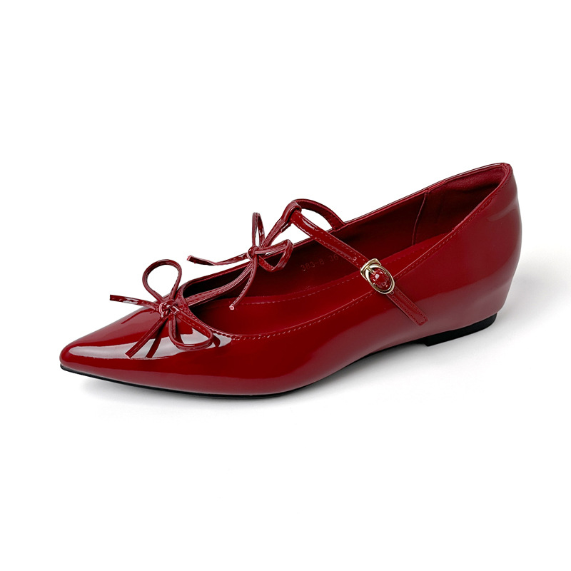 달콤한 나비 뾰족한 발가락 싱글 레이어 신발 2025 새로운 인테리어 높이 올리는 작은 올 매치 메리 제인 플랫 신발 여성용
