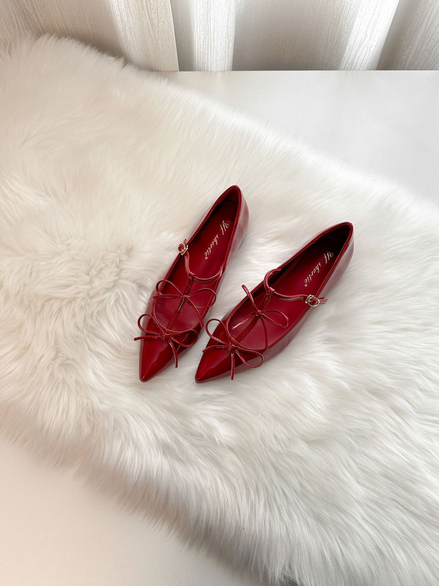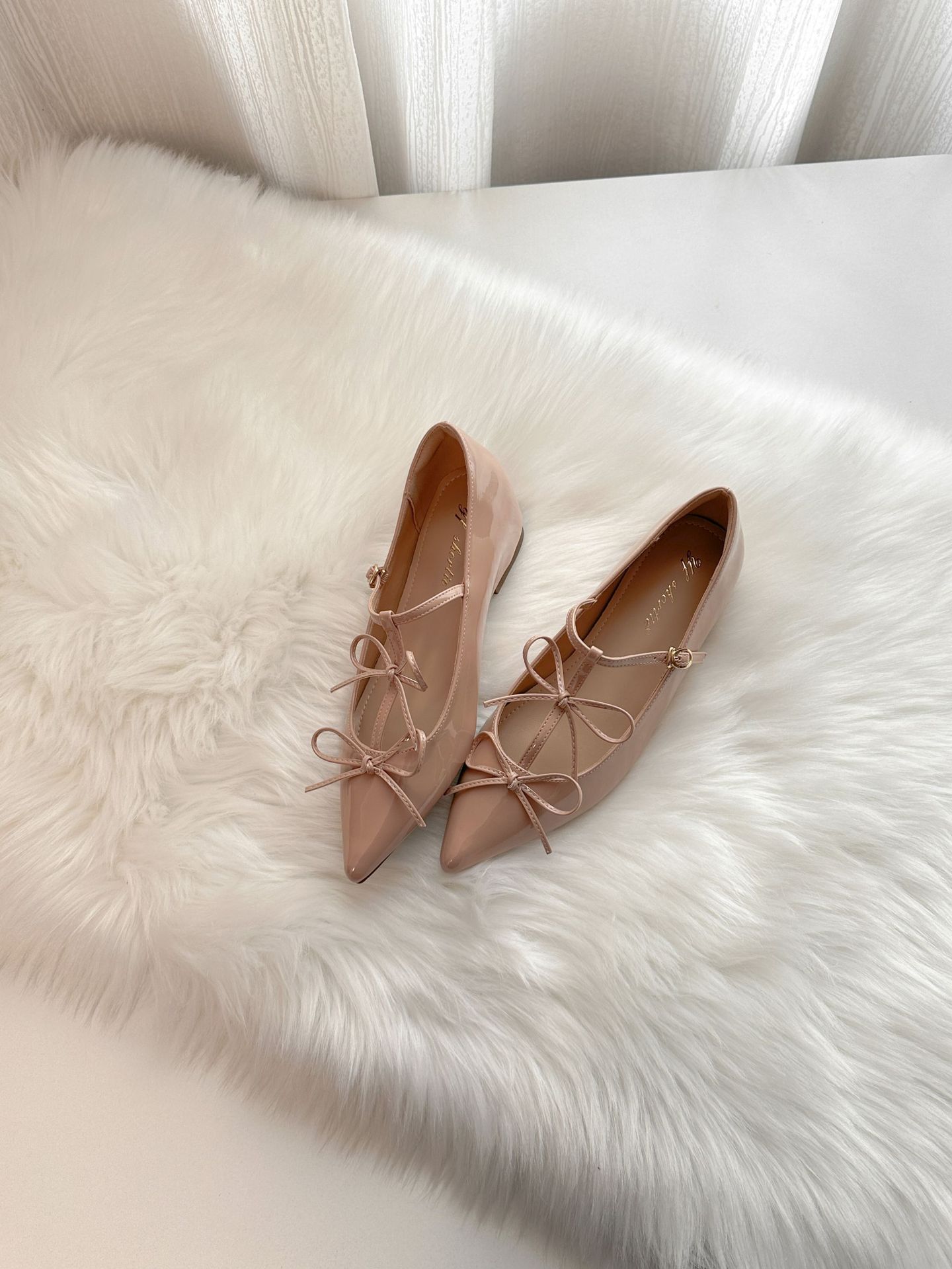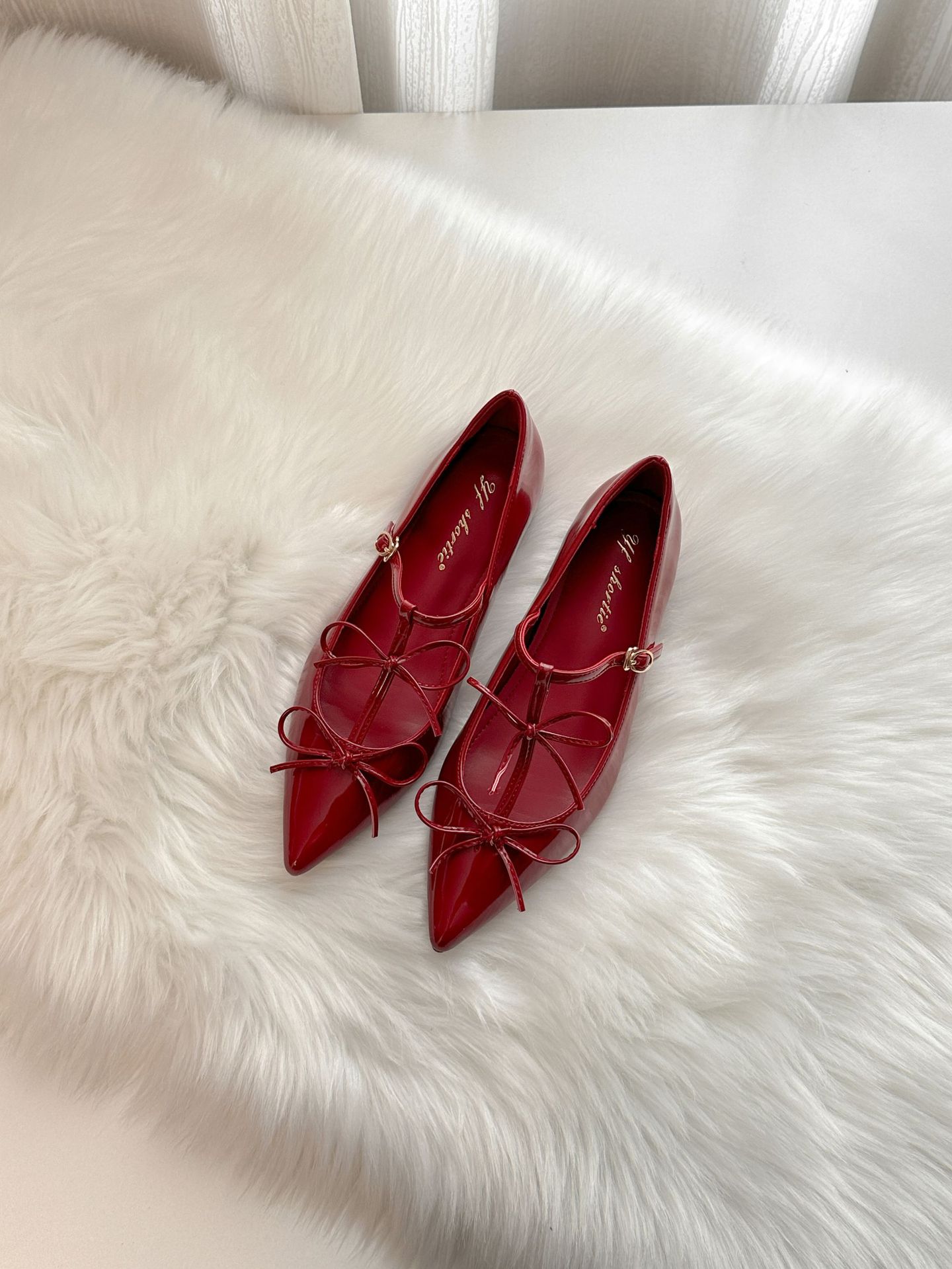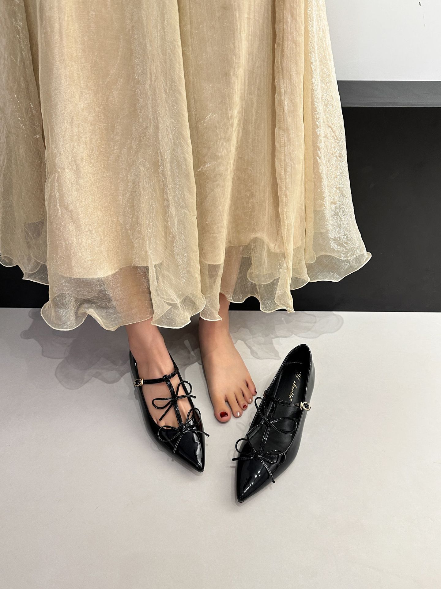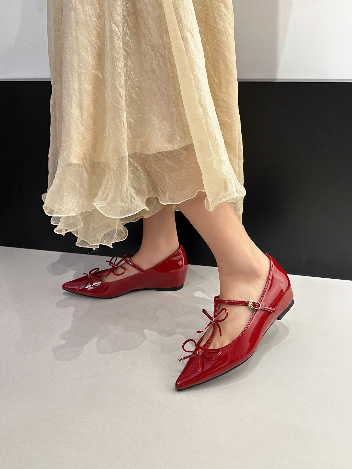달콤한 나비 뾰족한 발가락 싱글 레이어 신발 2025 새로운 인테리어 높이 올리는 작은 올 매치 메리 제인 플랫 신발 여성용