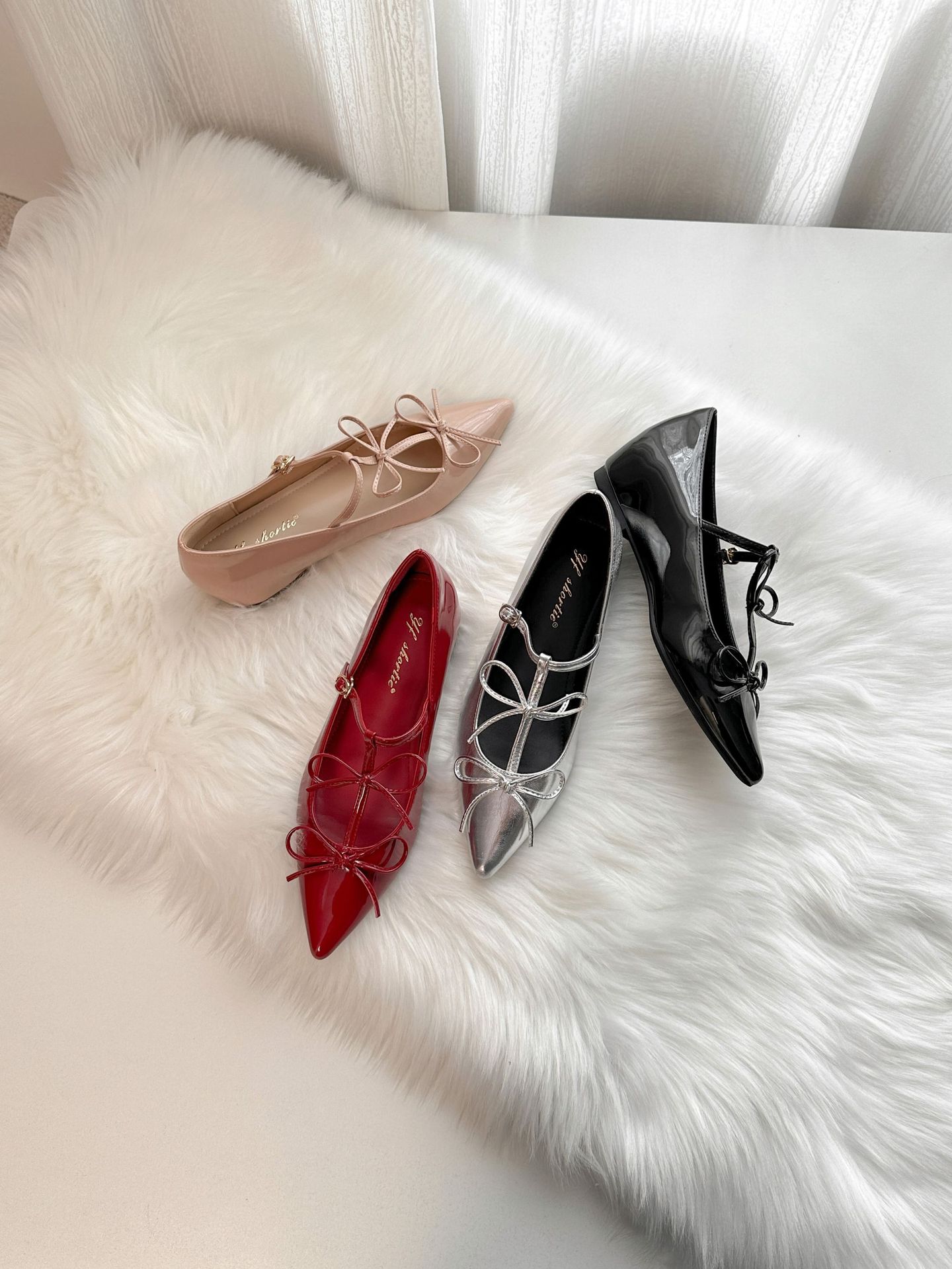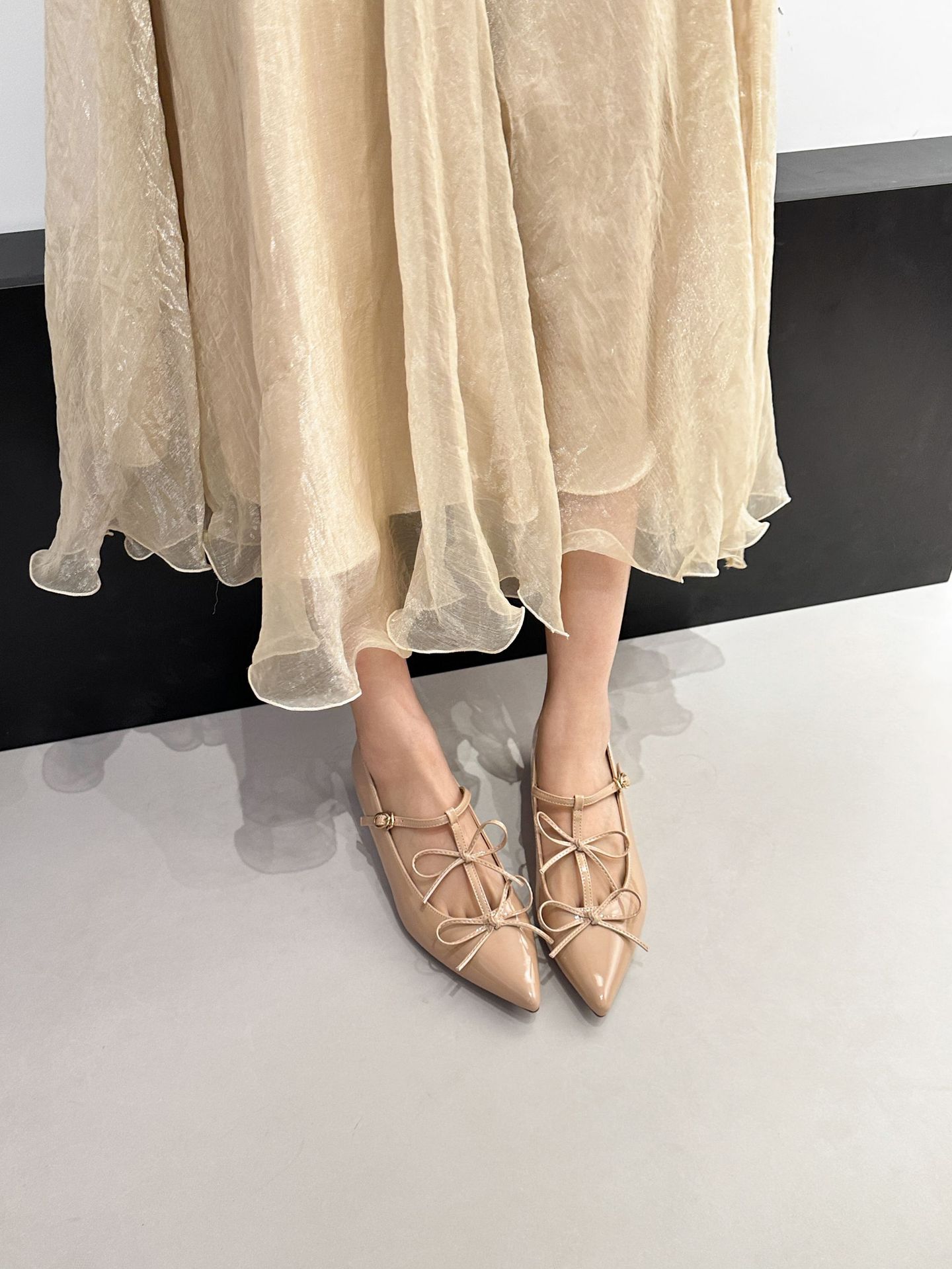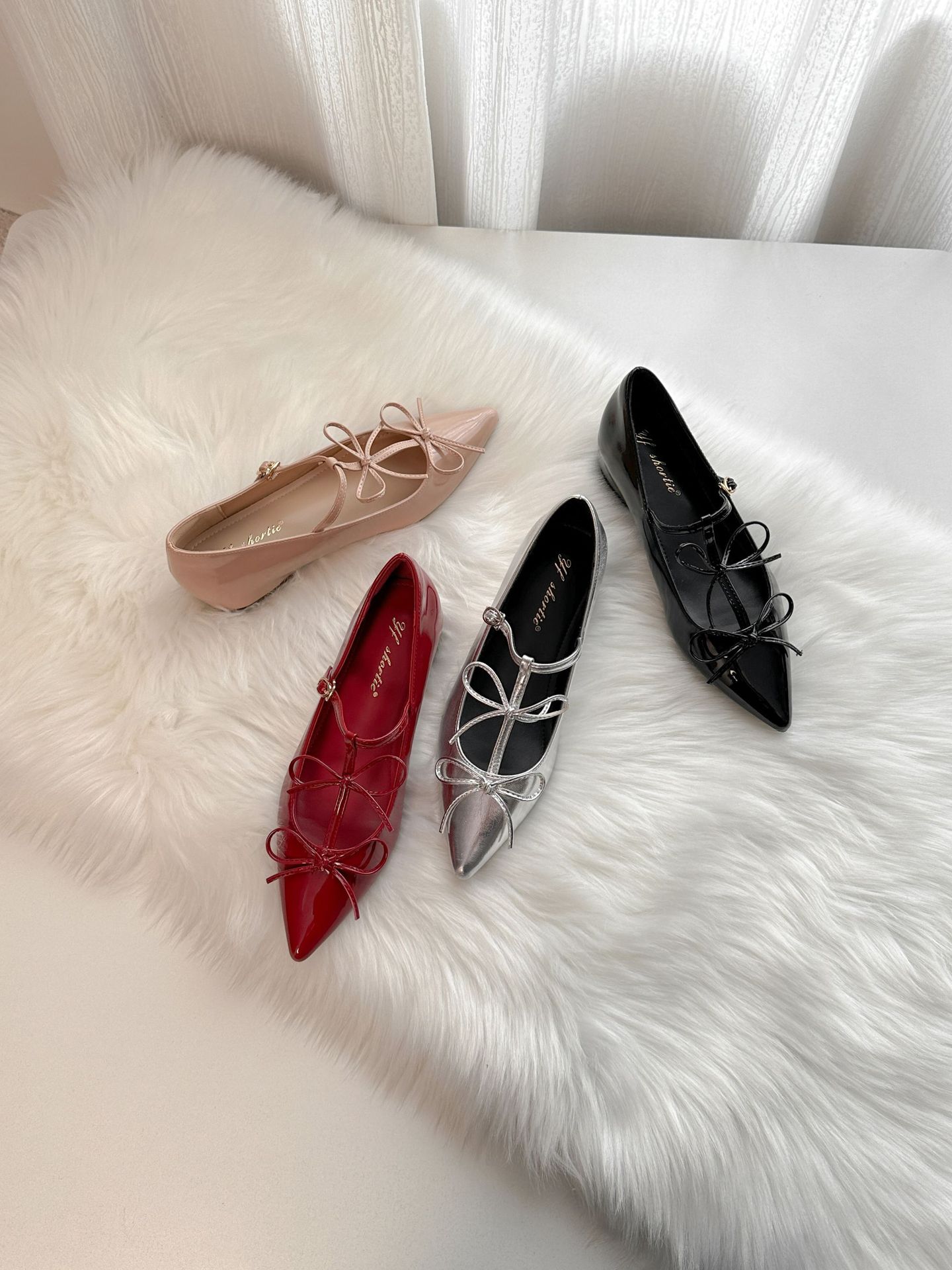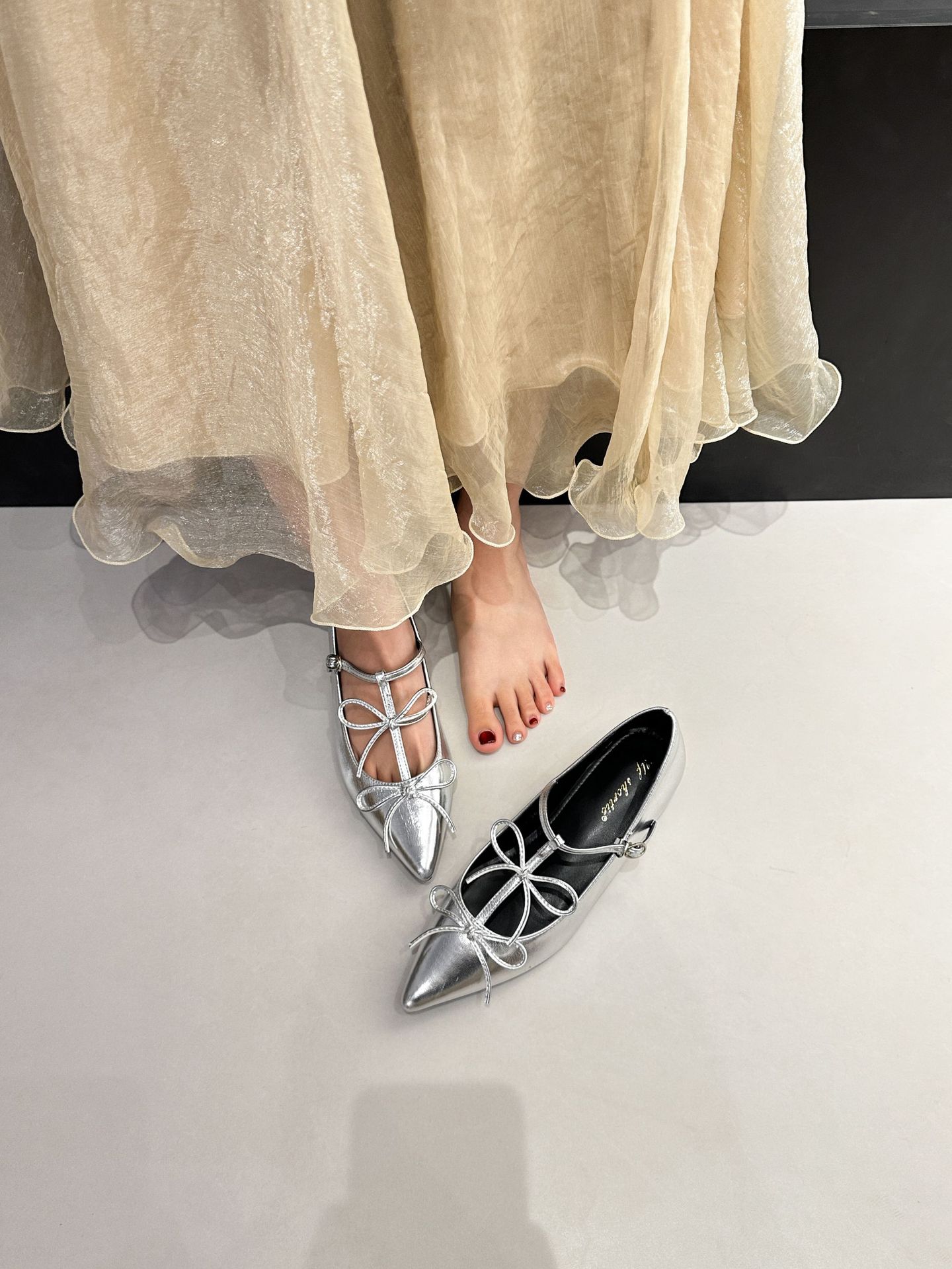 달콤한 나비 뾰족한 발가락 싱글 레이어 신발 2025 새로운 인테리어 높이 올리는 작은 올 매치 메리 제인 플랫 신발 여성용스토어 가기