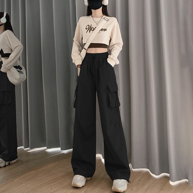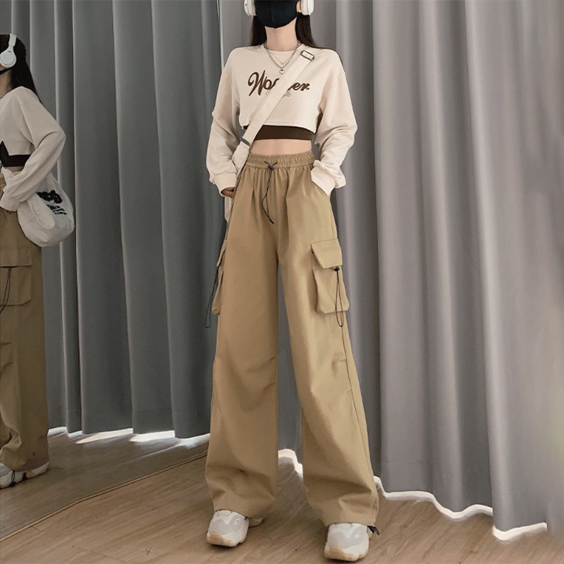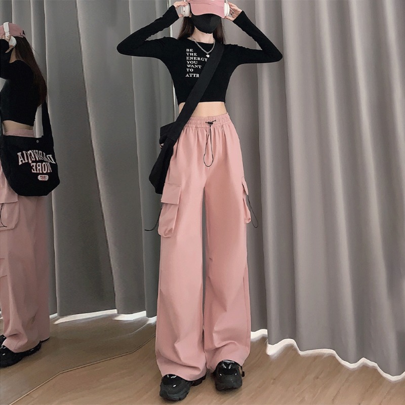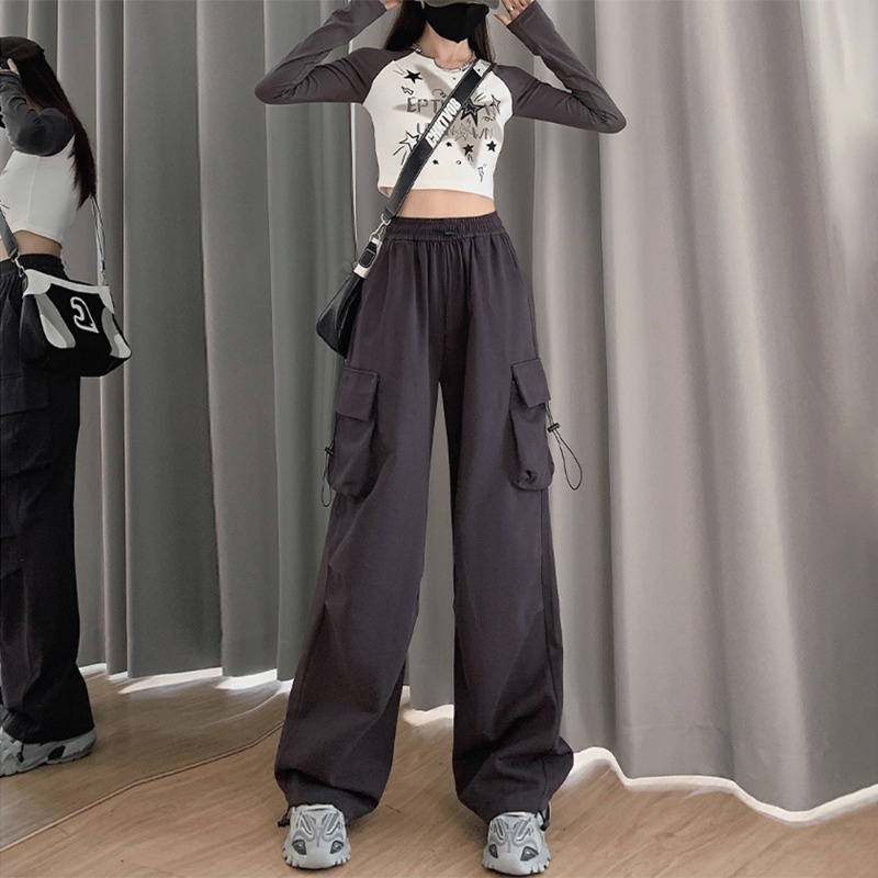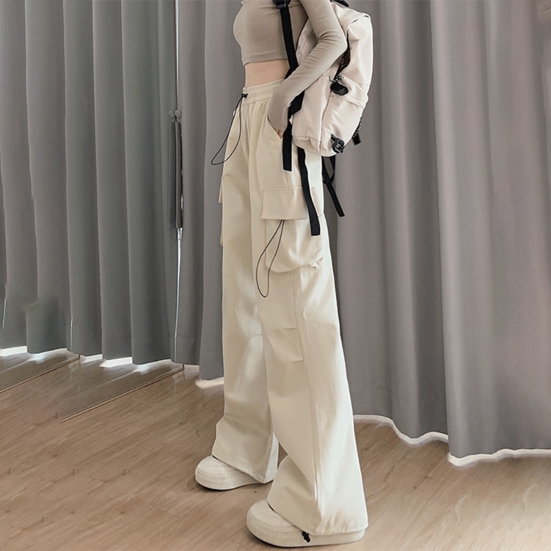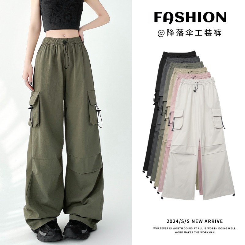 미국 와이드 레그 낙하산 병아리 바지 여자 여름 높은 허리 등산 스포츠 바지 느슨한 레트로 캐주얼 충전 종이 가방 바지스토어 가기