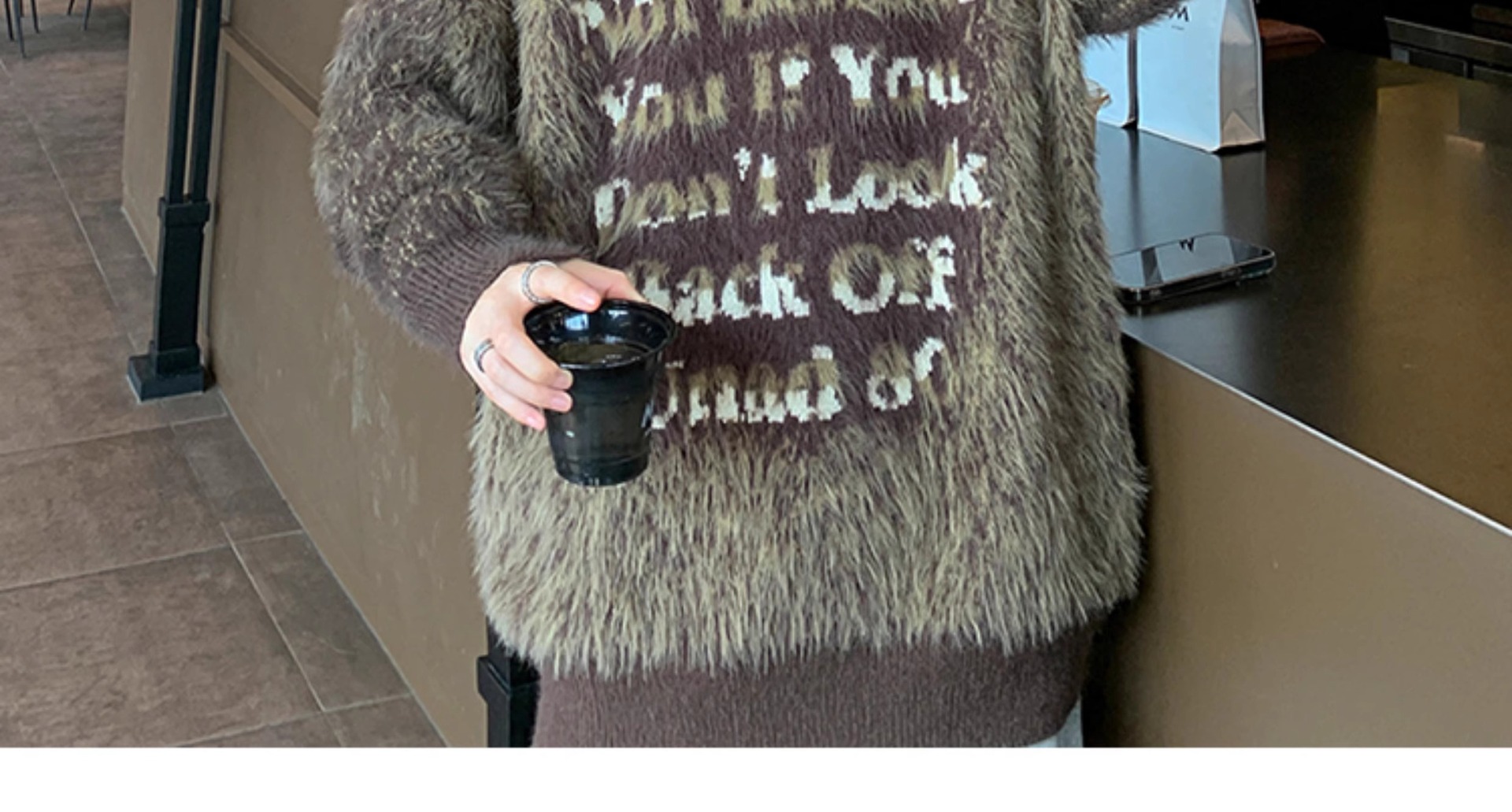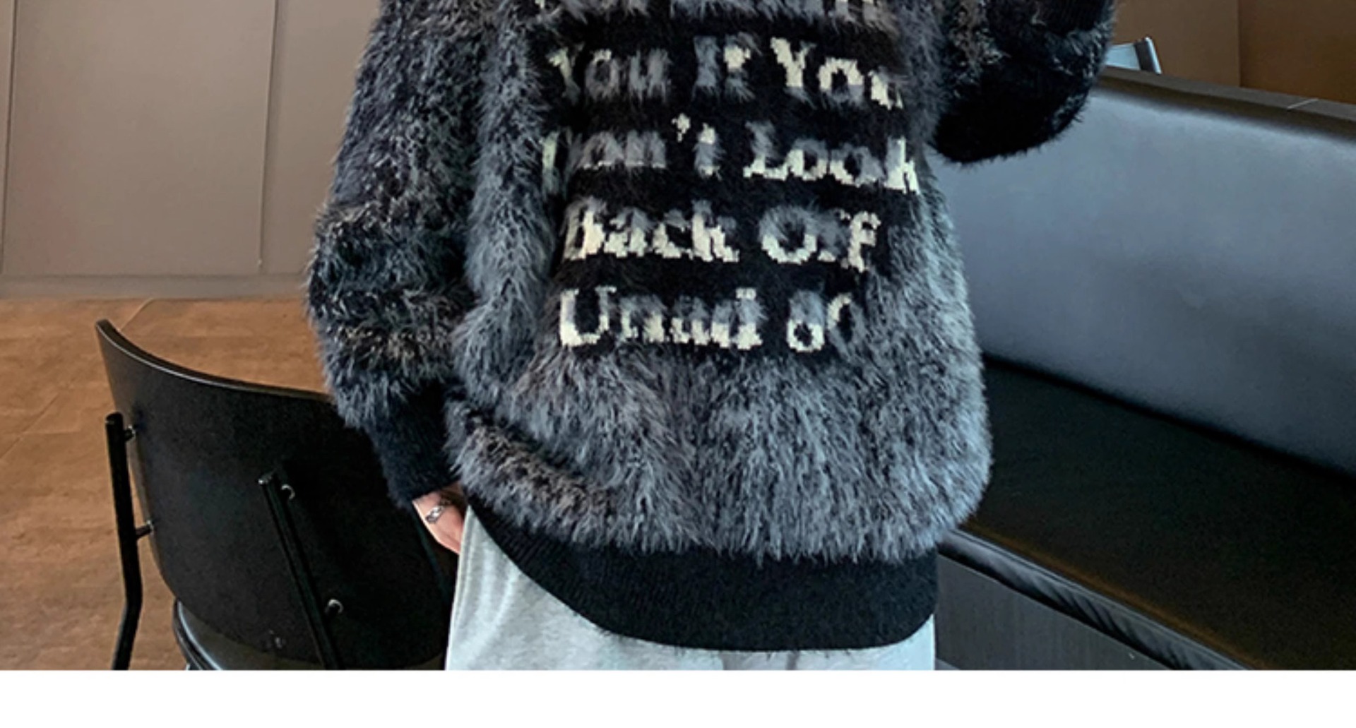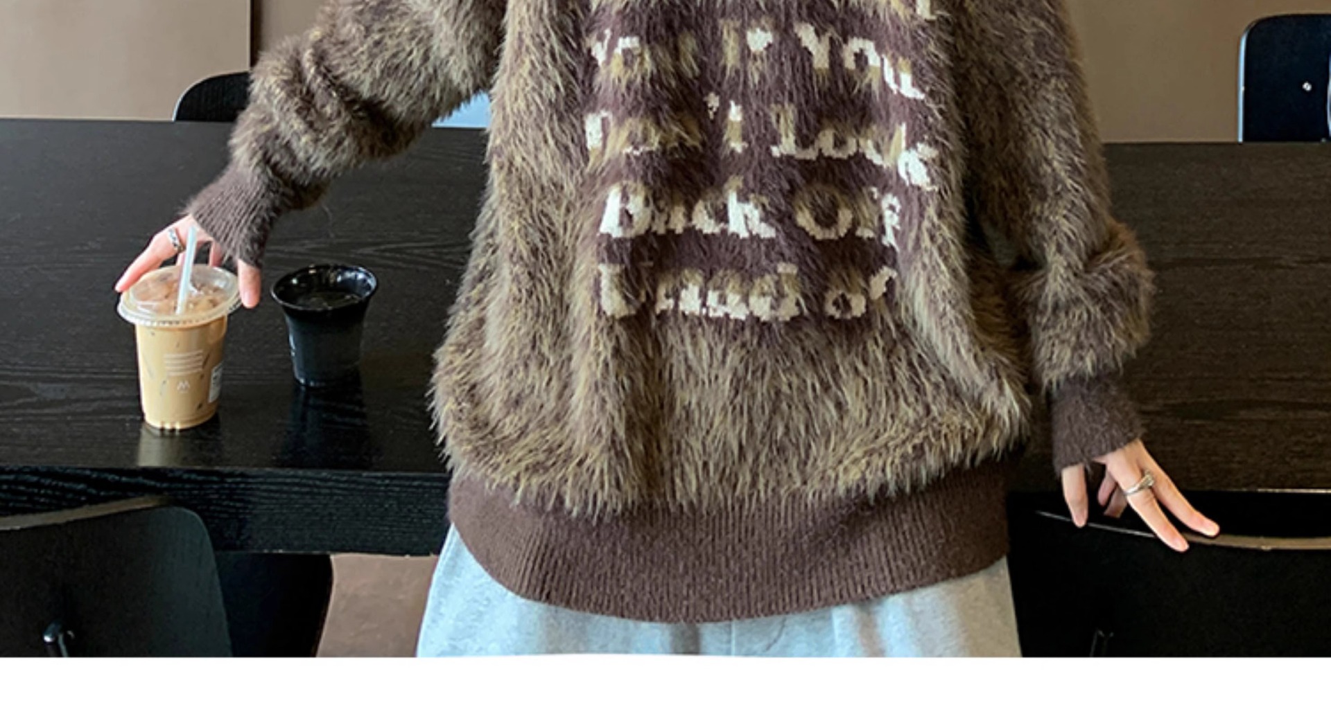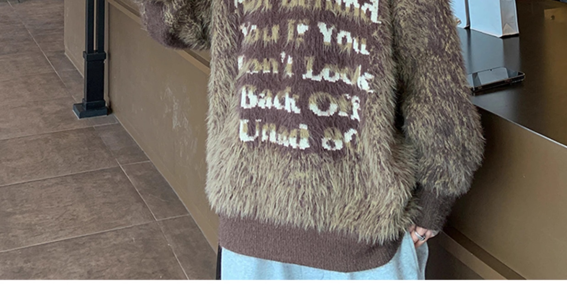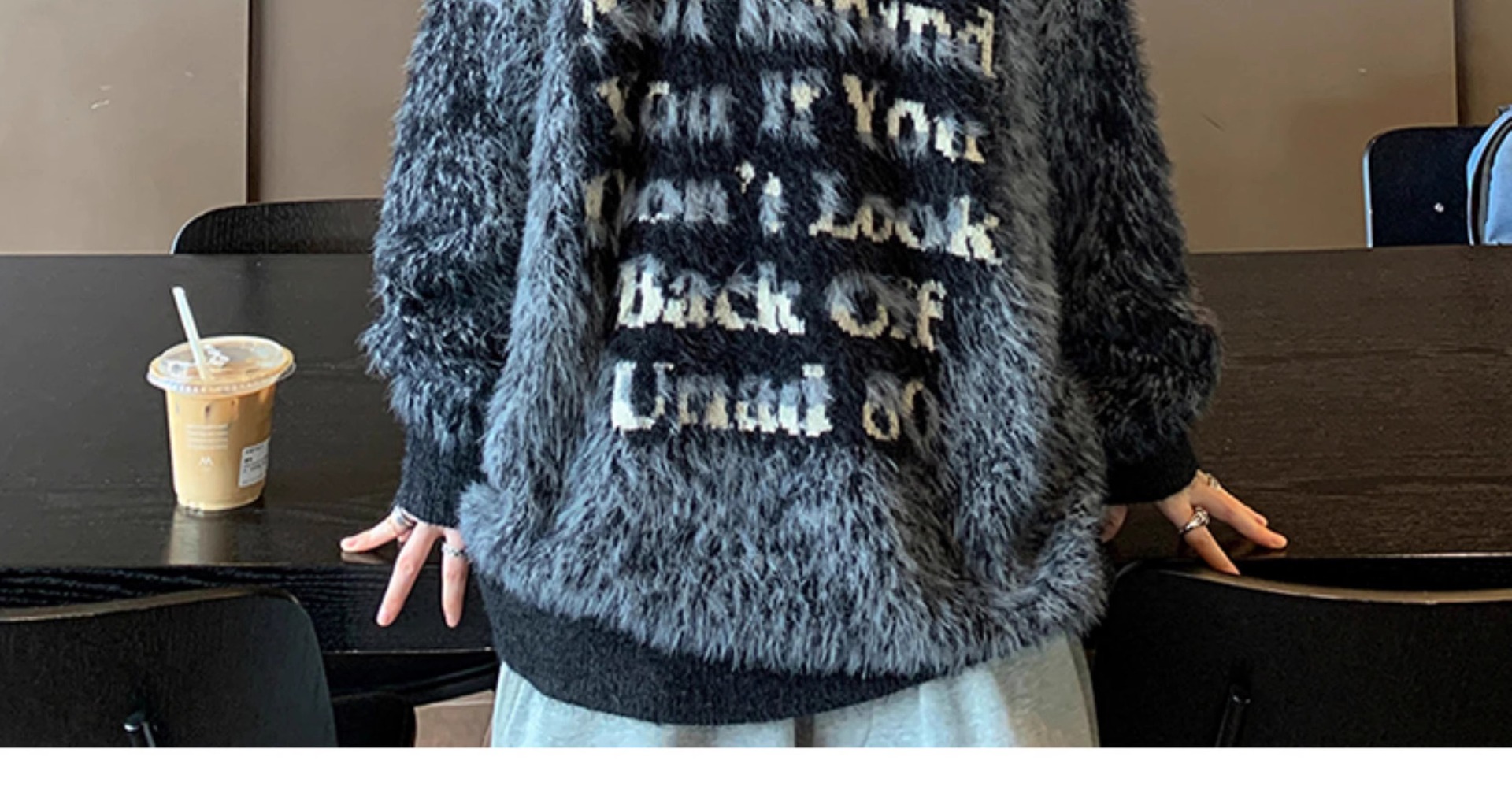 아메리칸 스타일 하이 스트리트 빈티지 편지 게으른 스타일 플러시 따뜻한 스웨터 남자 가을 겨울 모방 밍크 양털 느슨한 크루 넥 재킷스토어 가기