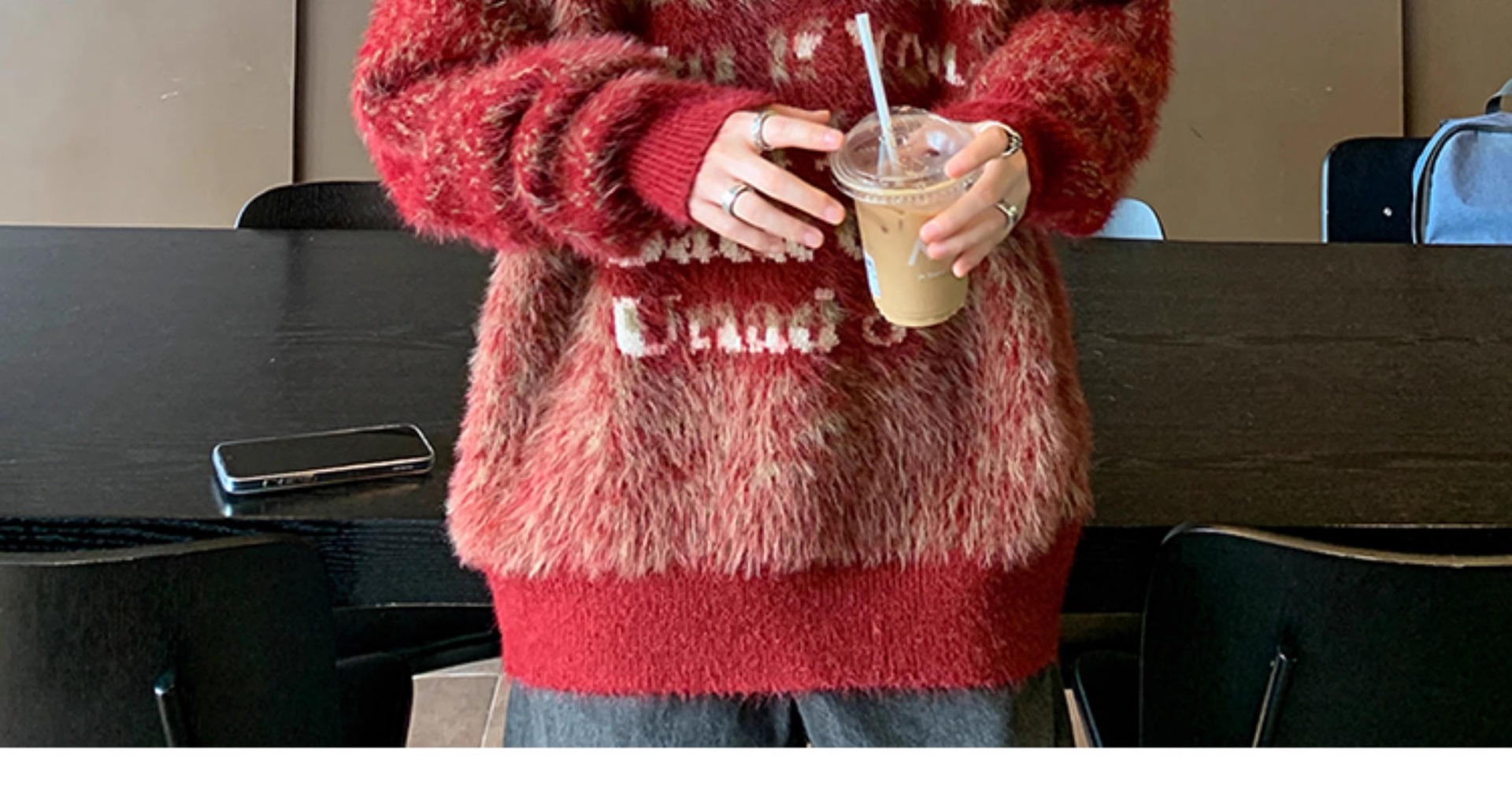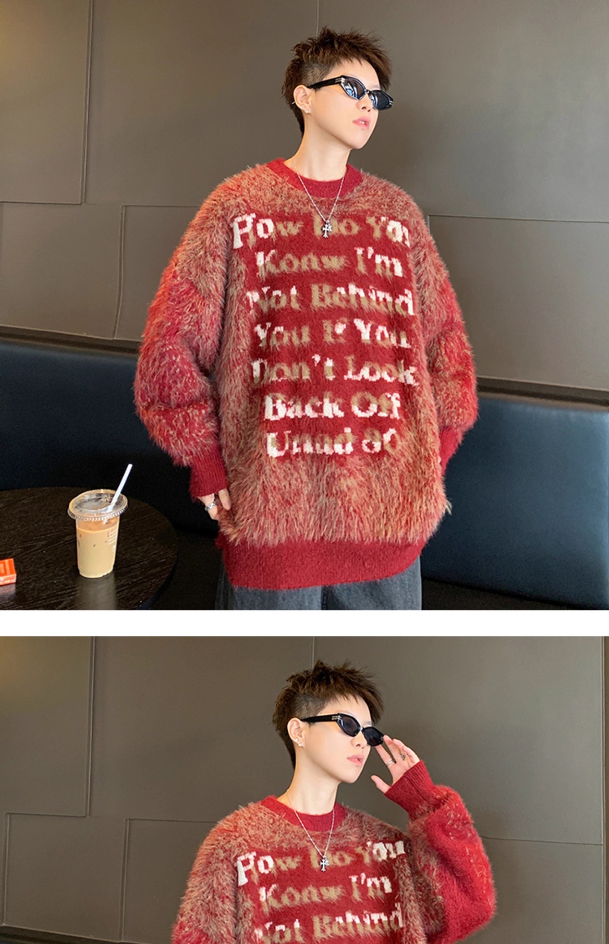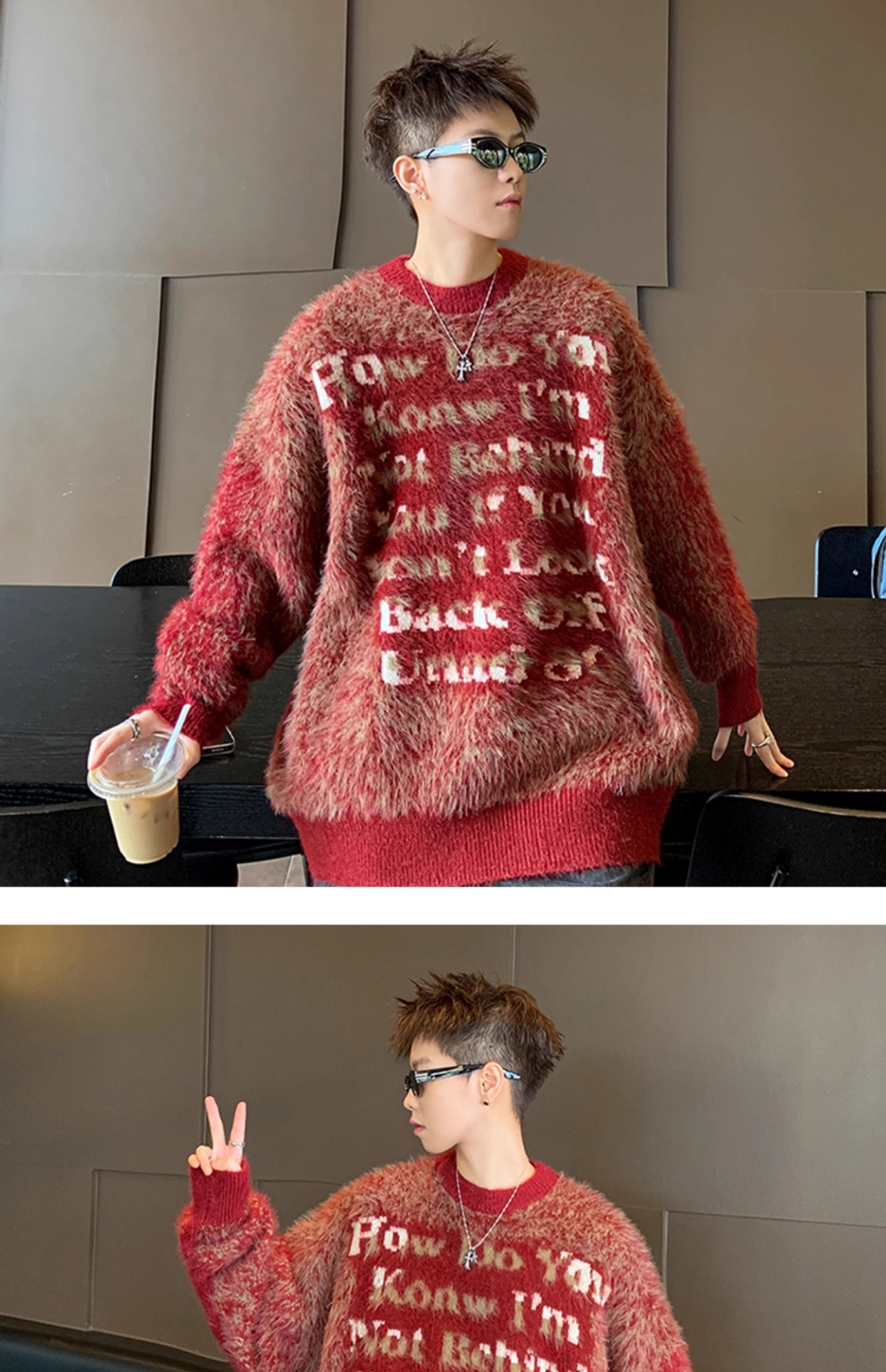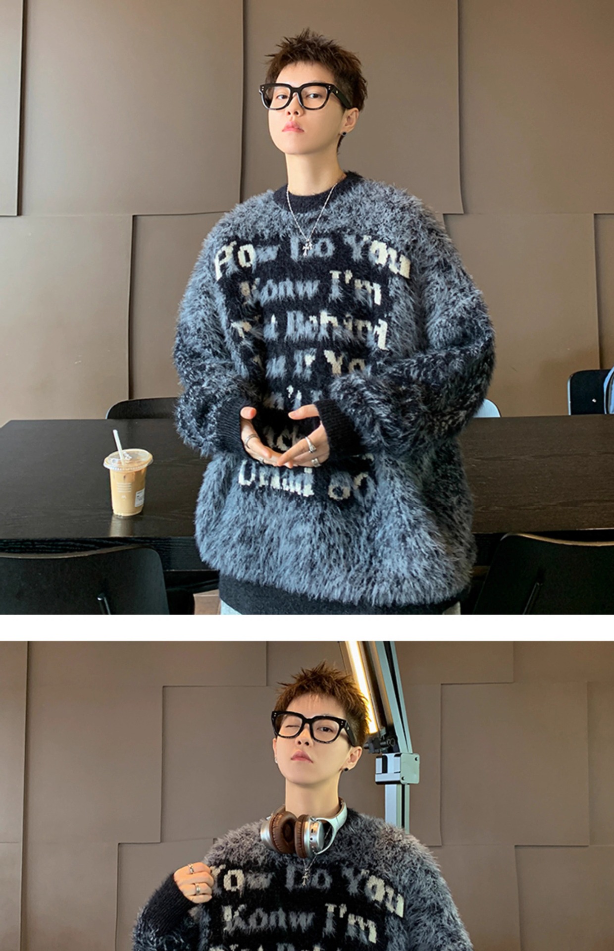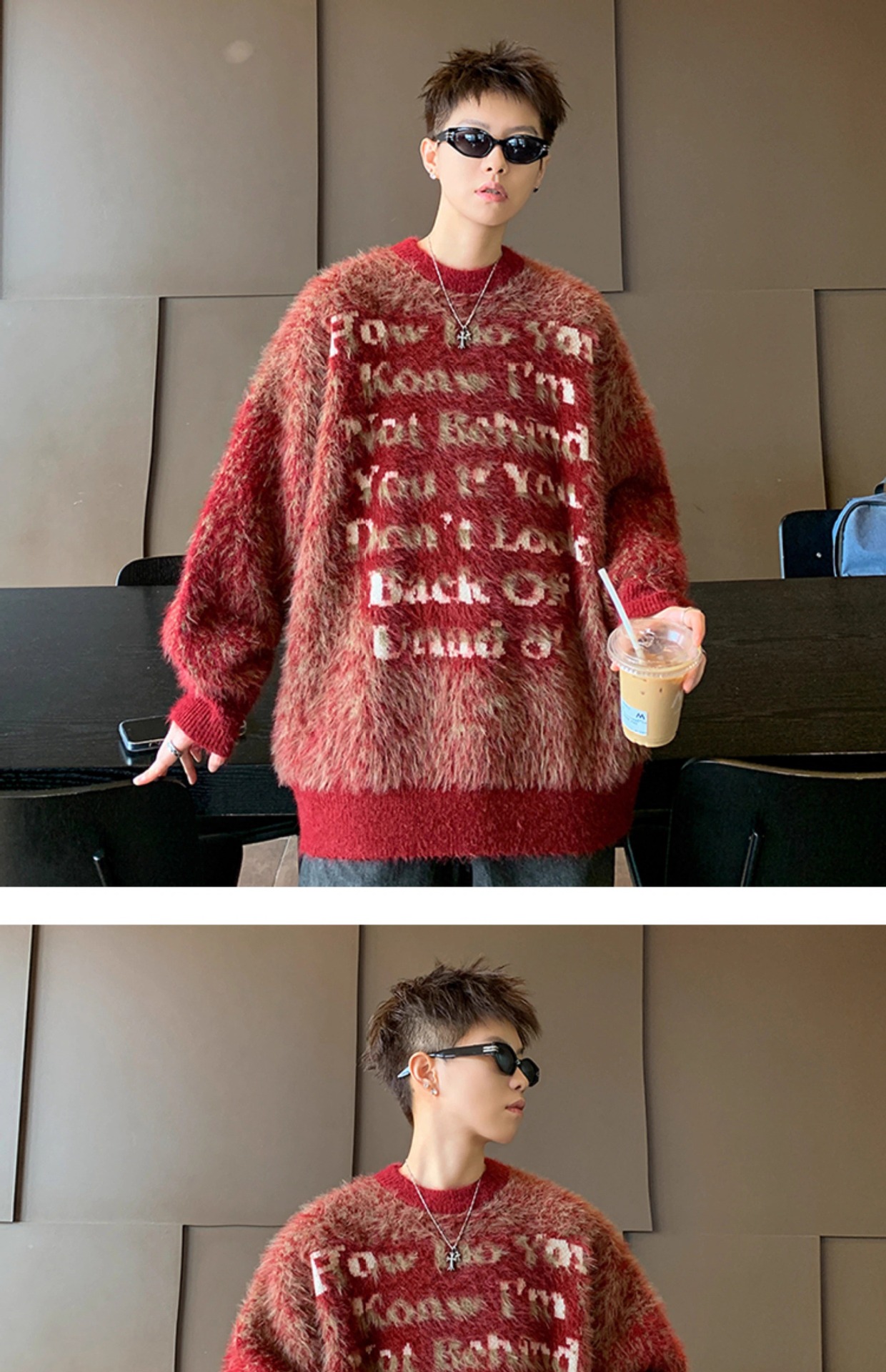 아메리칸 스타일 하이 스트리트 빈티지 편지 게으른 스타일 플러시 따뜻한 스웨터 남자 가을 겨울 모방 밍크 양털 느슨한 크루 넥 재킷