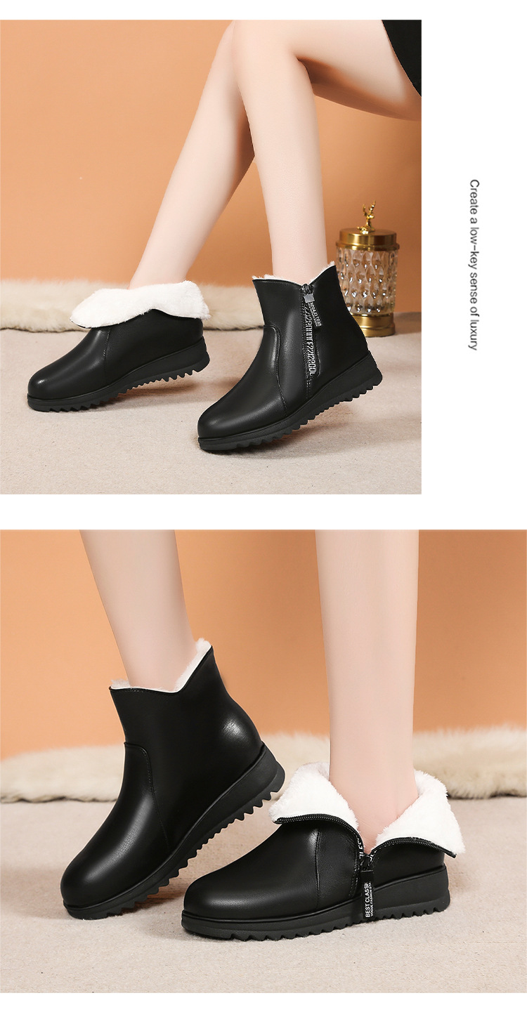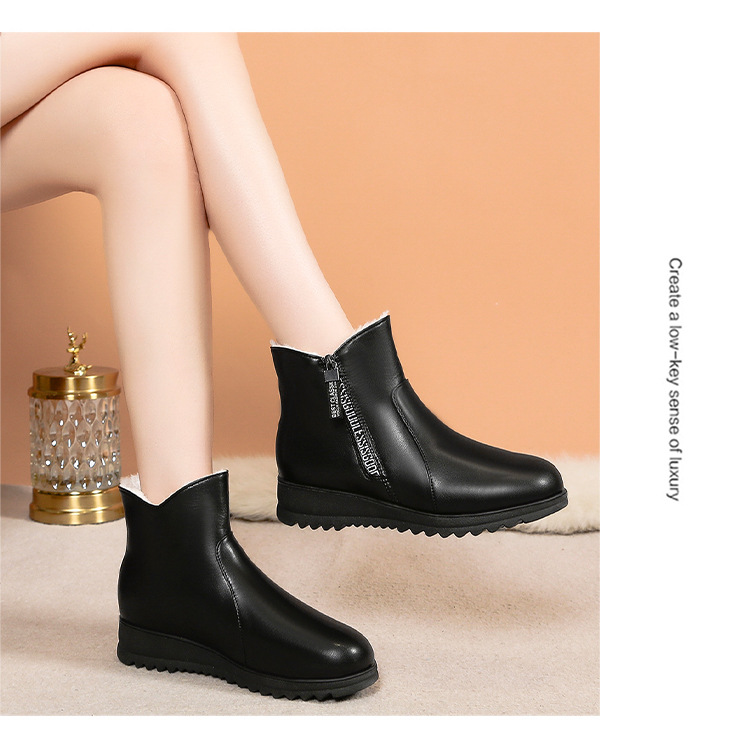 폭발 가죽 방수 기모 스노우 부츠 여성 신발 2024 겨울 새로운 웨지 힐 하이코튼 신발 따뜻한 패션 짧은 부츠