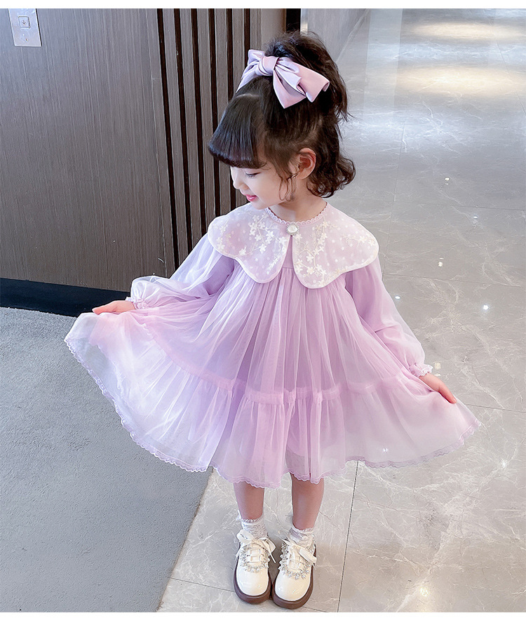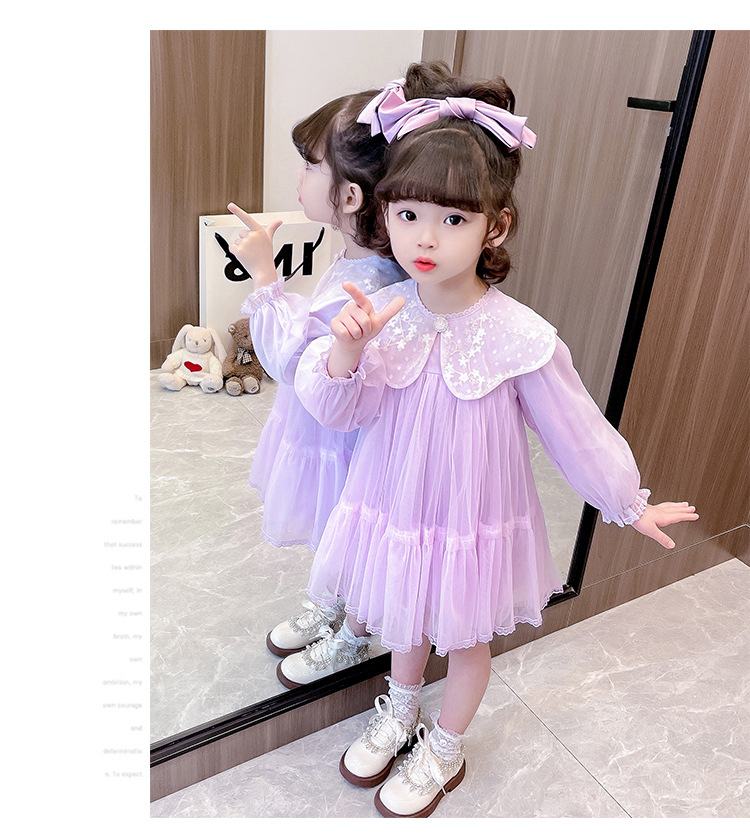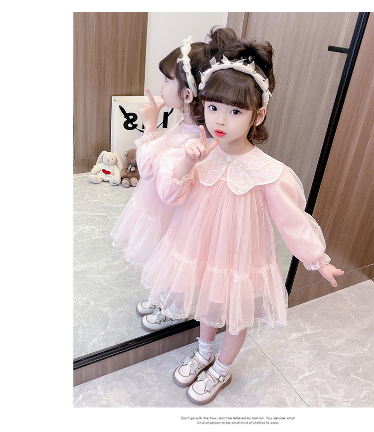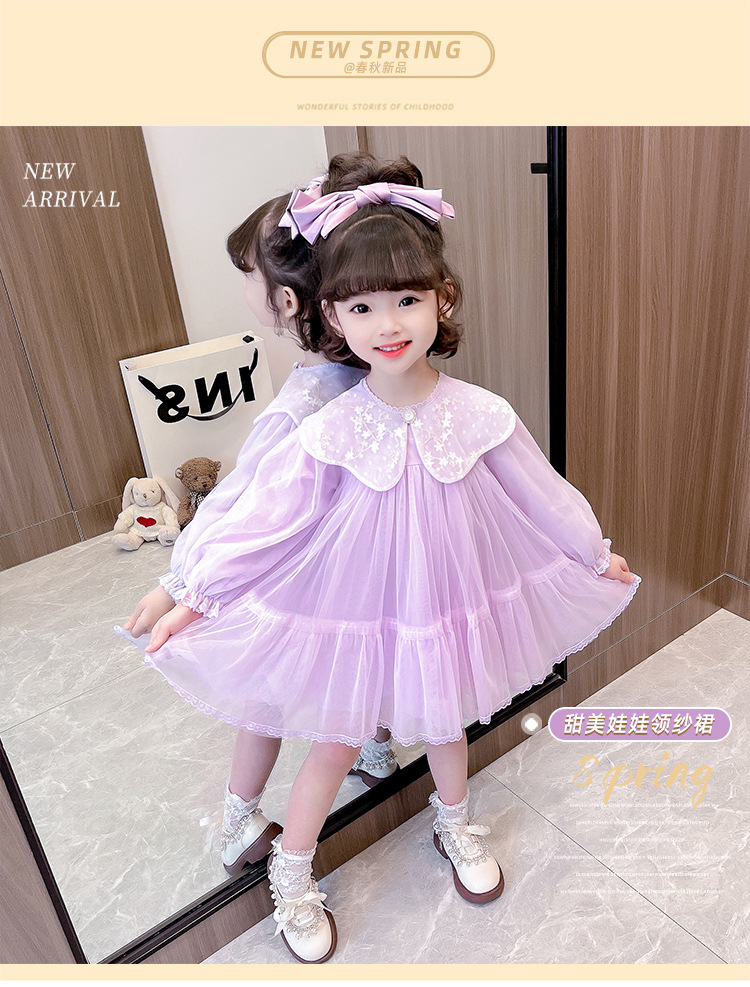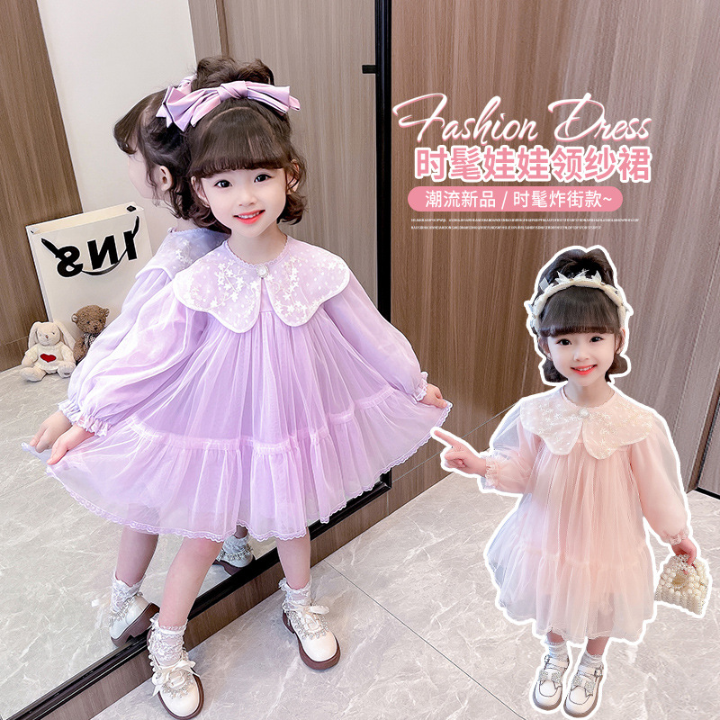 봄 가을 새로운 어린이 인형 칼라 긴 소매 원피스 소녀 달콤한 공주 원피스스토어 가기