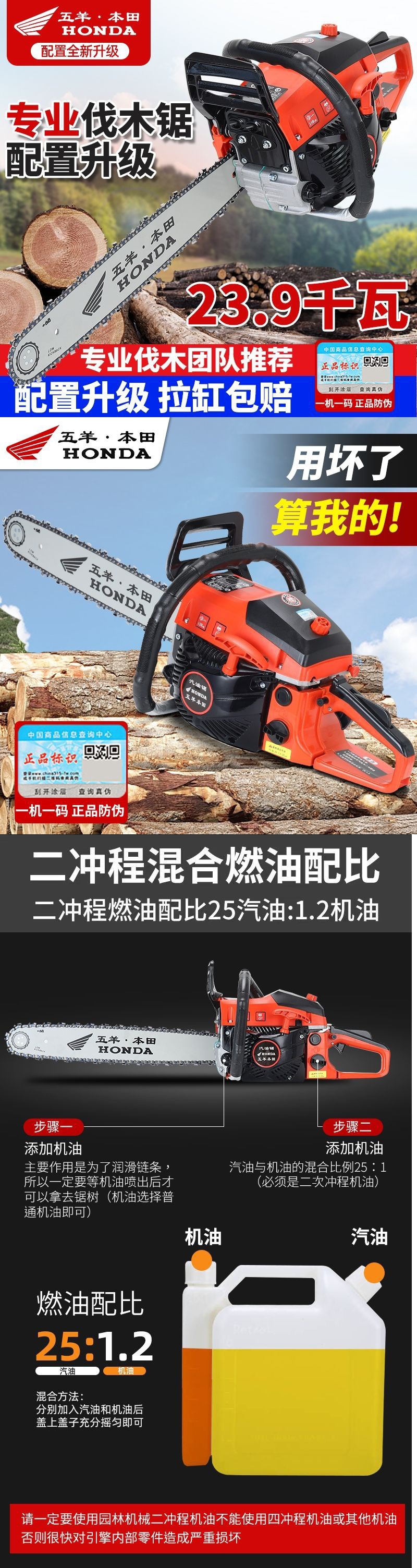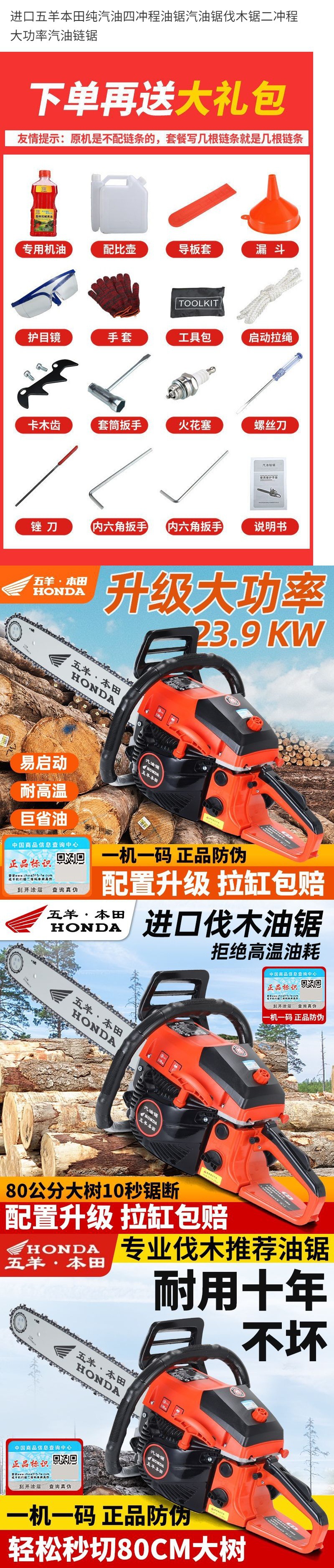 수입 된 Wuyang Honda 순수 가솔린 4 행정 체인은 휘발유가 2 행정 고출력 가솔린 체인 톱을 보았습니다.스토어 가기