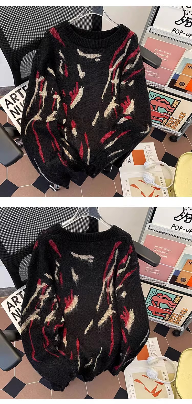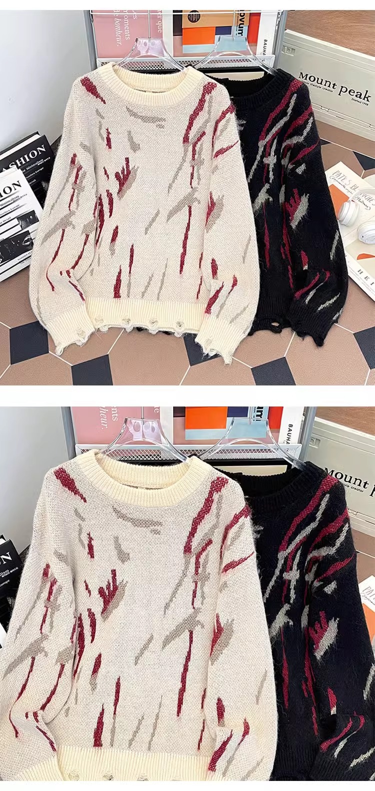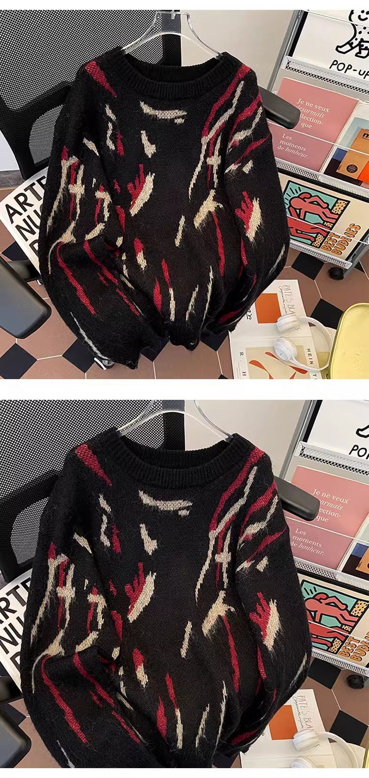 봄과 가을 새로운 미국 하이 스트리트 레트로 모헤어 스웨터 남녀 커플 느슨한 게으른 분위기 니트웨어