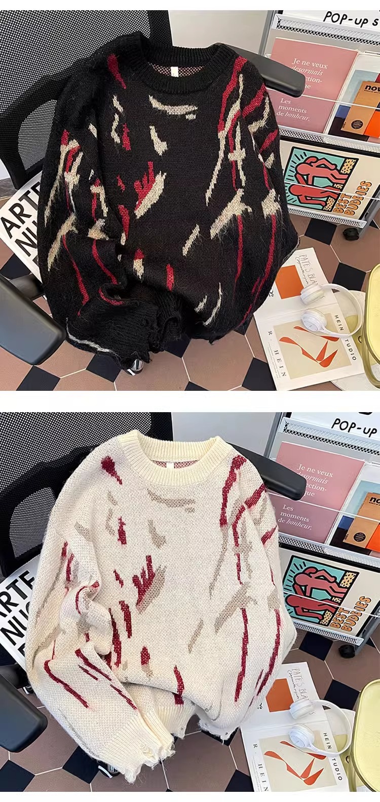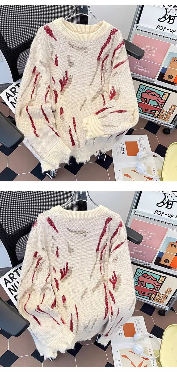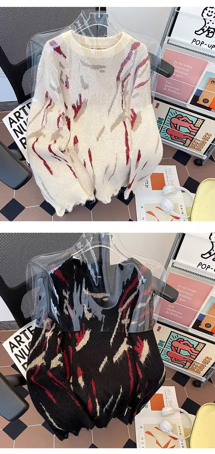 봄과 가을 새로운 미국 하이 스트리트 레트로 모헤어 스웨터 남녀 커플 느슨한 게으른 분위기 니트웨어