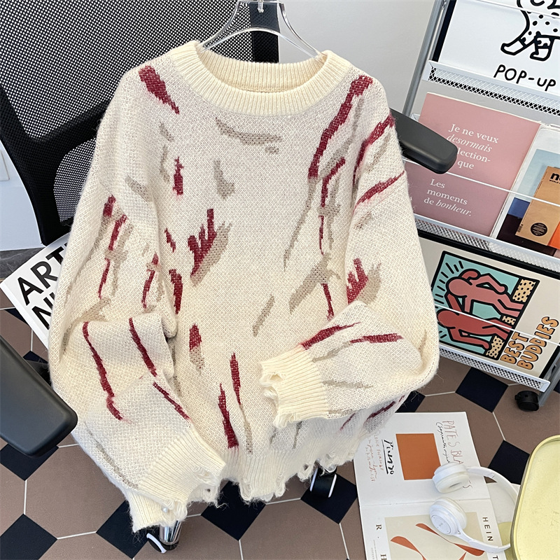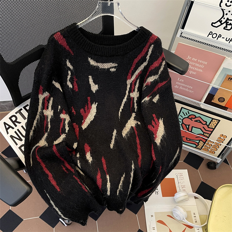 봄과 가을 새로운 미국 하이 스트리트 레트로 모헤어 스웨터 남녀 커플 느슨한 게으른 분위기 니트웨어스토어 가기
