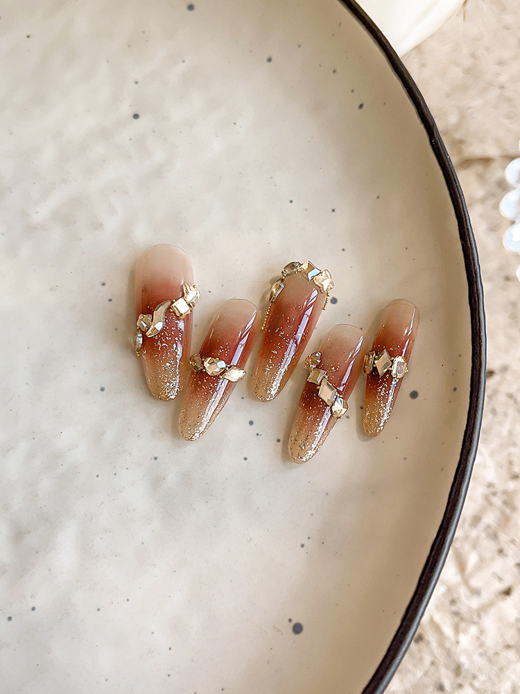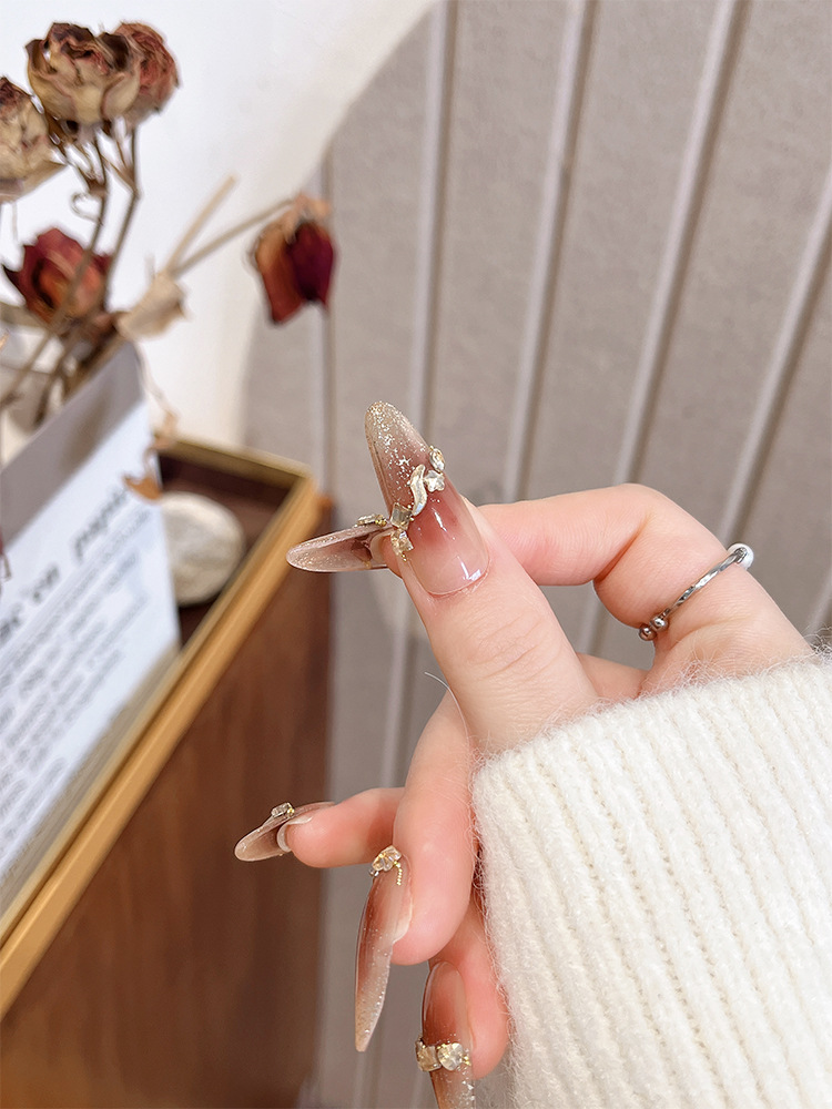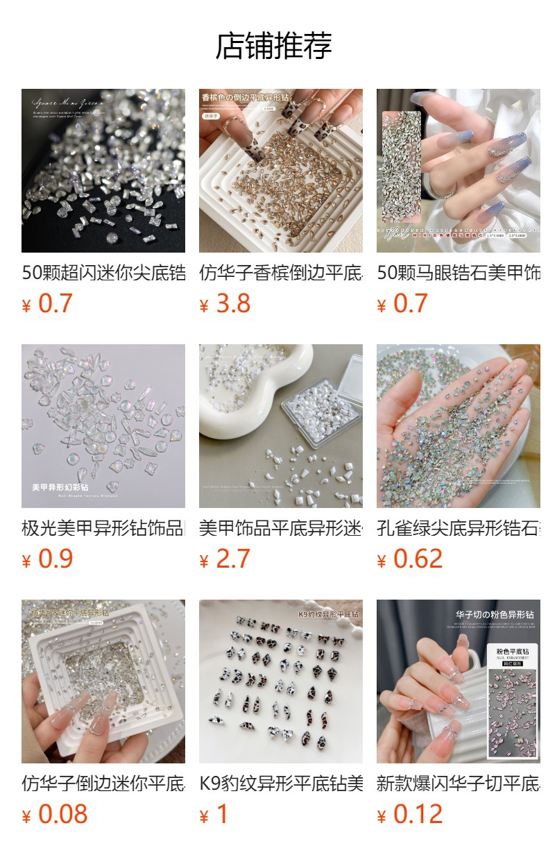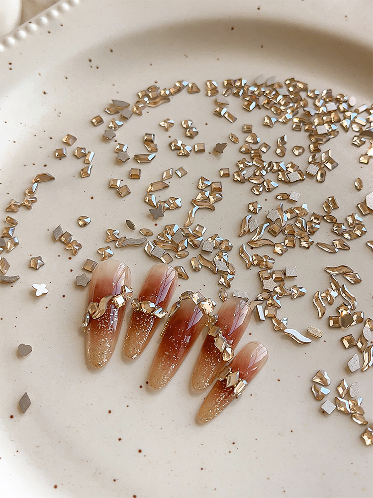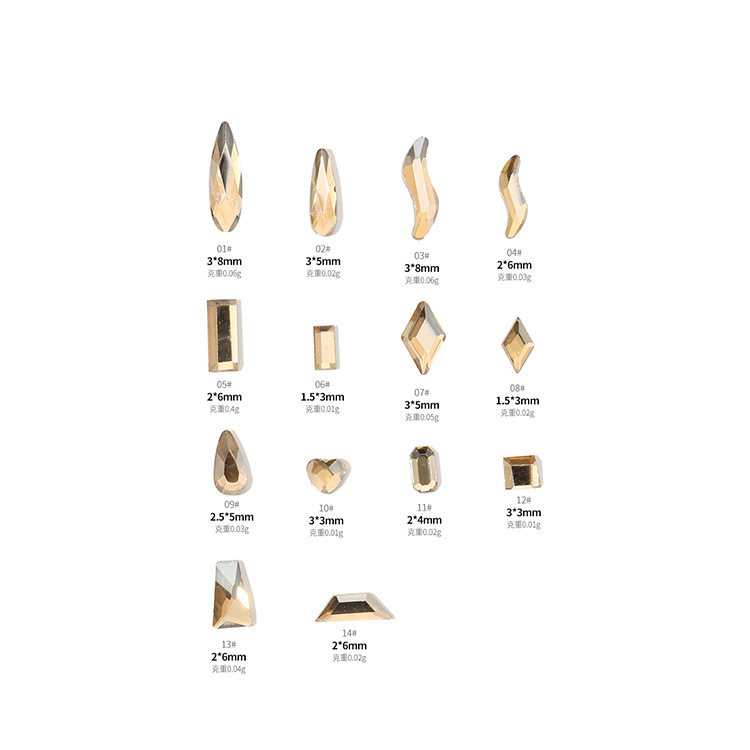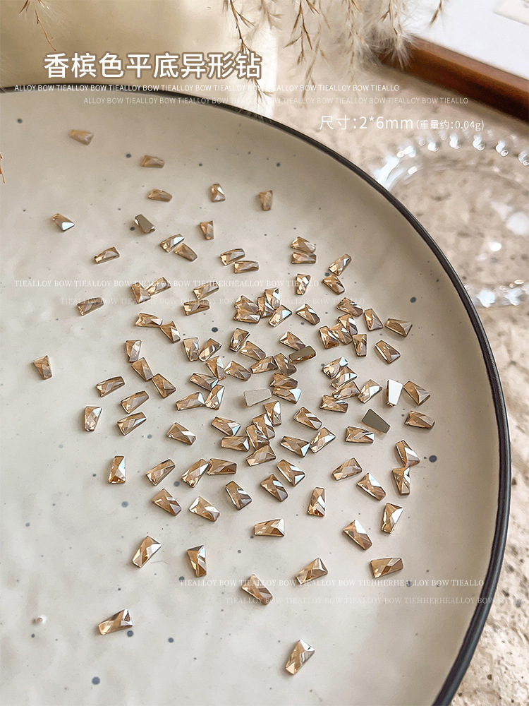 샴페인 컬러 평면 바닥 특수 모양의 다이아몬드 네일 쥬얼리 사랑 긴 팔각형 다이아몬드 드롭 다이아몬드 착용 네일 장식 도매스토어 가기
