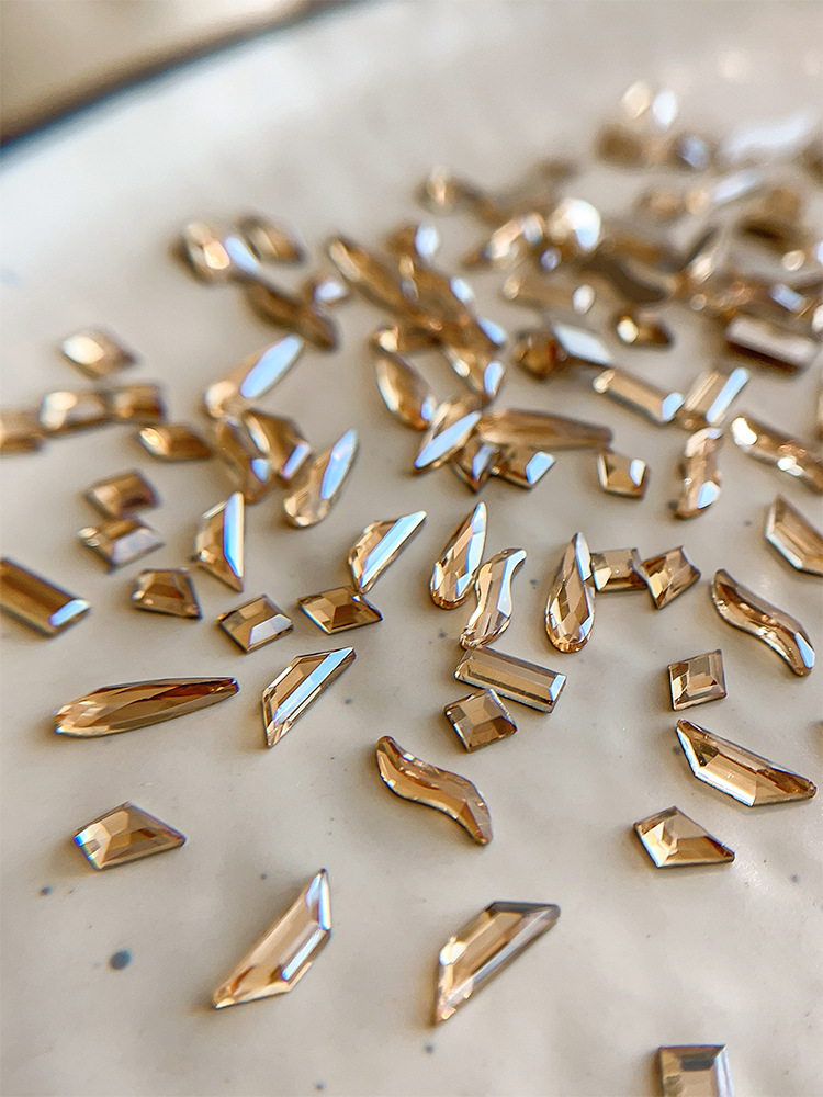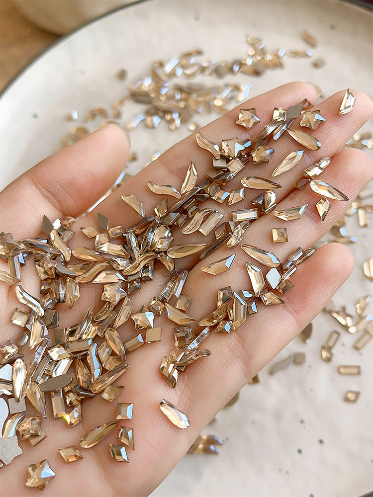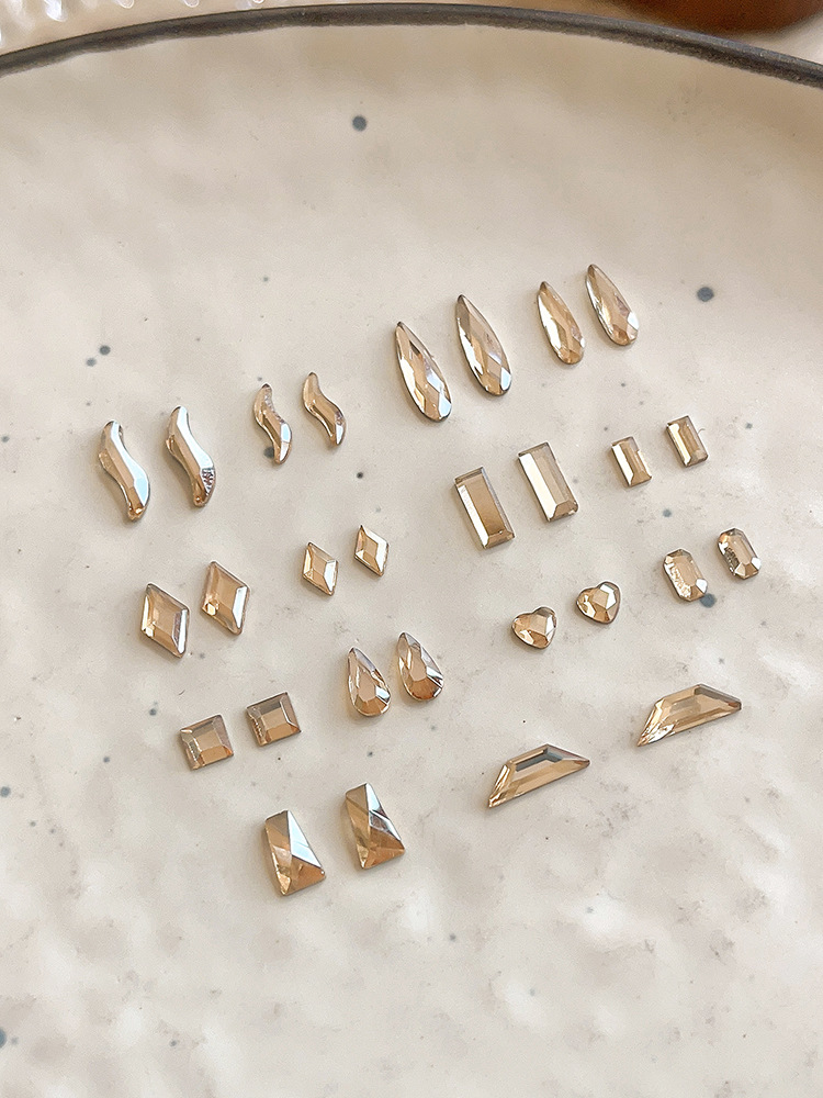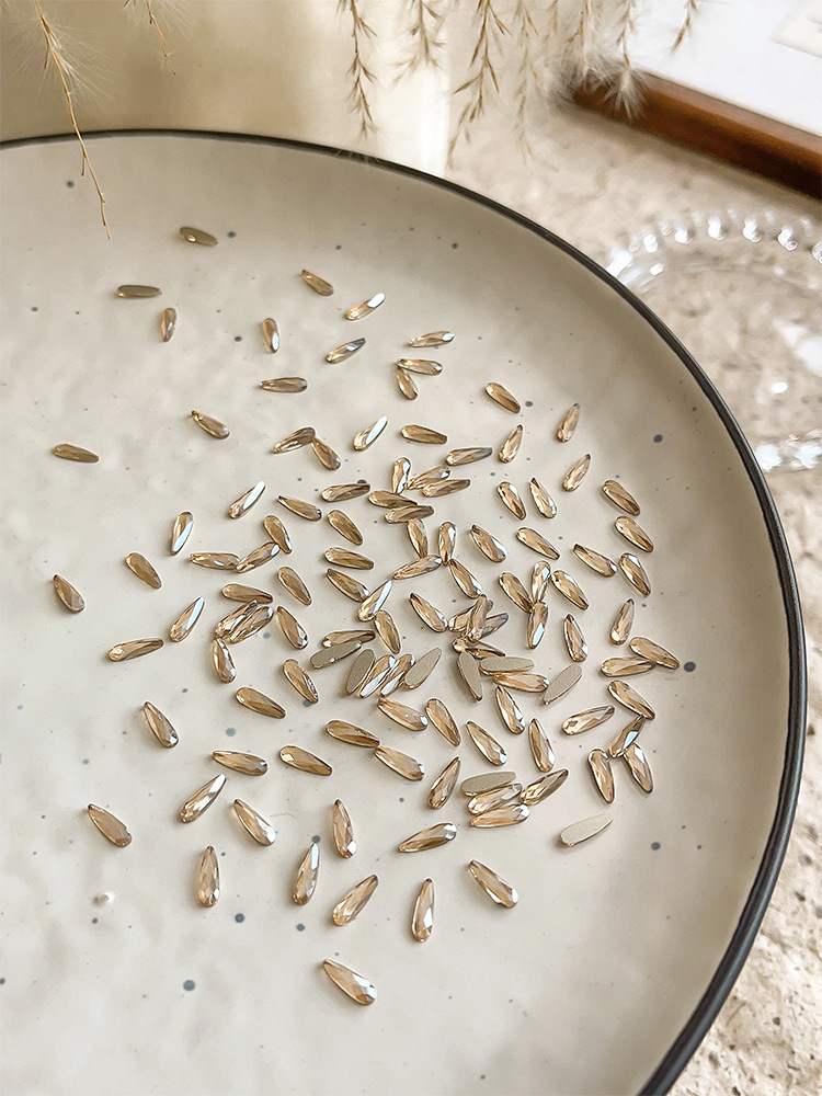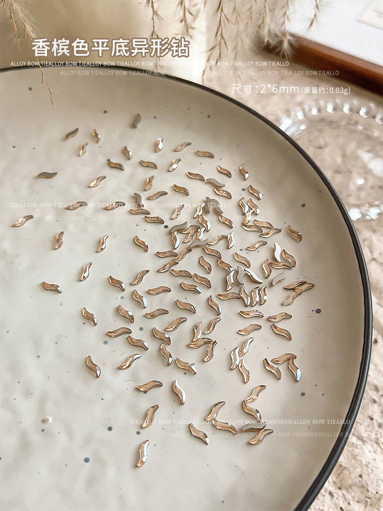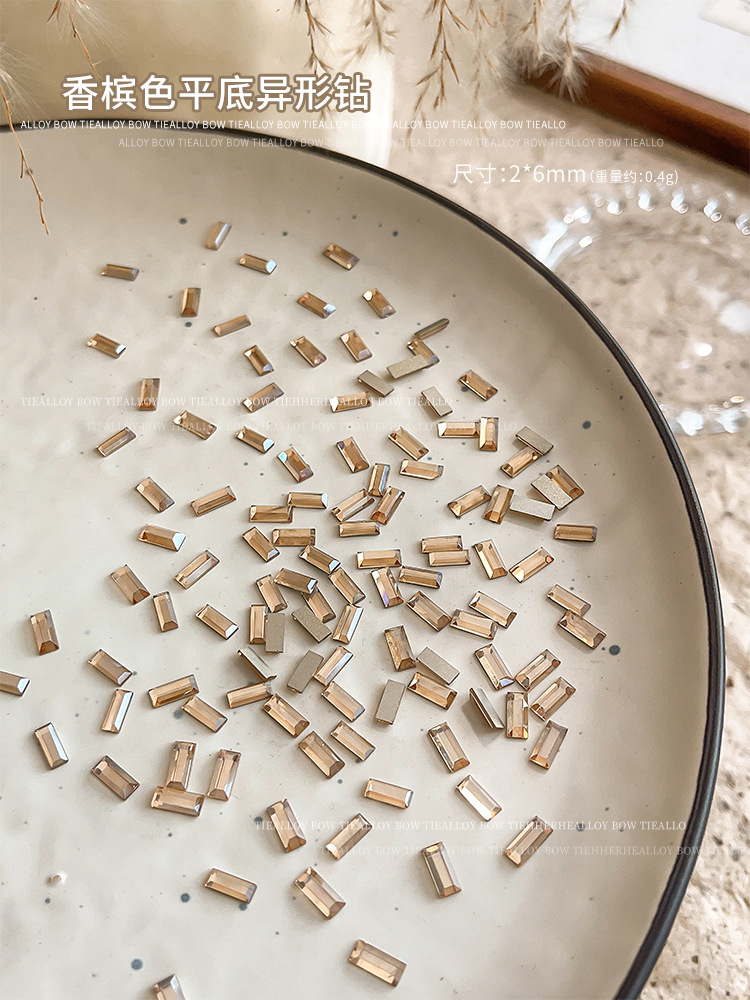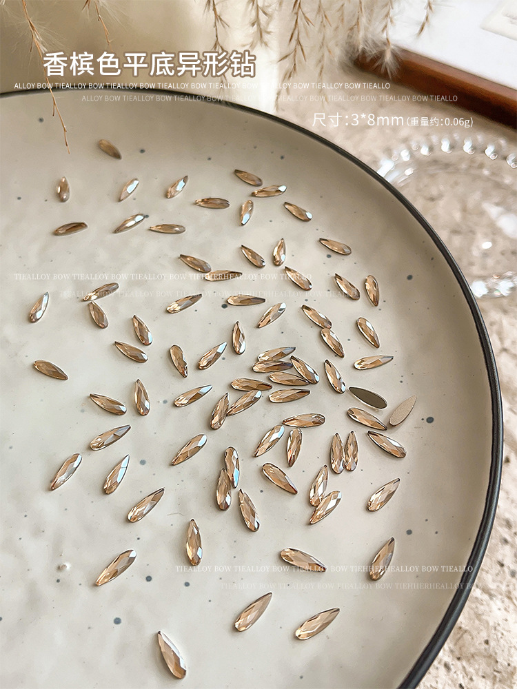 샴페인 컬러 평면 바닥 특수 모양의 다이아몬드 네일 쥬얼리 사랑 긴 팔각형 다이아몬드 드롭 다이아몬드 착용 네일 장식 도매