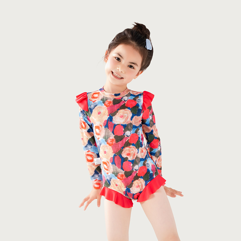 수영복 2025 신식 아동복 여류용 퍼프 슬리브 수영복 어린이 레이스 여행 아기의 원피스 수영복스토어 가기