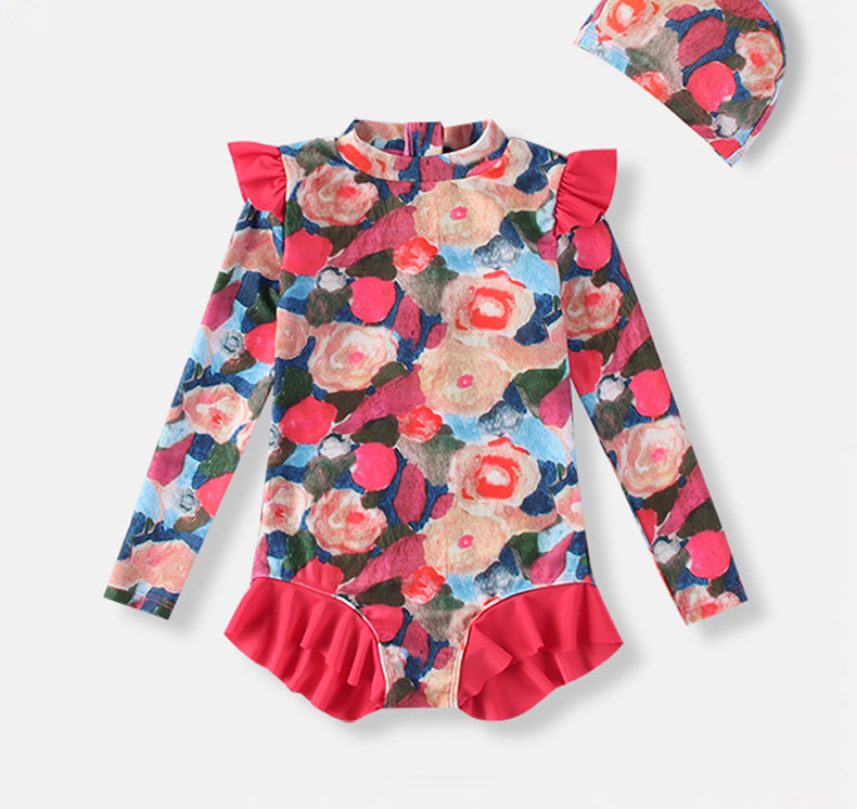 수영복 2025 신식 아동복 여류용 퍼프 슬리브 수영복 어린이 레이스 여행 아기의 원피스 수영복
