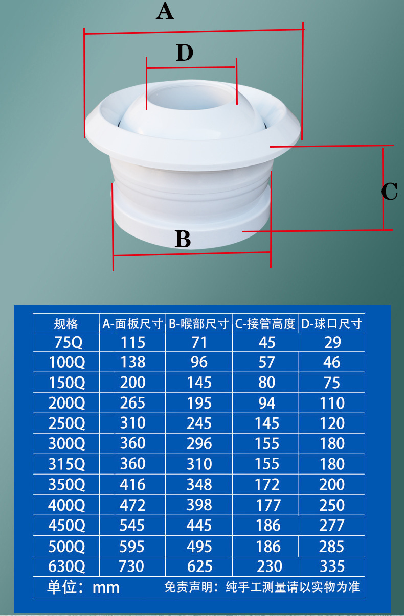 ABS 구형 공기 출구 공항 역 노즐 제트 에어컨 공기 출구 조절 구형 제트 포트 원격스토어 가기