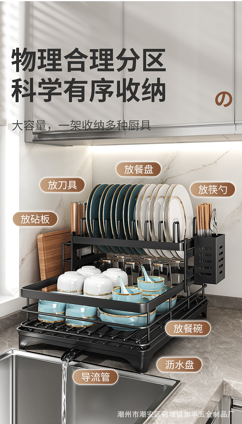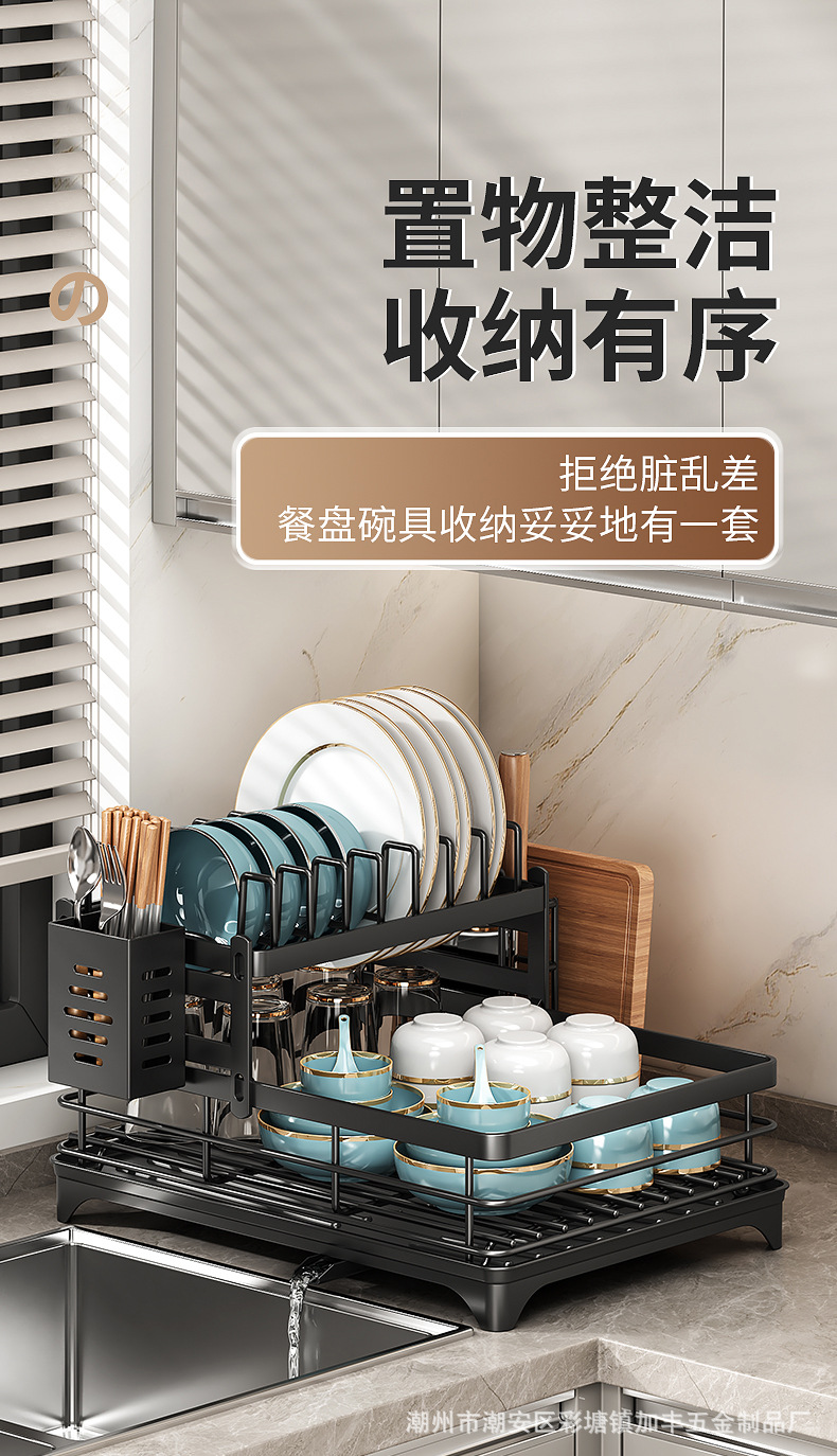 국경 간 접시 랙 드레인 랙 보관 작은 찬장 주방 보관 랙 다층 저장 용품 접시 선반