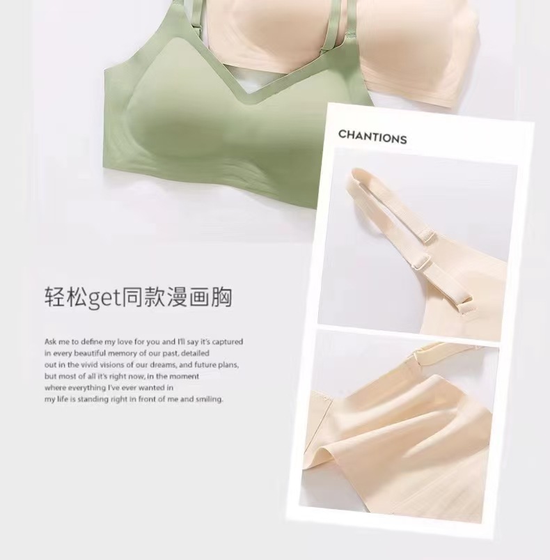 확장 된 만화 가슴 작은 가슴 큰 편안한 통기성 추적없는 속옷 여성의 두꺼운 코스터 비 림리스 모임 브라