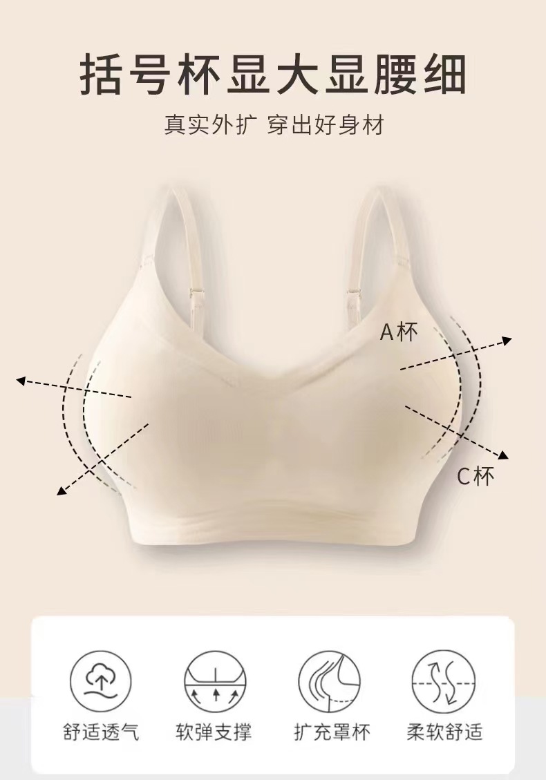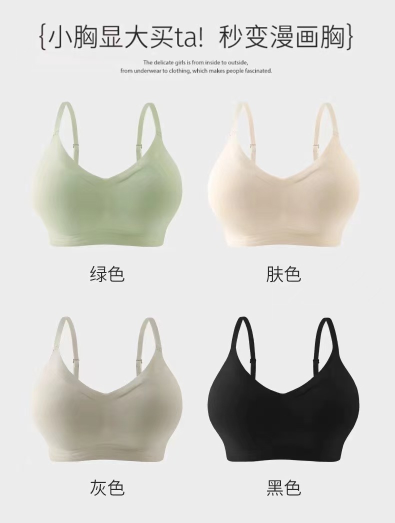 확장 된 만화 가슴 작은 가슴 큰 편안한 통기성 추적없는 속옷 여성의 두꺼운 코스터 비 림리스 모임 브라스토어 가기
