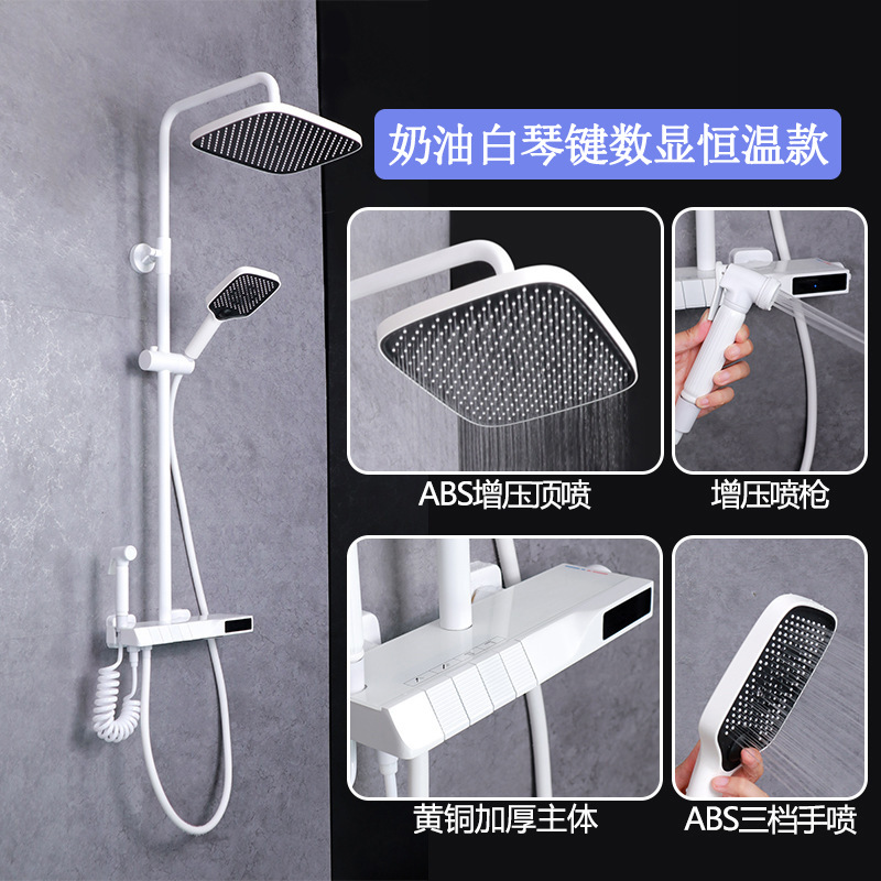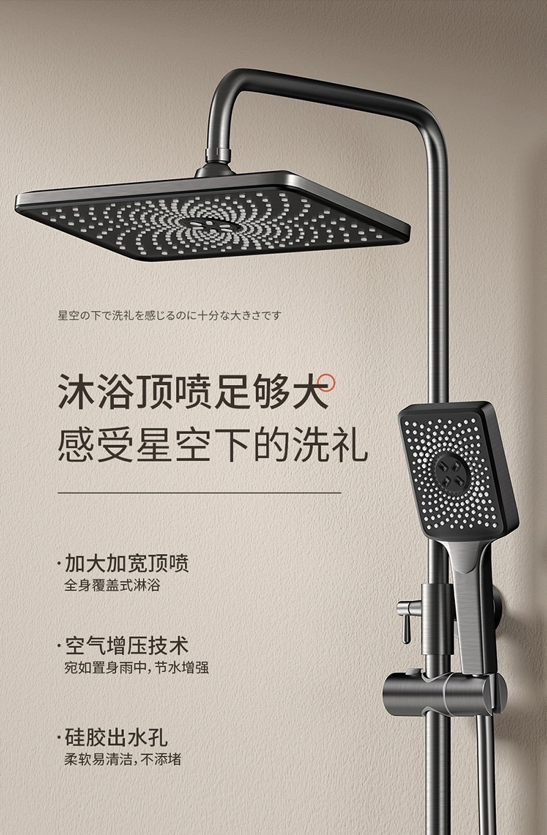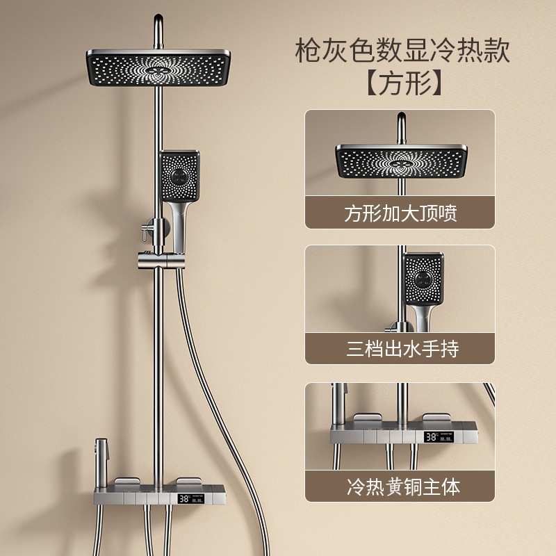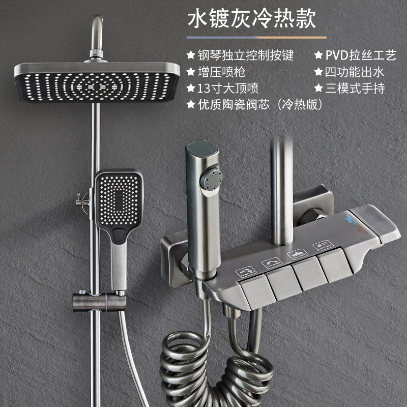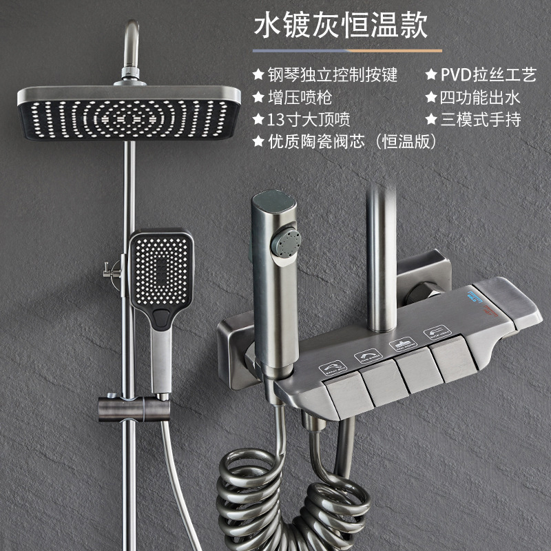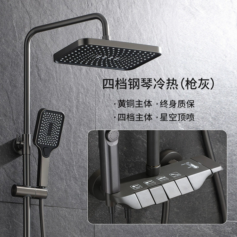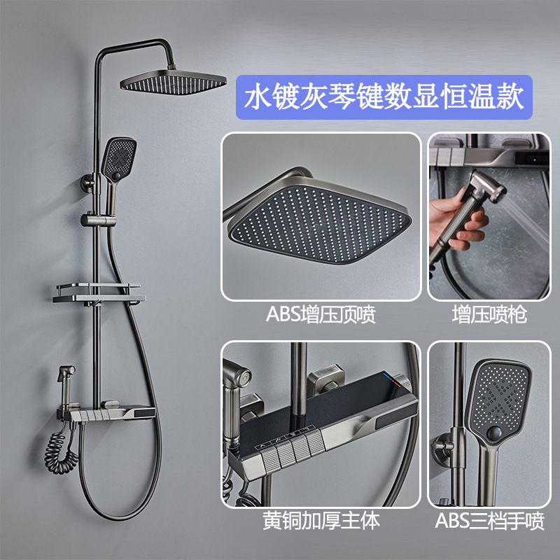 수도금 회색 피아노 키 샤워 세트 황동 가정용 욕실 리프팅 및 가압 온도 조절 샤워기 풀세트스토어 가기