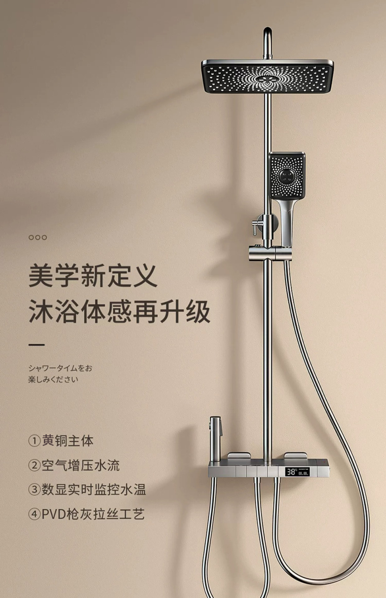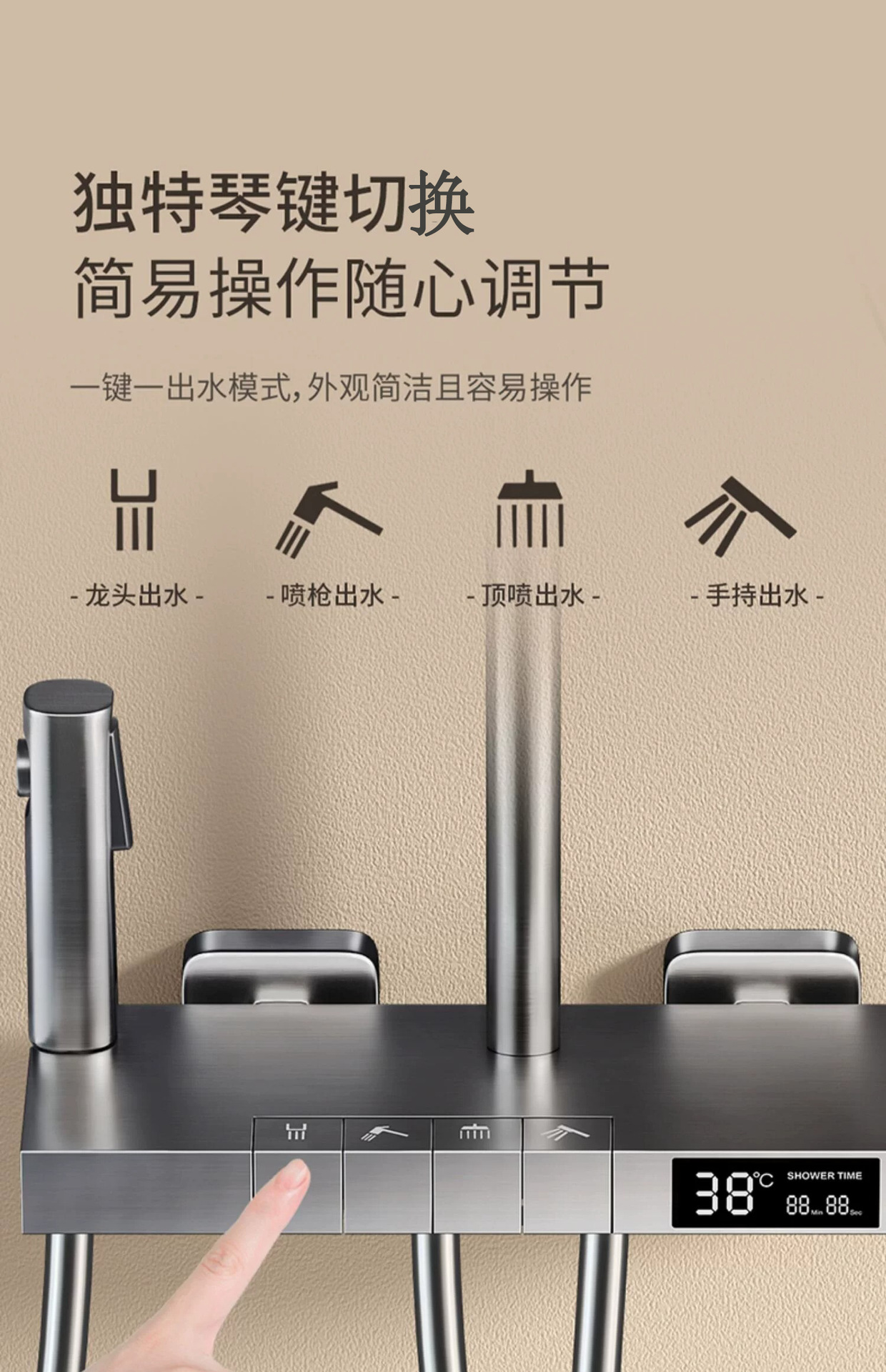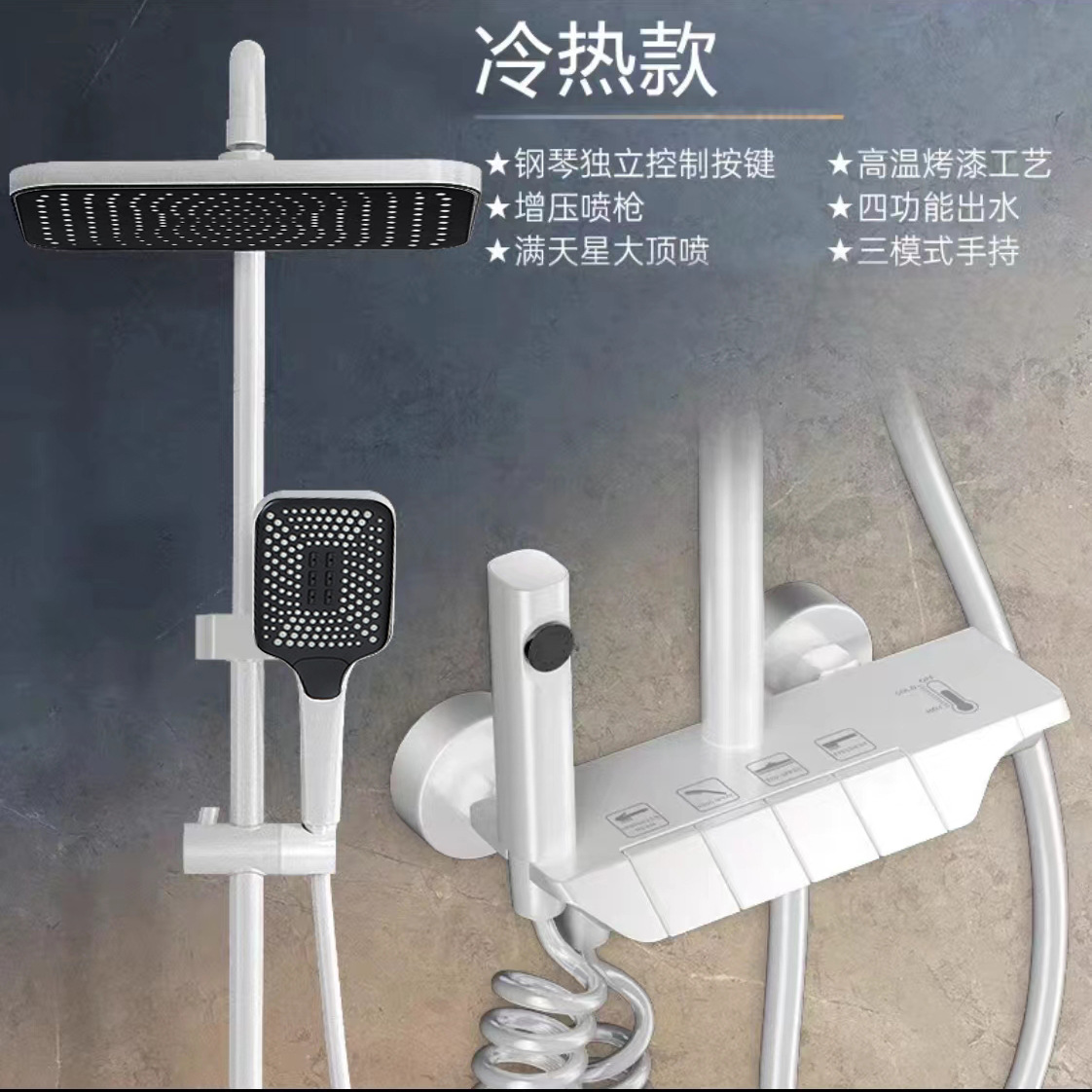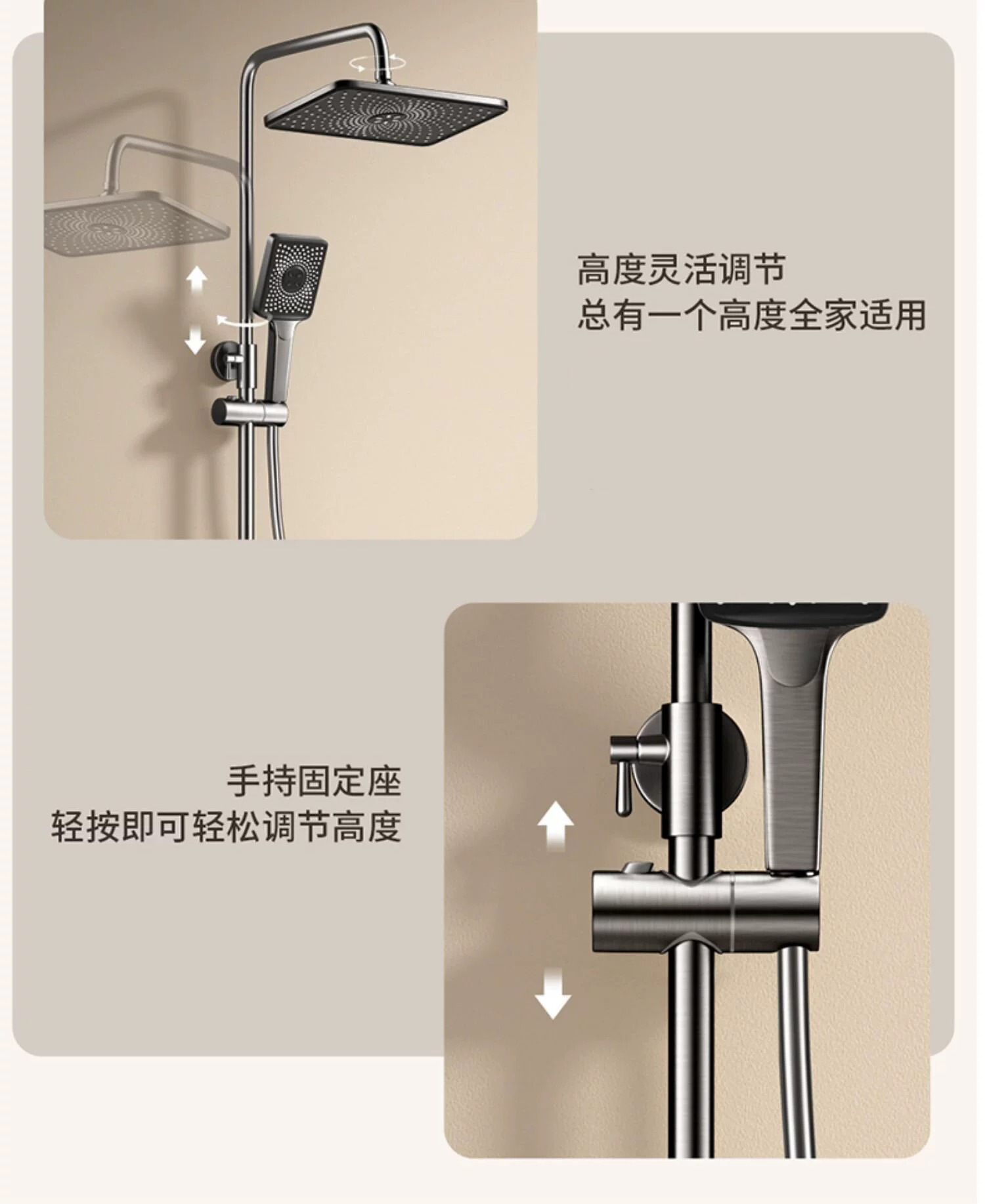 수도금 회색 피아노 키 샤워 세트 황동 가정용 욕실 리프팅 및 가압 온도 조절 샤워기 풀세트스토어 가기