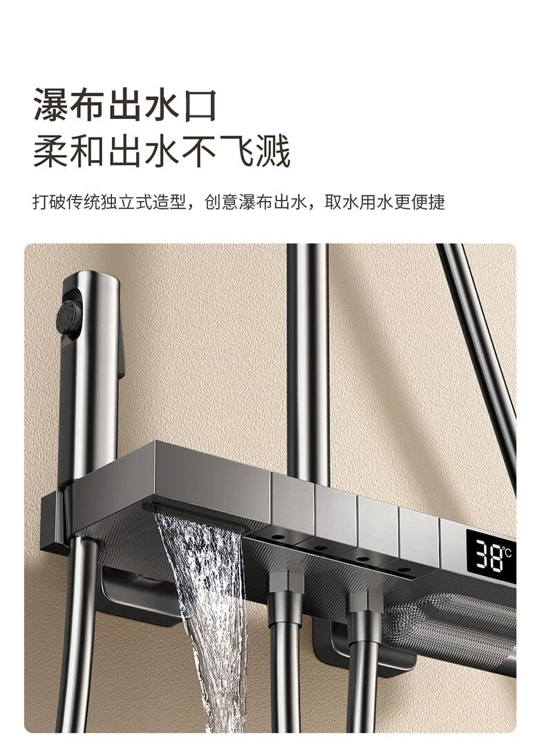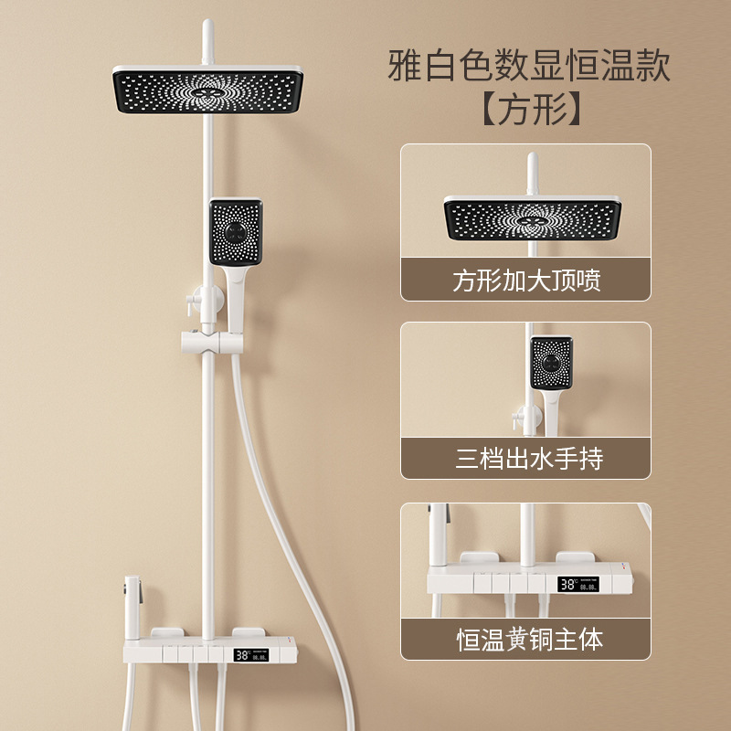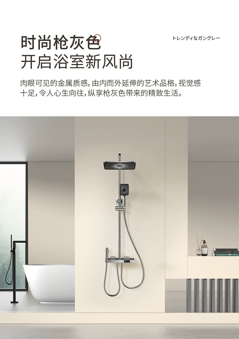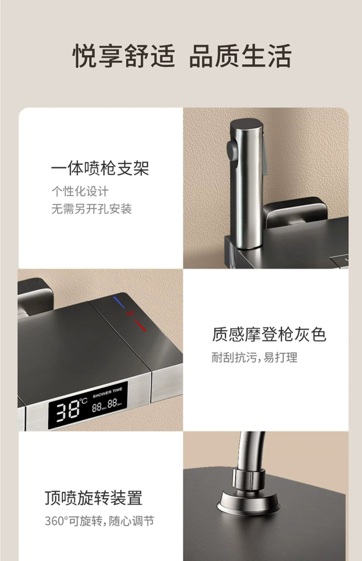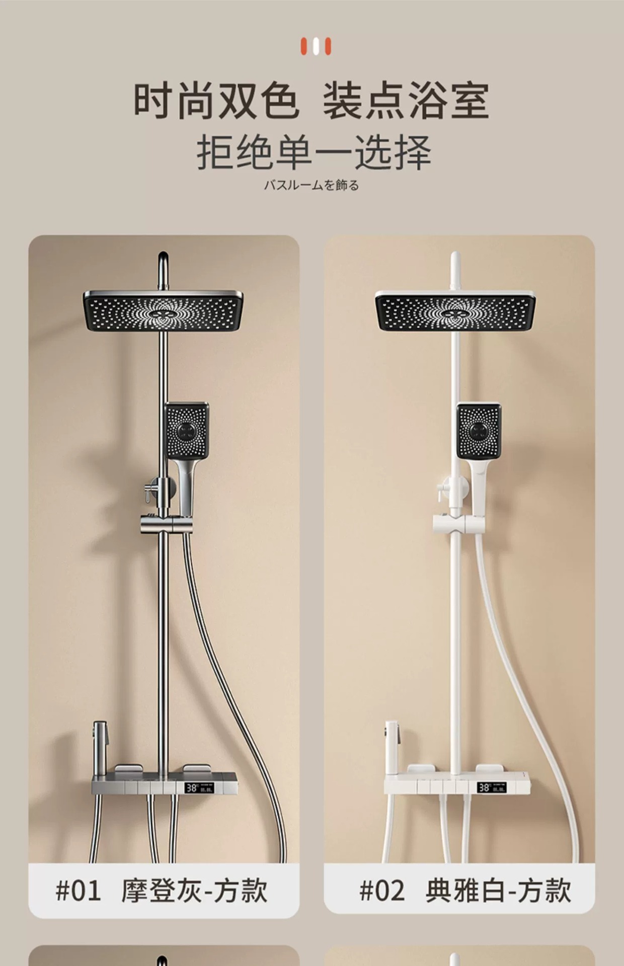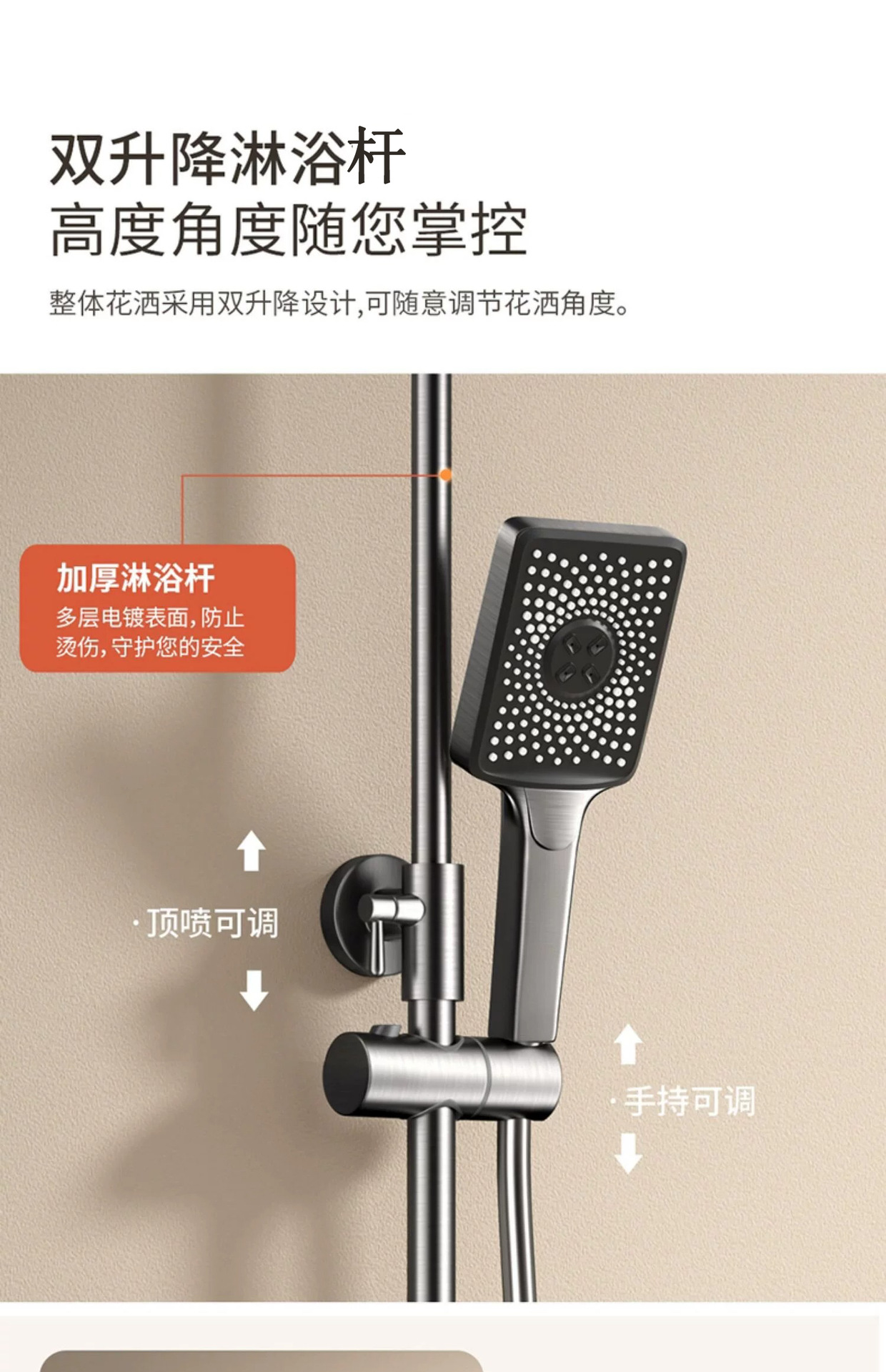 수도금 회색 피아노 키 샤워 세트 황동 가정용 욕실 리프팅 및 가압 온도 조절 샤워기 풀세트스토어 가기