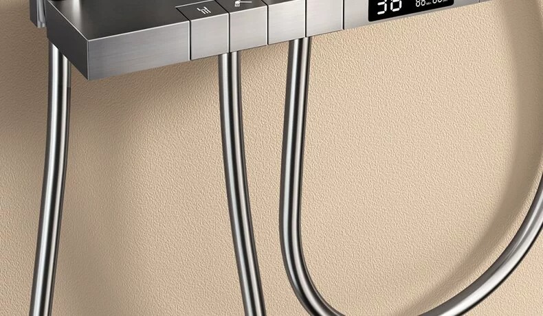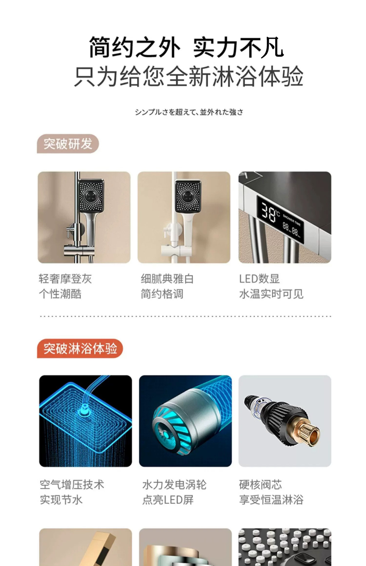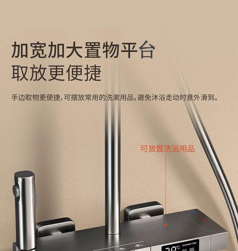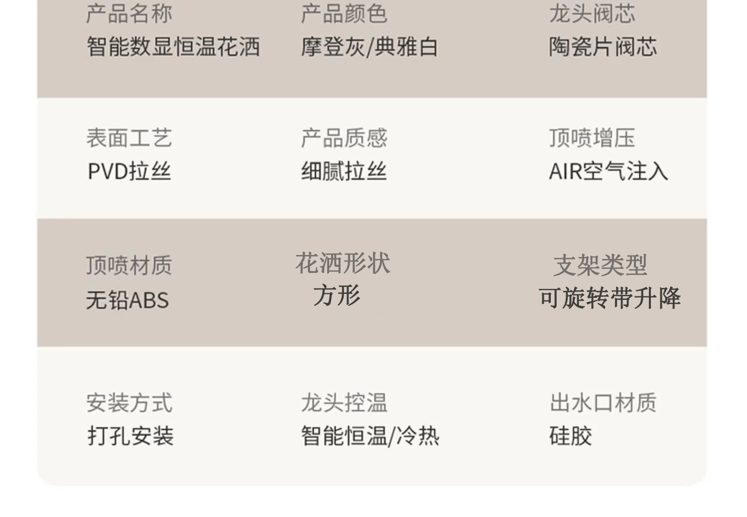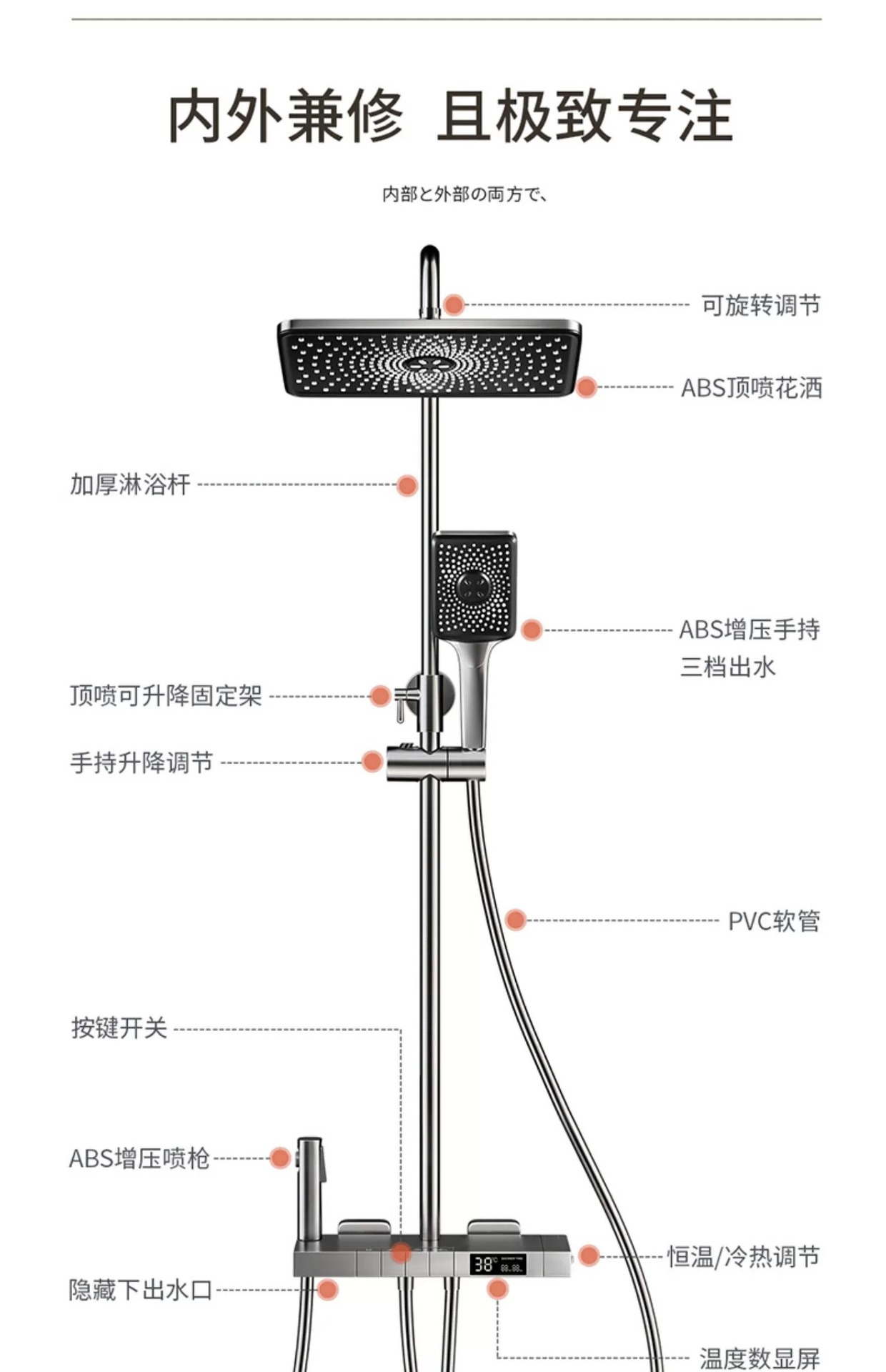 수도금 회색 피아노 키 샤워 세트 황동 가정용 욕실 리프팅 및 가압 온도 조절 샤워기 풀세트스토어 가기