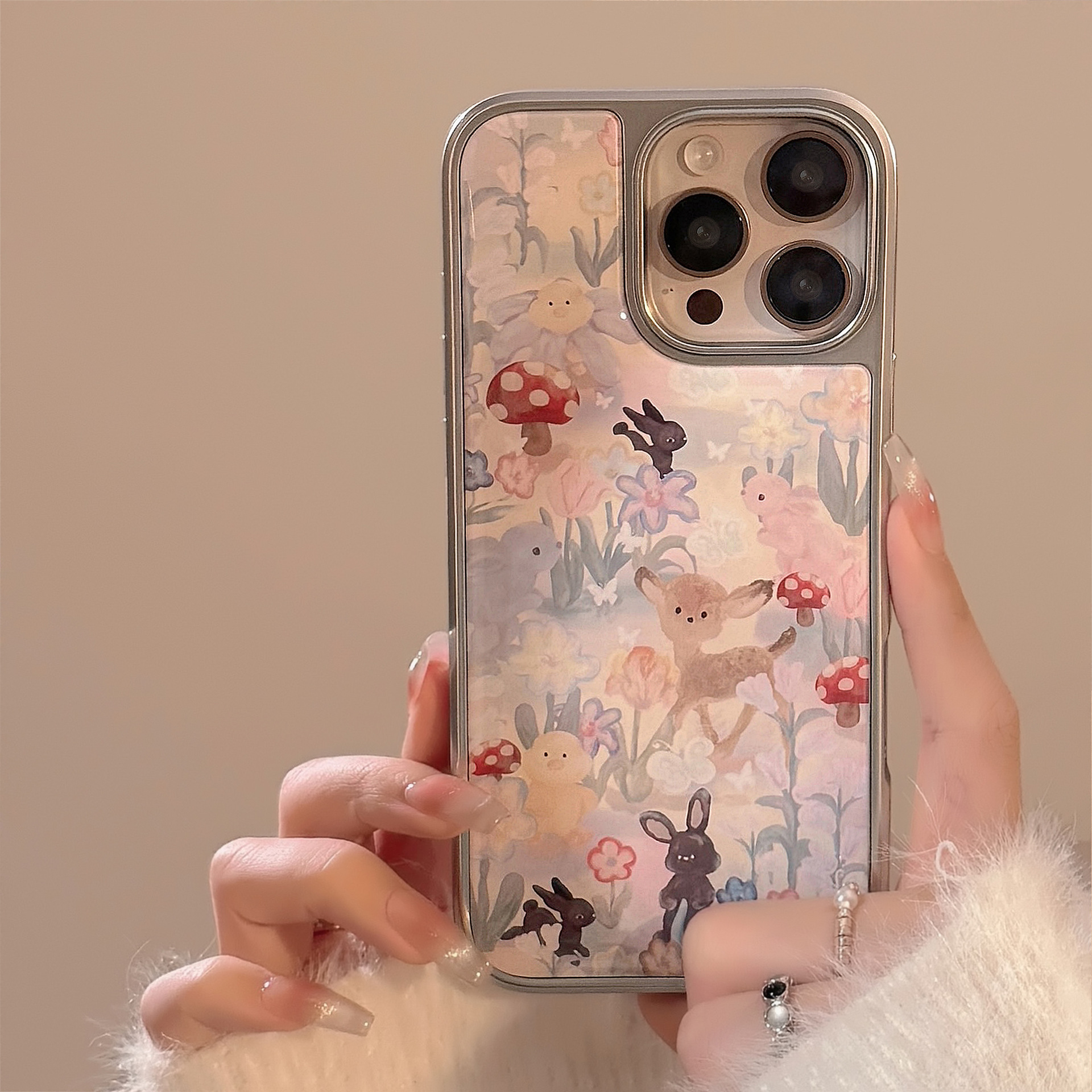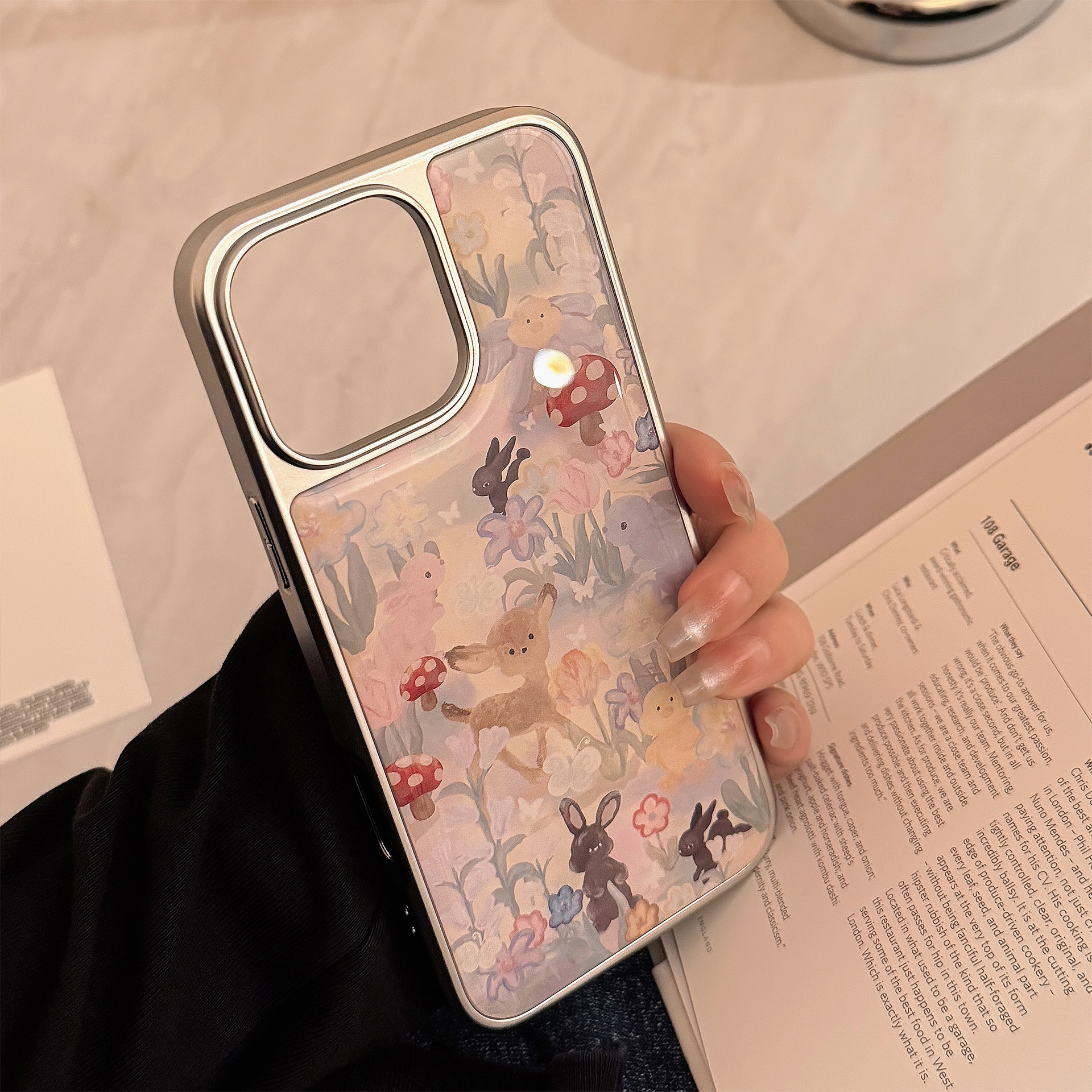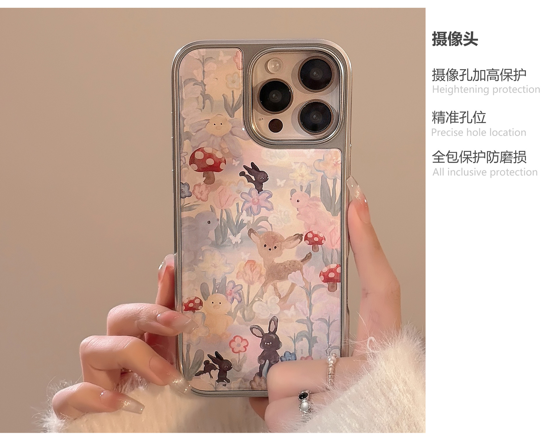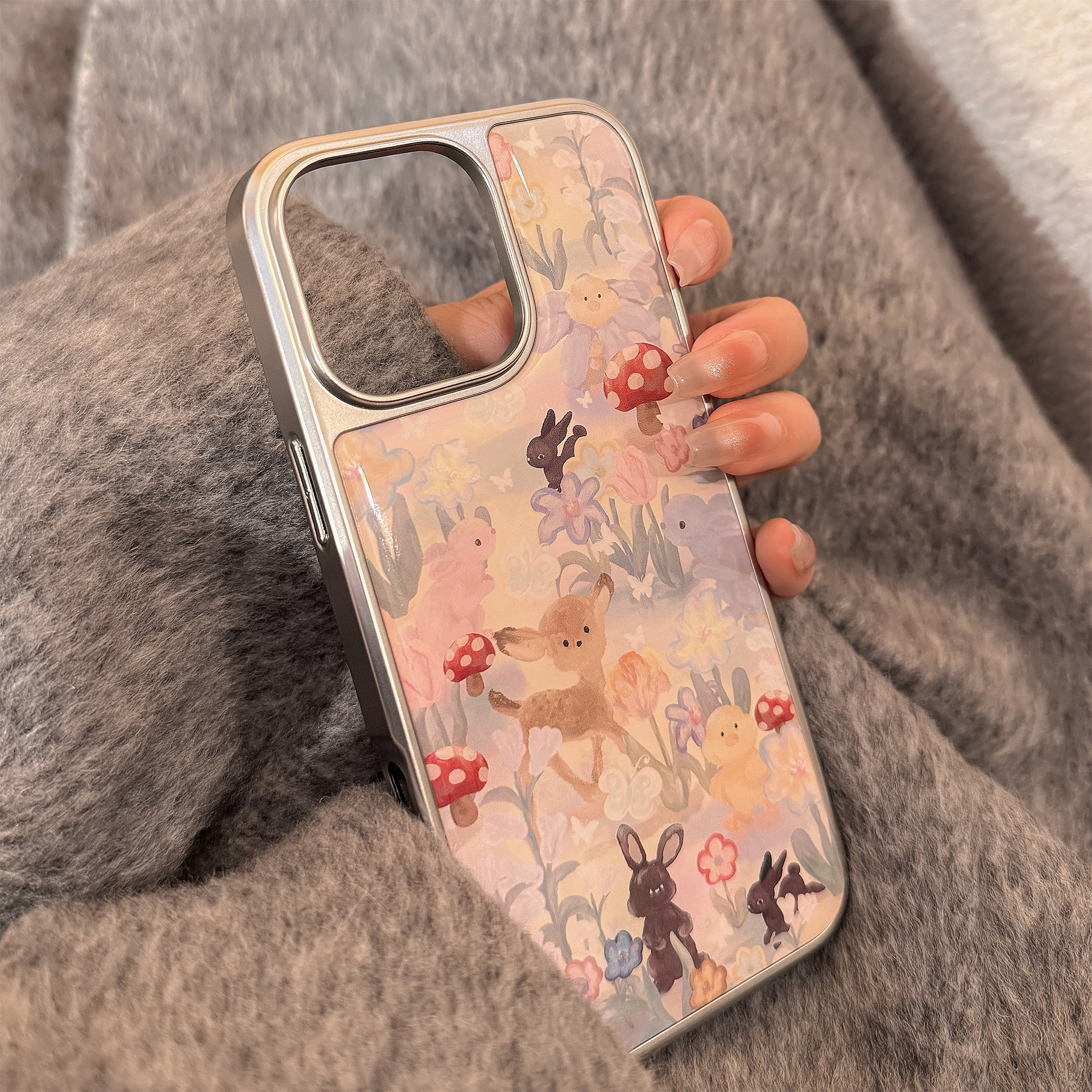 귀여운 숲 속 사슴 디자인의 아이폰 16, 17 프로맥스, 아이폰 14, 13, 15, 화웨이용 레진 케이스