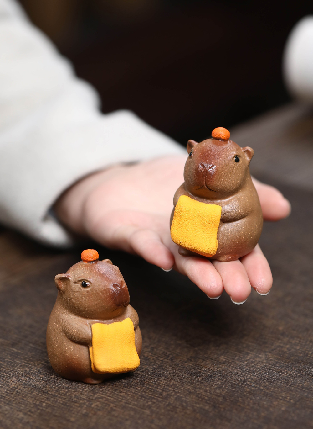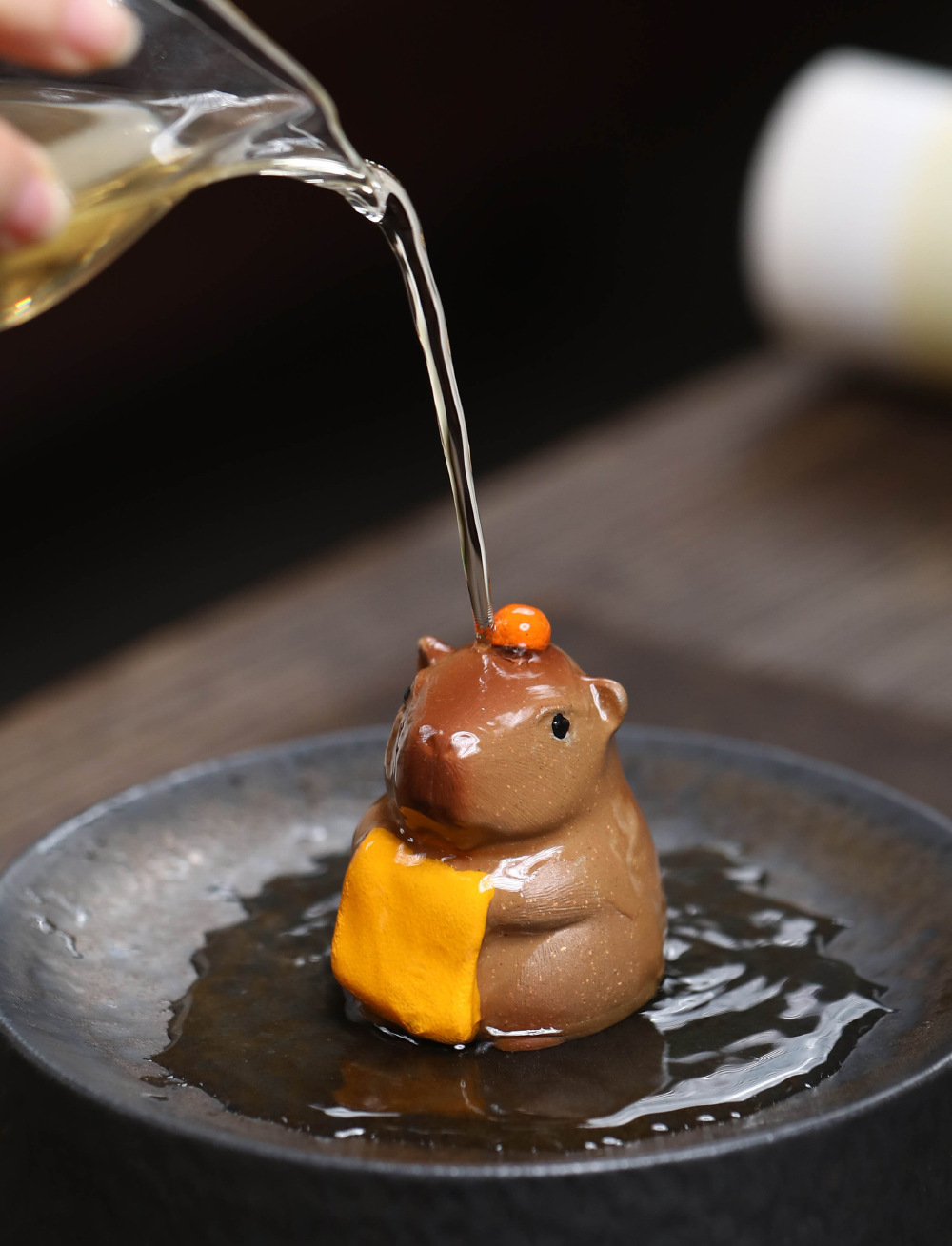 Yixing 보라색 모래 차 애완 동물 카피 바라 귀여운 귀여운 목욕 카피 발라 작은 장식 바탕 화면 장식