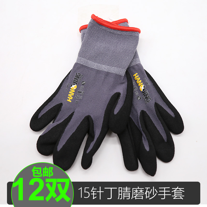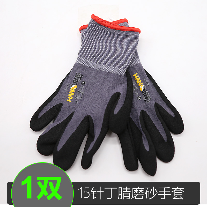 터치 스크린 네비게이션 15 핀 나일론 스판덱스 니트릴 프로스트 노동 보호 장갑 탄성 미끄럼 통기성 기계적 유지 보수 및 취급스토어 가기