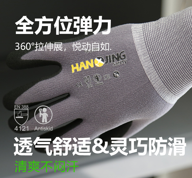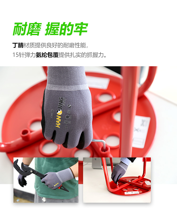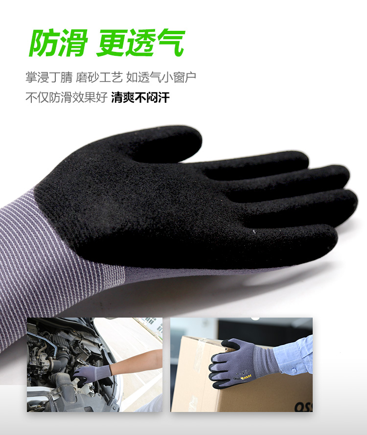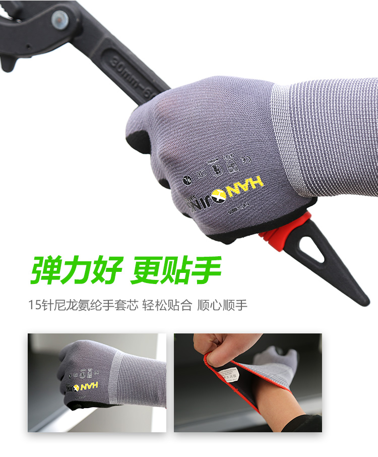 터치 스크린 네비게이션 15 핀 나일론 스판덱스 니트릴 프로스트 노동 보호 장갑 탄성 미끄럼 통기성 기계적 유지 보수 및 취급