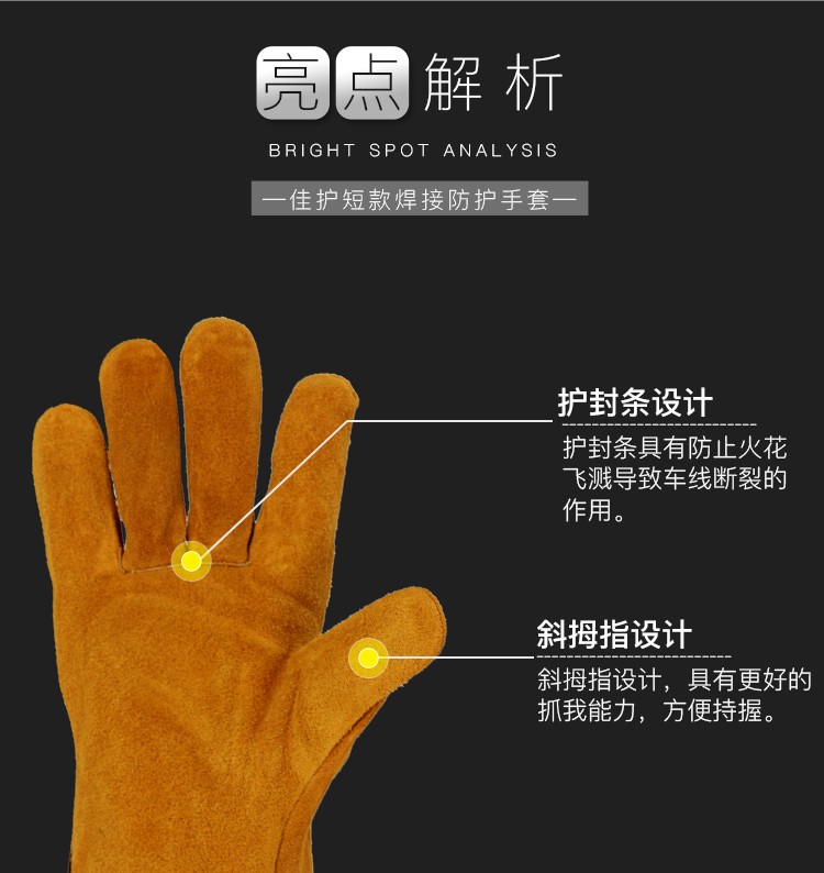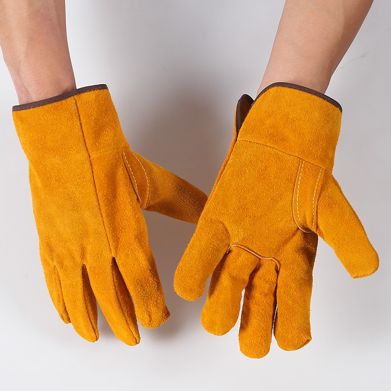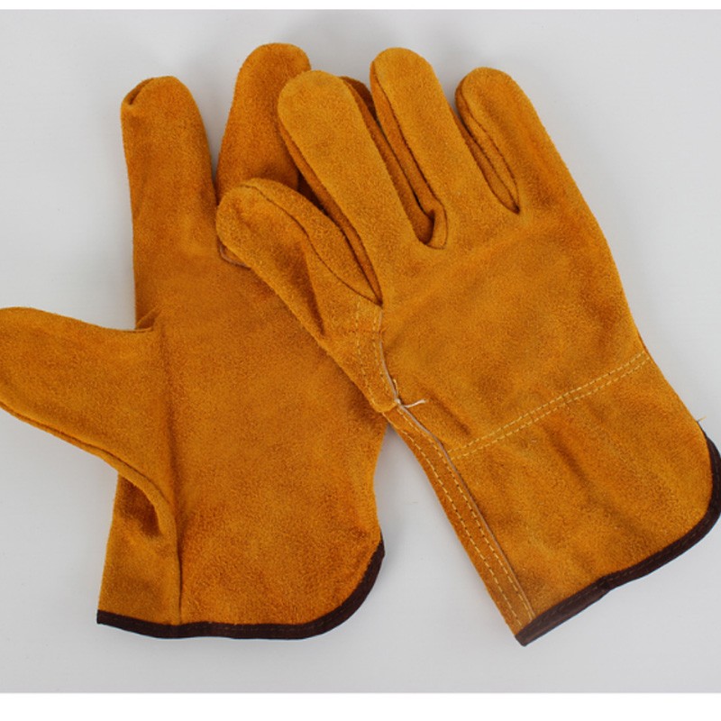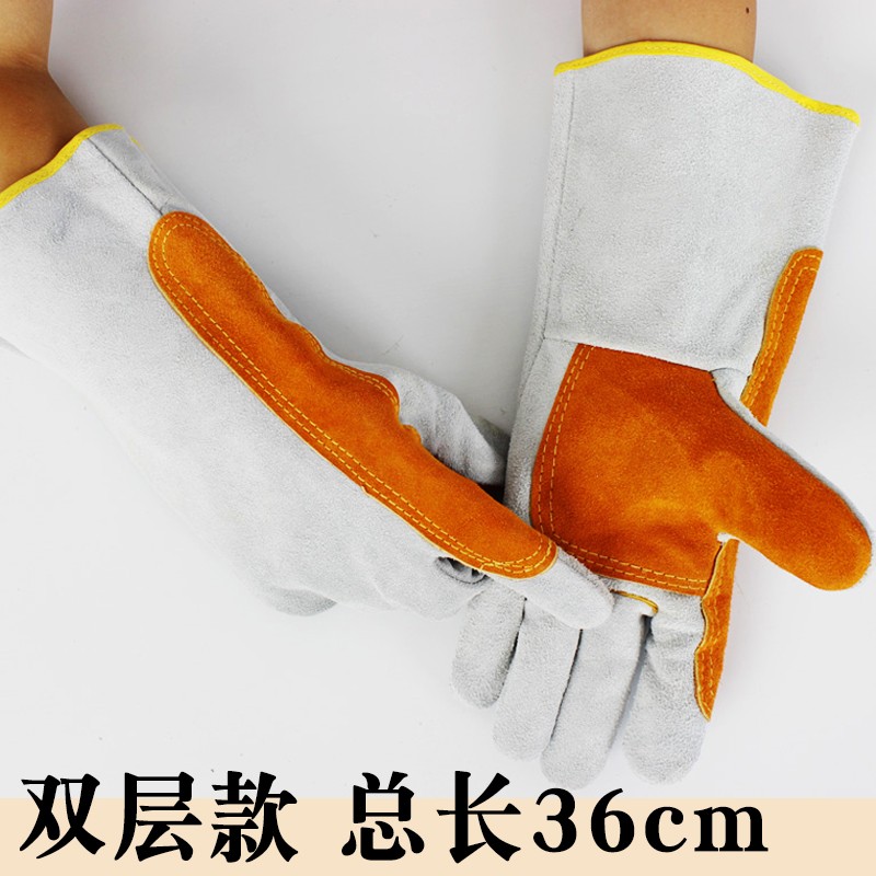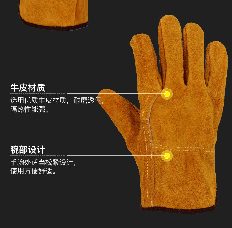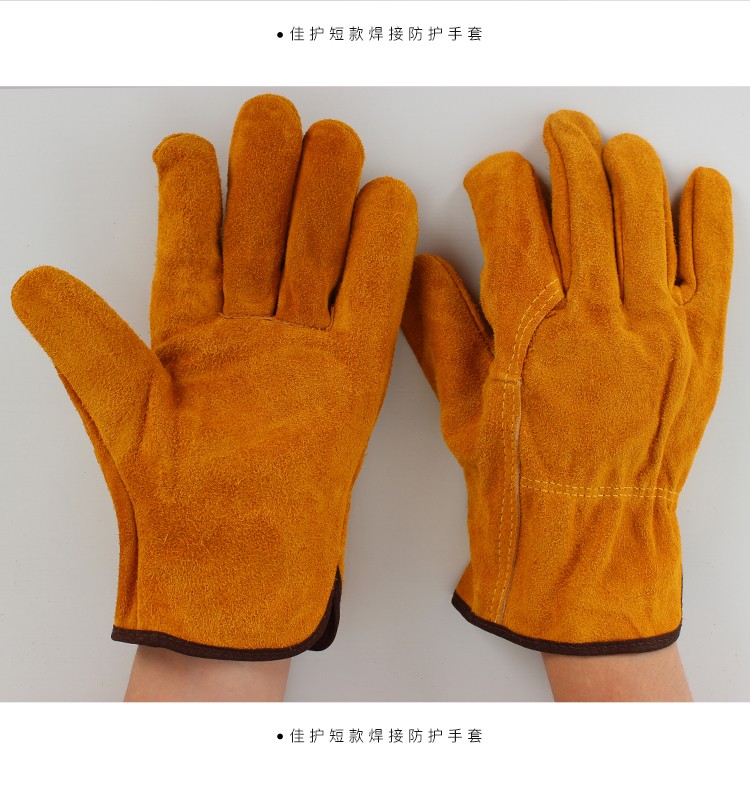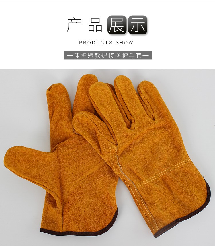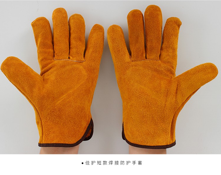 짧은 소 가죽 용접 장갑 용접기 용접 찌르기 방지 핸들링 내구성 따뜻한 안티 스케일 보호 긴 장갑 오프닝 라인