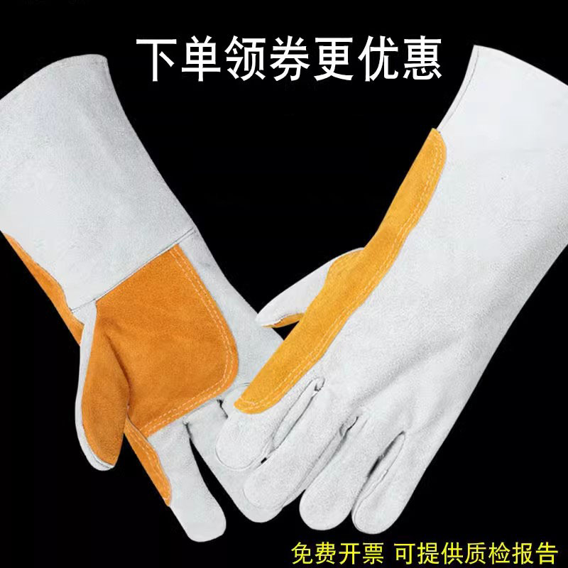 짧은 소 가죽 용접 장갑 용접기 용접 찌르기 방지 핸들링 내구성 따뜻한 안티 스케일 보호 긴 장갑 오프닝 라인스토어 가기