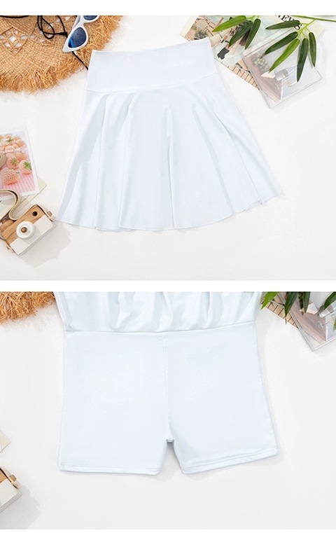 솔리드 컬러 싱글 수영 스커트 안티 워킹 스커트 여성의 높은 허리 벨리 커버 슬리밍 수영복 하단 비키니 바지 스커트