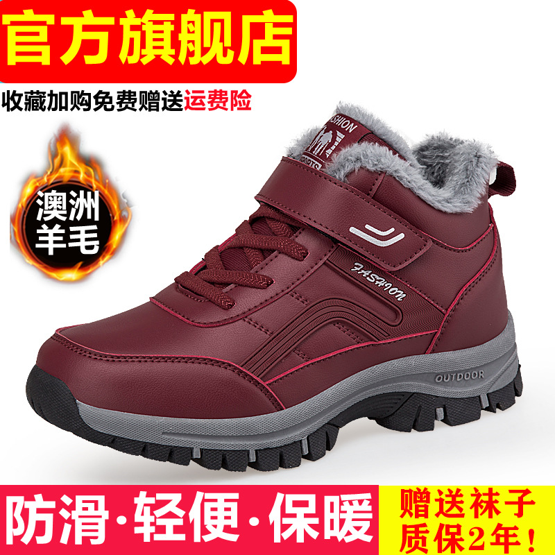 • 2219 마룬 여성용 겨울 고급 가죽 방수 울 신발 무료