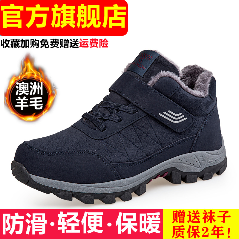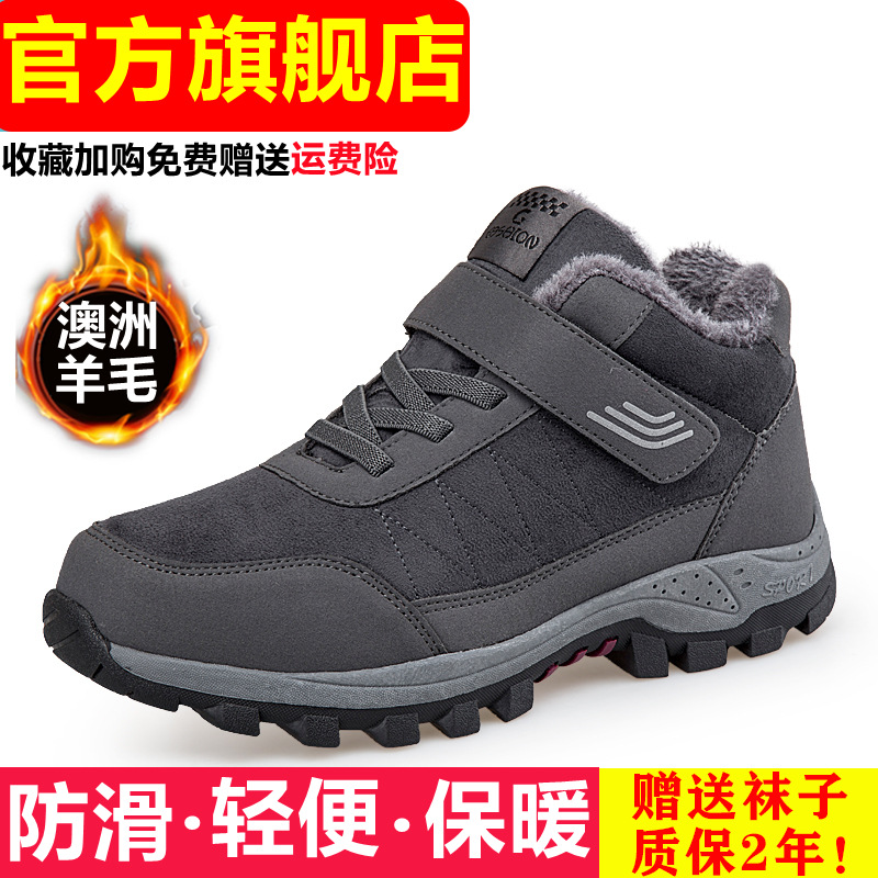노인 남성용 면화 신발 기모 두꺼운 따뜻한 중년 및 노인 운동화 미끄럼 방지 운동화 방수 아버지 신발스토어 가기