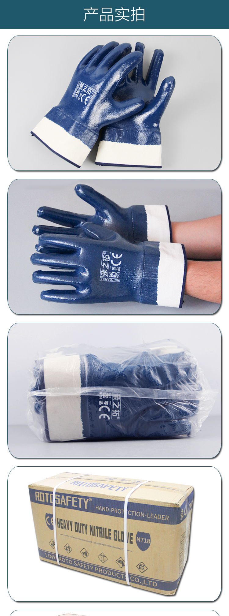 Rongzhituo N718 블루 대형 입 니트릴 장갑 안전 입 방수 오일 방지 캔버스 내마모성 기계적 전기 용접 자동 수리스토어 가기