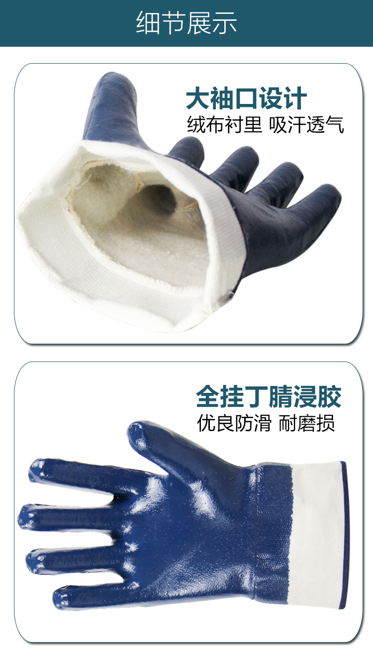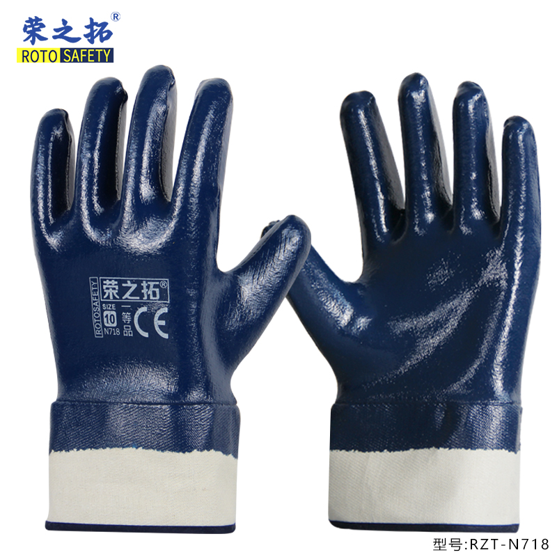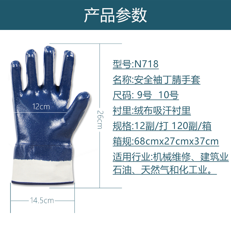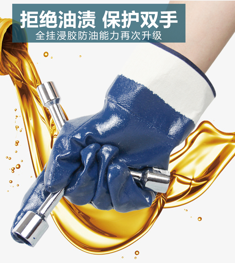 Rongzhituo N718 블루 대형 입 니트릴 장갑 안전 입 방수 오일 방지 캔버스 내마모성 기계적 전기 용접 자동 수리
