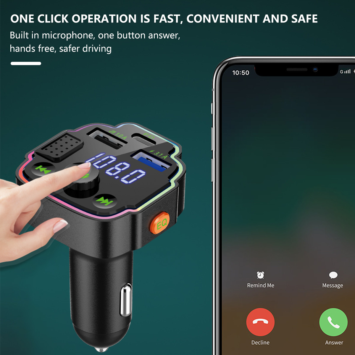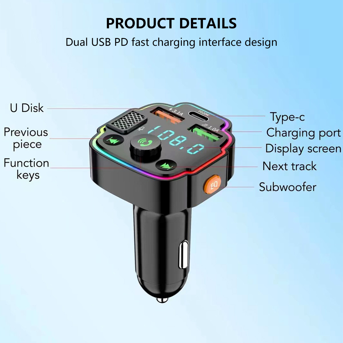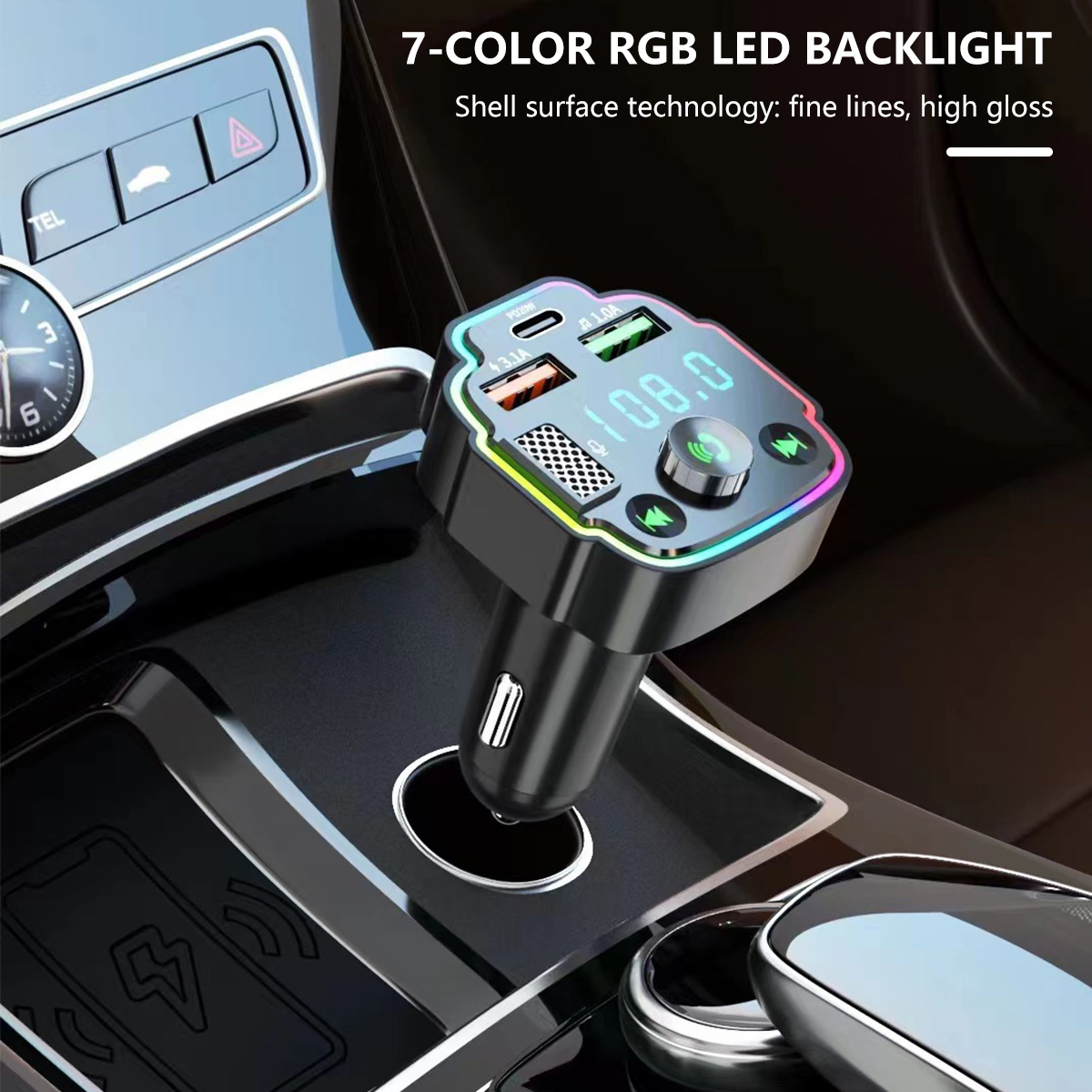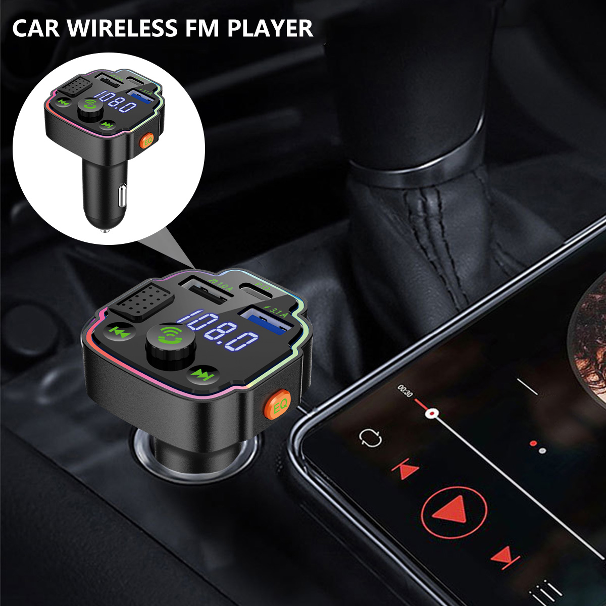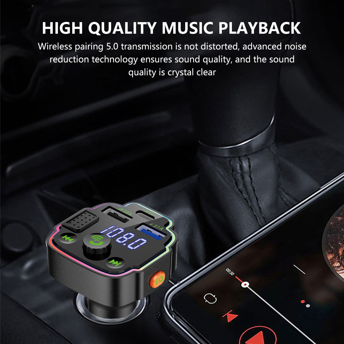 [Multifunción]El emparejamiento inalámbrico 5,0 de la transmisión no está distorsionado, puede reproducir música en el estéreo del coche a través del emparejamiento inalámbrico. Admite Pantalla de voltaje, retroiluminación LED RGB de 7 colores, transmisión FM, Bluetooth, carga USB, lectura de disco U, función EQ.
