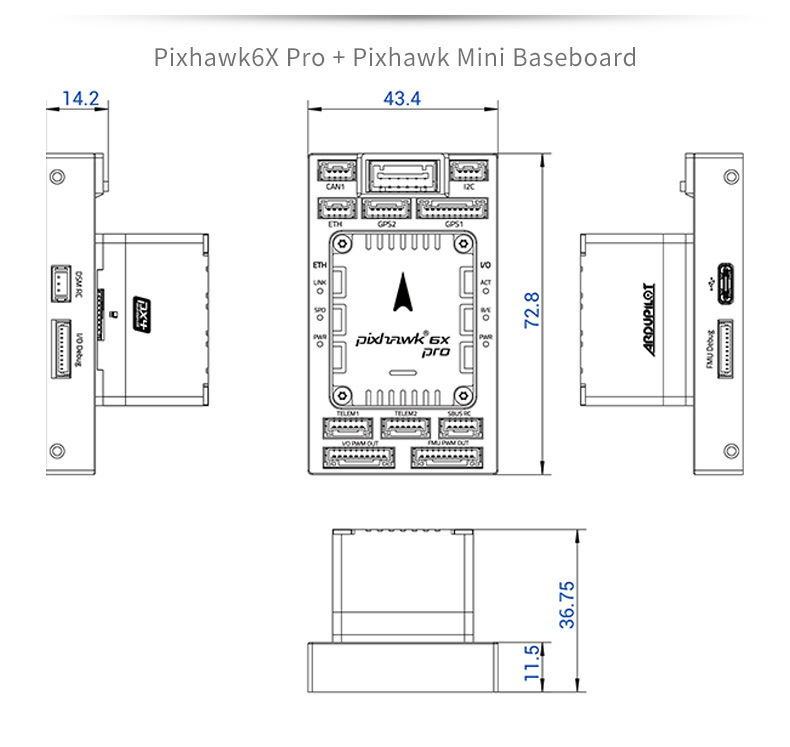 Holybro Pixhawk6X PRO MINI 오픈 소스 비행 제어 UAV 고정 날개 멀티 로터 수직 PIX4