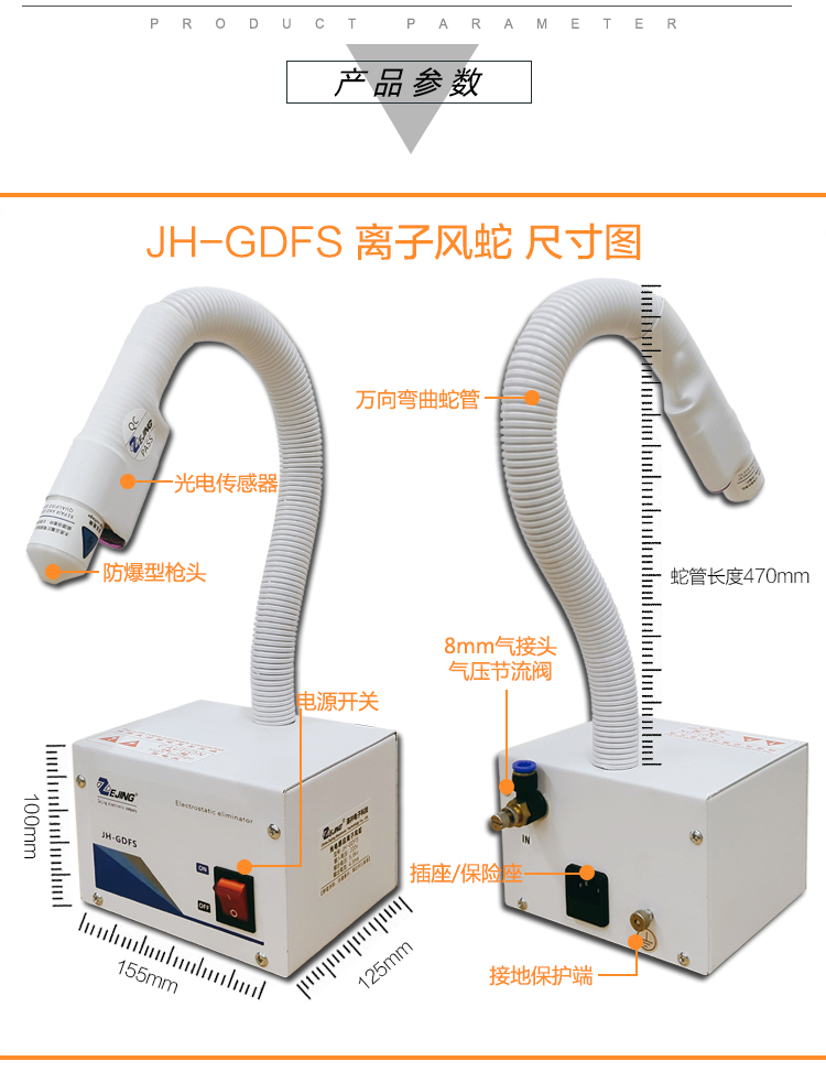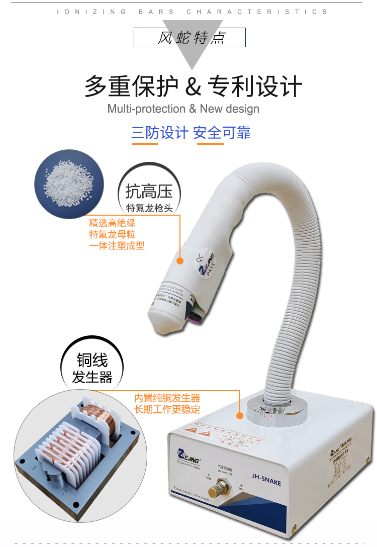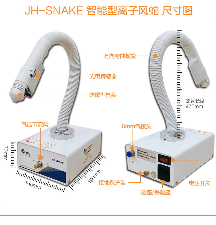 광전 유도 이온 바람 뱀 산업 정전기 제거기 신발 혀 라벨 마킹 기계 정전기 먼지 제거 자동 공기총
