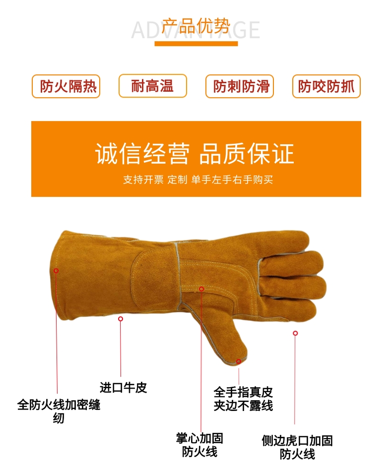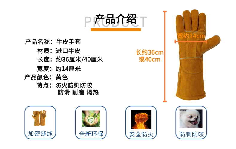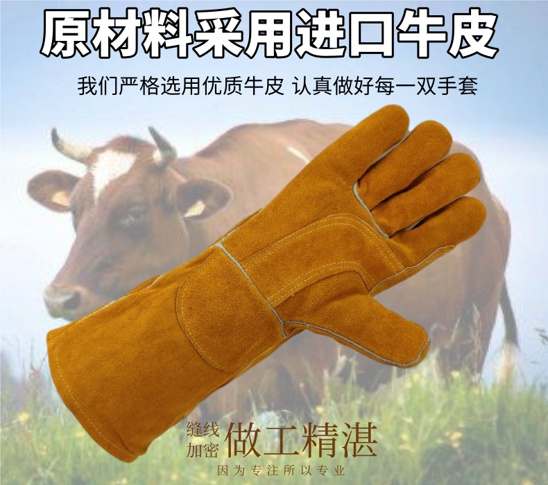 야외 안티 고양이와 개 물린 소 가죽 긴 전기 용접 작업 두꺼운 용접기 장갑 용접 단열 방지 고양이와 개 물린 범용스토어 가기