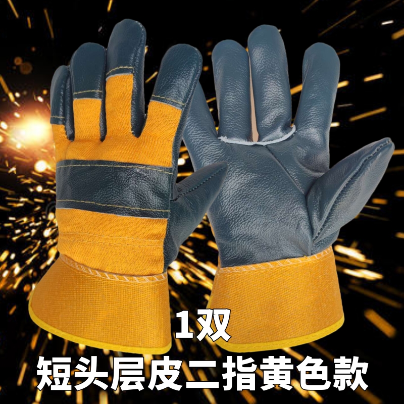 • 프리 사이즈 - 짧은 최상층 가죽 1쌍, 두 손가락 노란색 모델, 28cm, 임의 색상