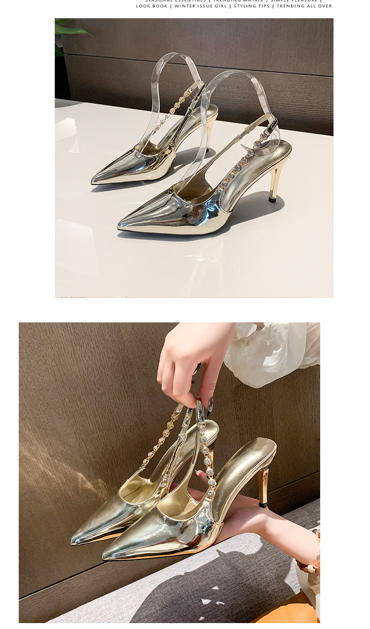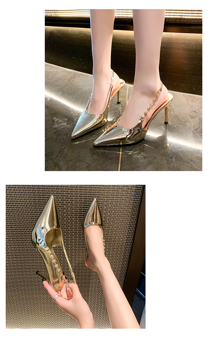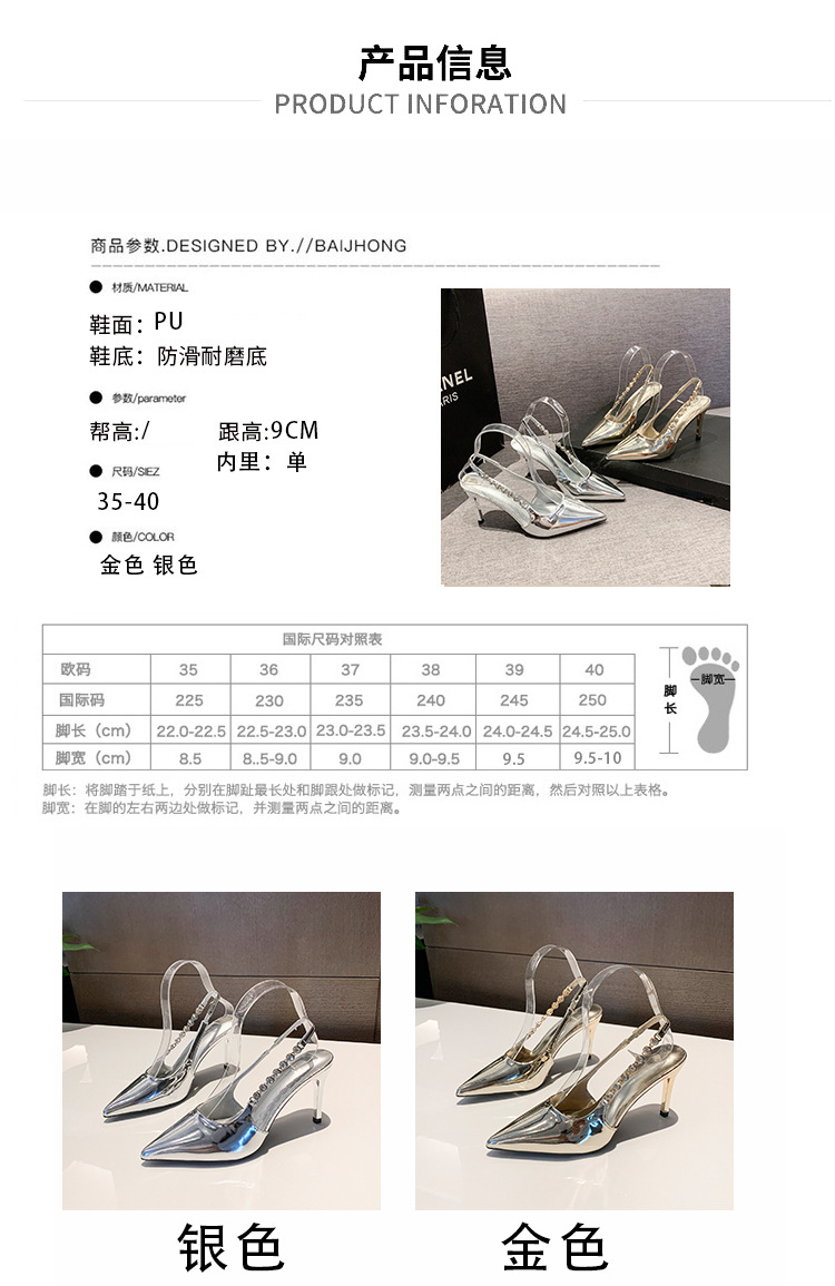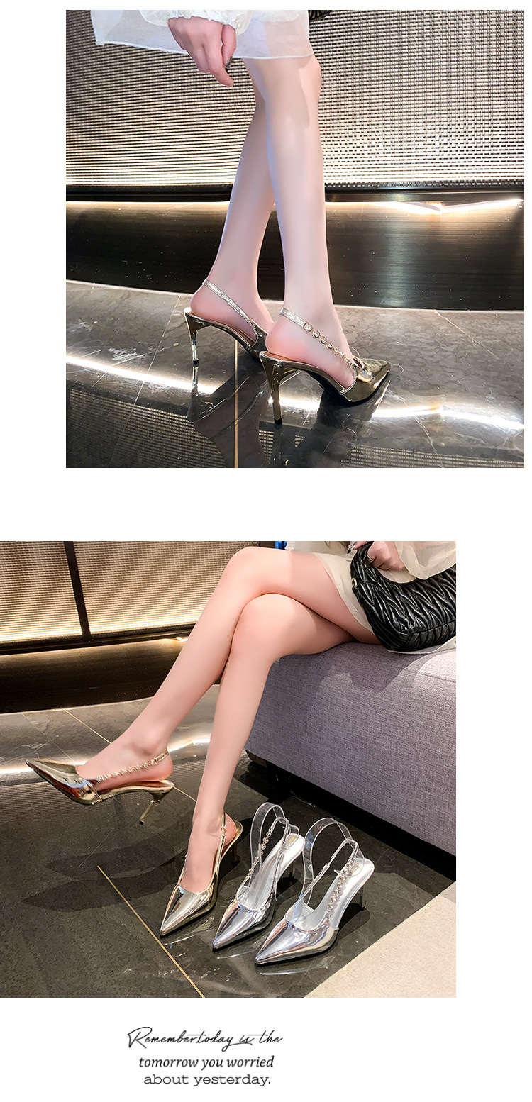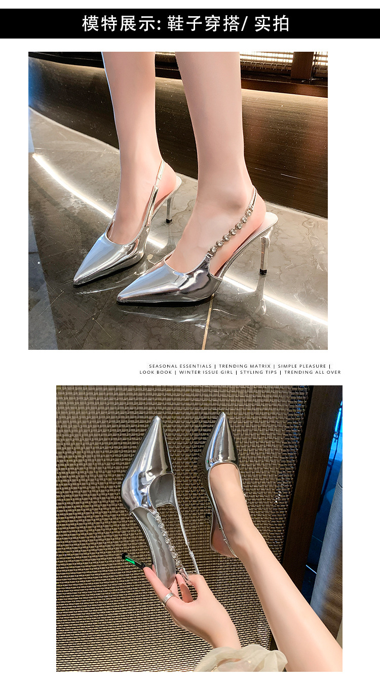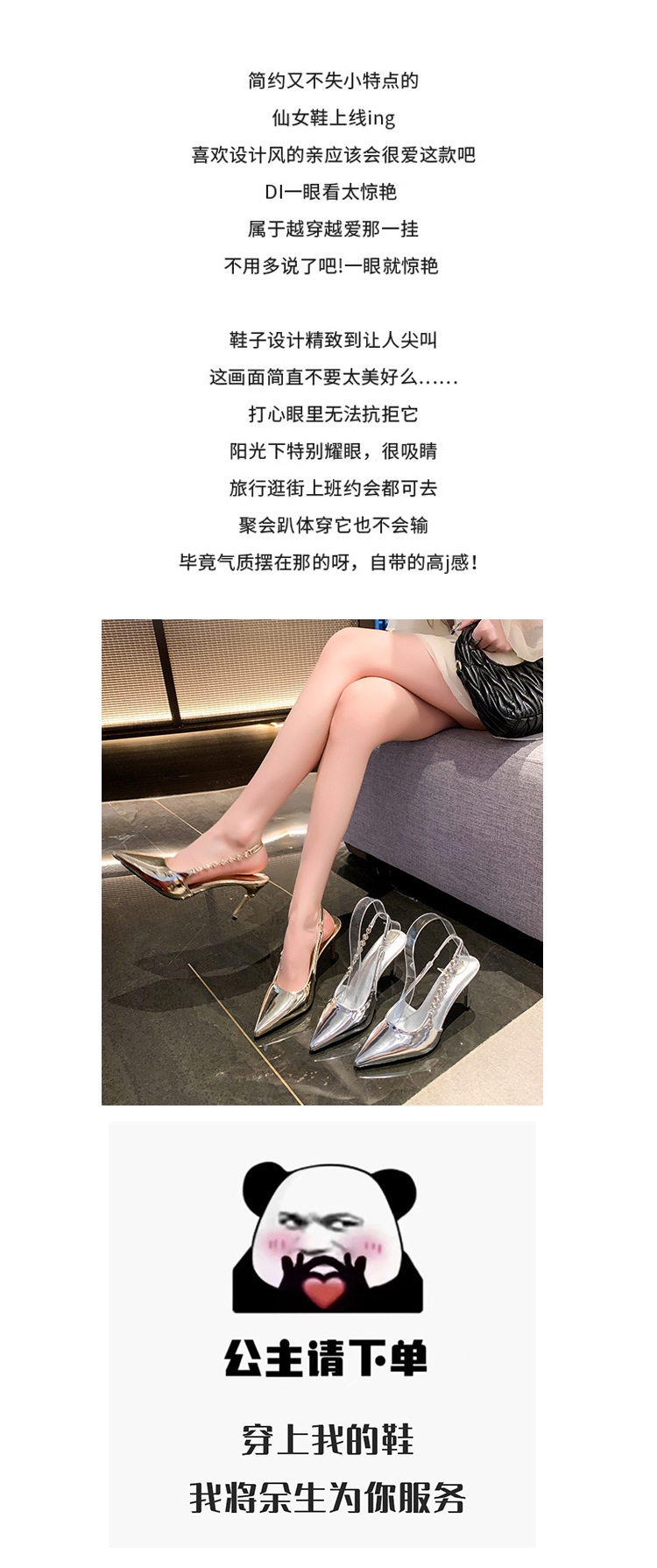 2024 새로운 도착 스커트 뾰족한 스틸레토 힐스 여성 기질 숙녀 실버 샌들 고급 여성 신발스토어 가기