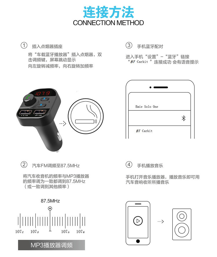 805E 뜨거운 판매 MP3 자동차 mp3 블루투스 플레이어 fm 송신기 805E 자동차 충전기 블루투스 핸즈프리 콜카스토어 가기