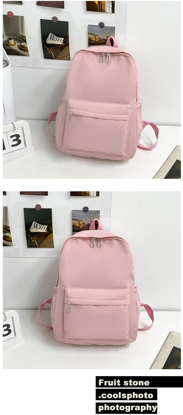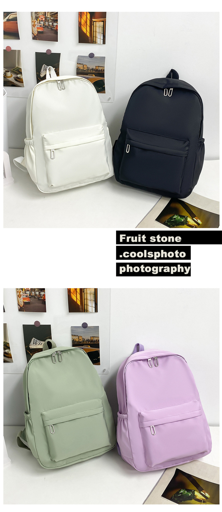 단색 학생 학교 가방 국경 간단한 캠퍼스 배낭 대용량 중학교 나일론 배낭 인쇄 가능한 로고스토어 가기