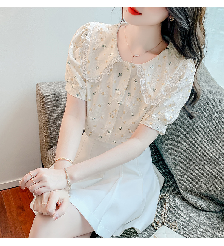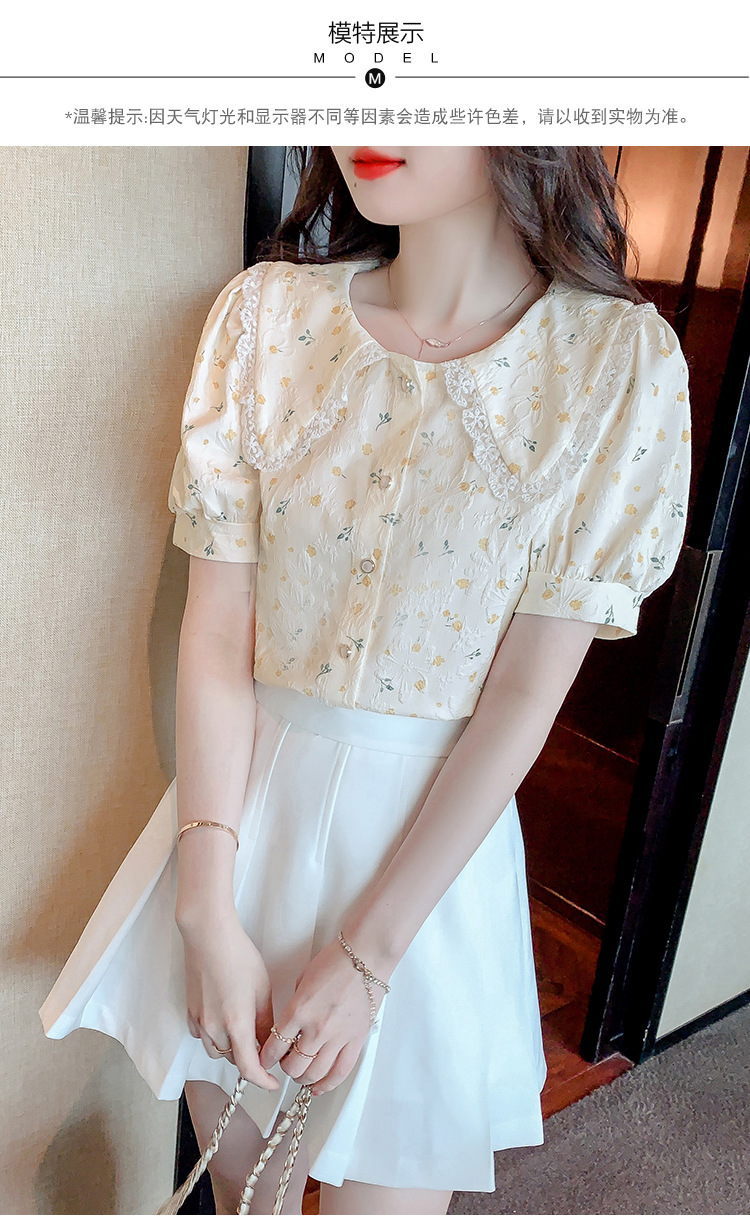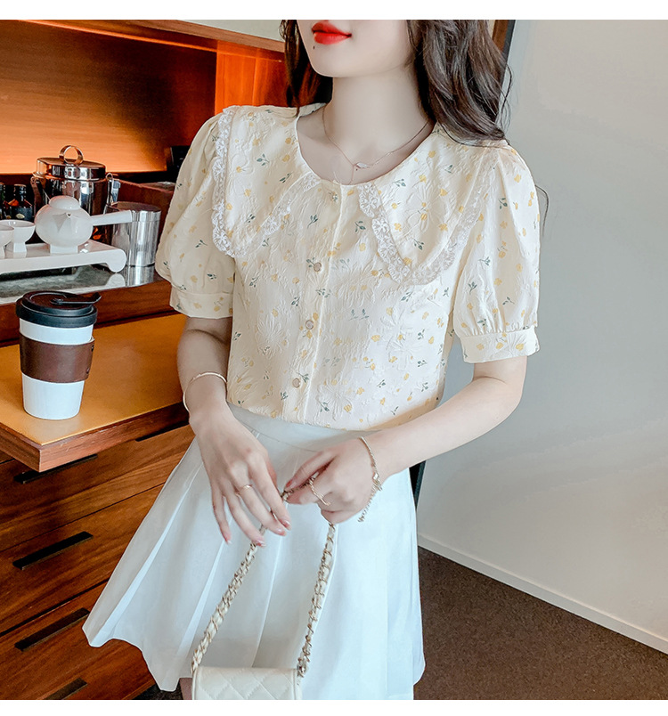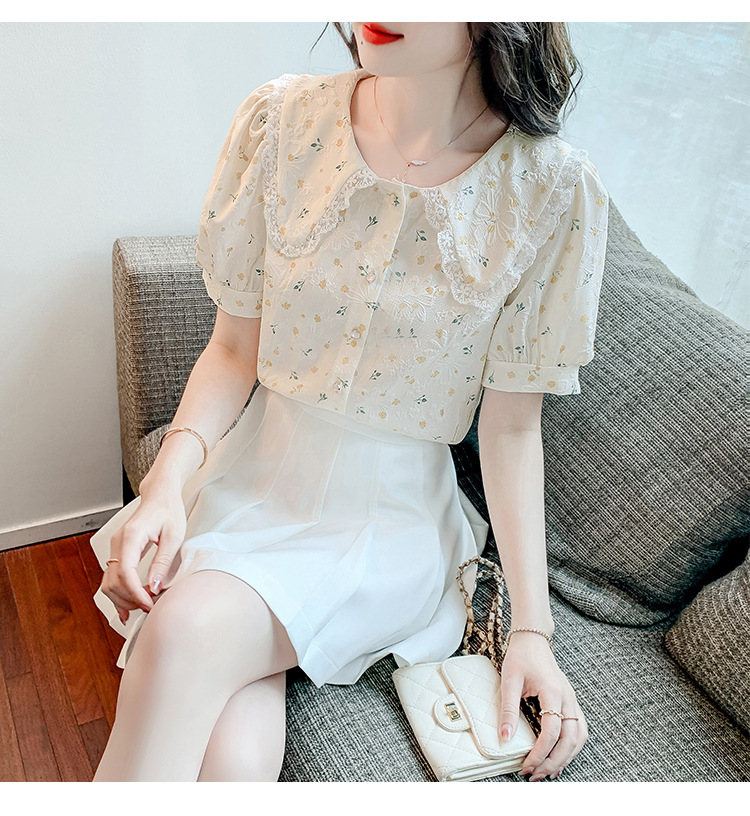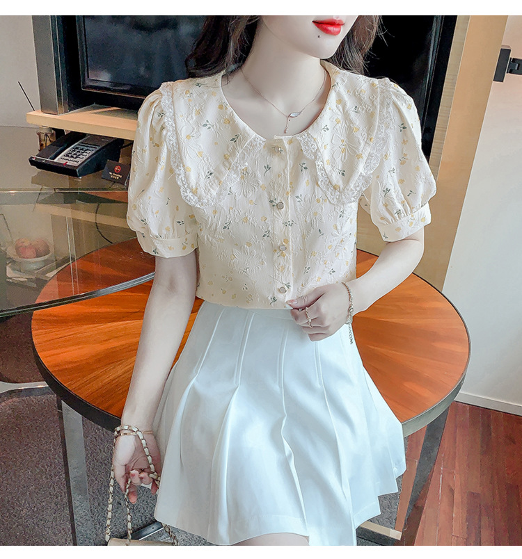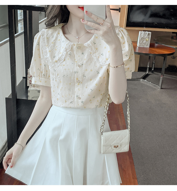 봄과 여름 꽃 거품 반팔 셔츠 디자인 센스 프랑스 달콤한 외국 스타일 인형 칼라 탑 여성용 셔츠스토어 가기