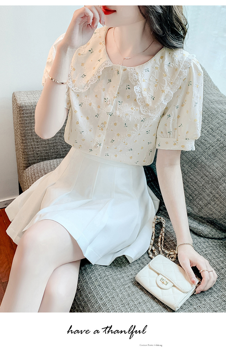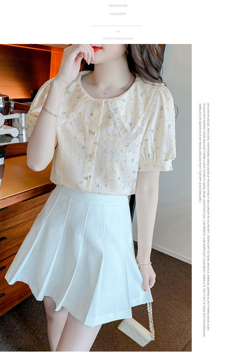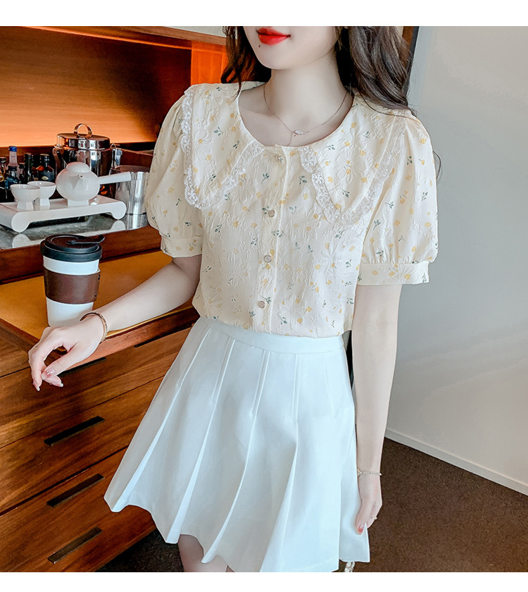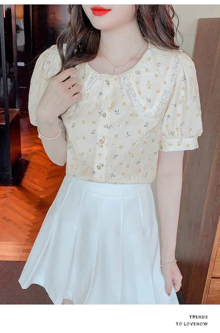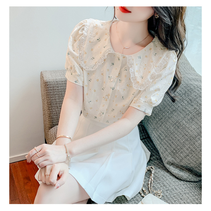 봄과 여름 꽃 거품 반팔 셔츠 디자인 센스 프랑스 달콤한 외국 스타일 인형 칼라 탑 여성용 셔츠스토어 가기